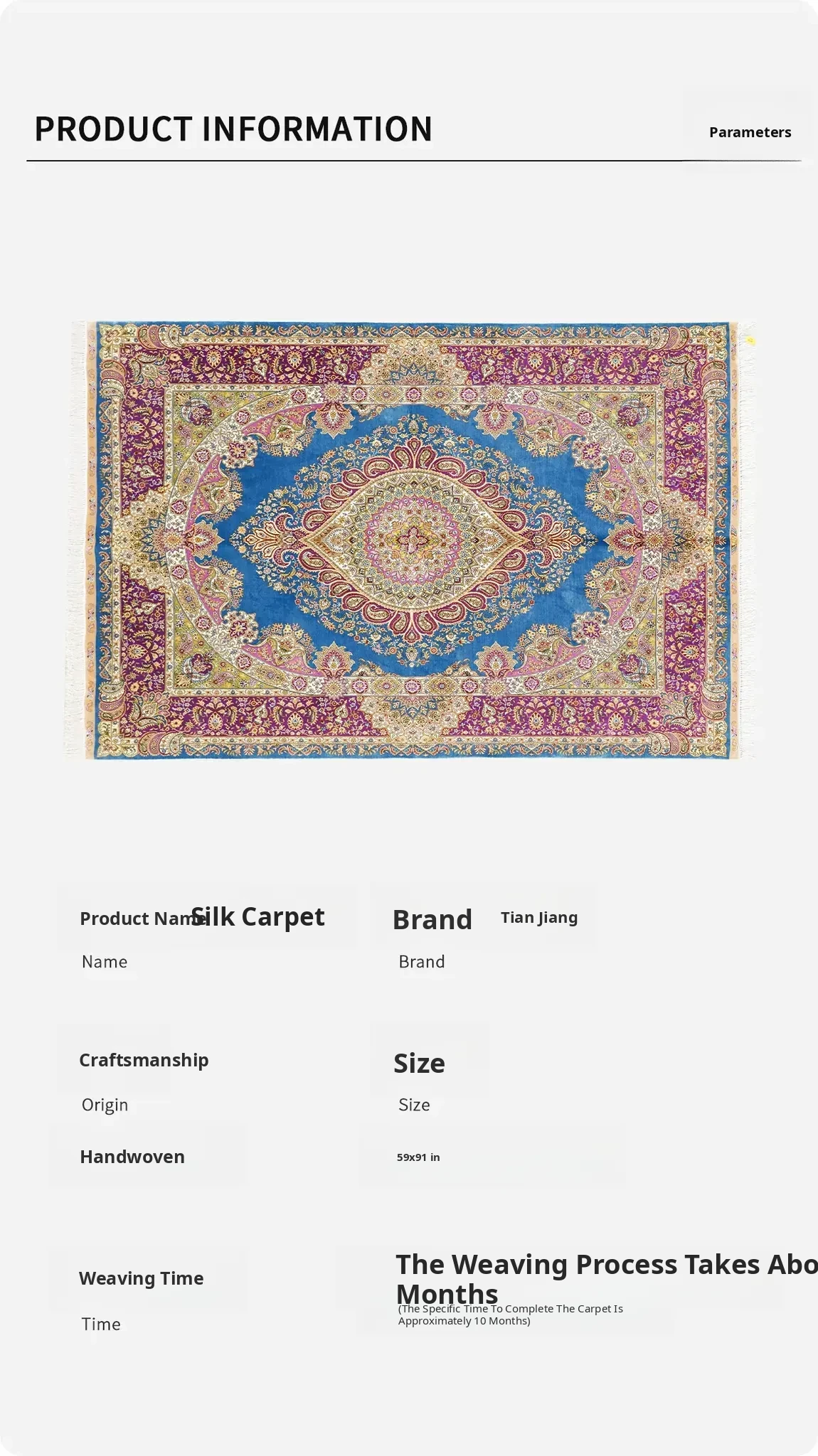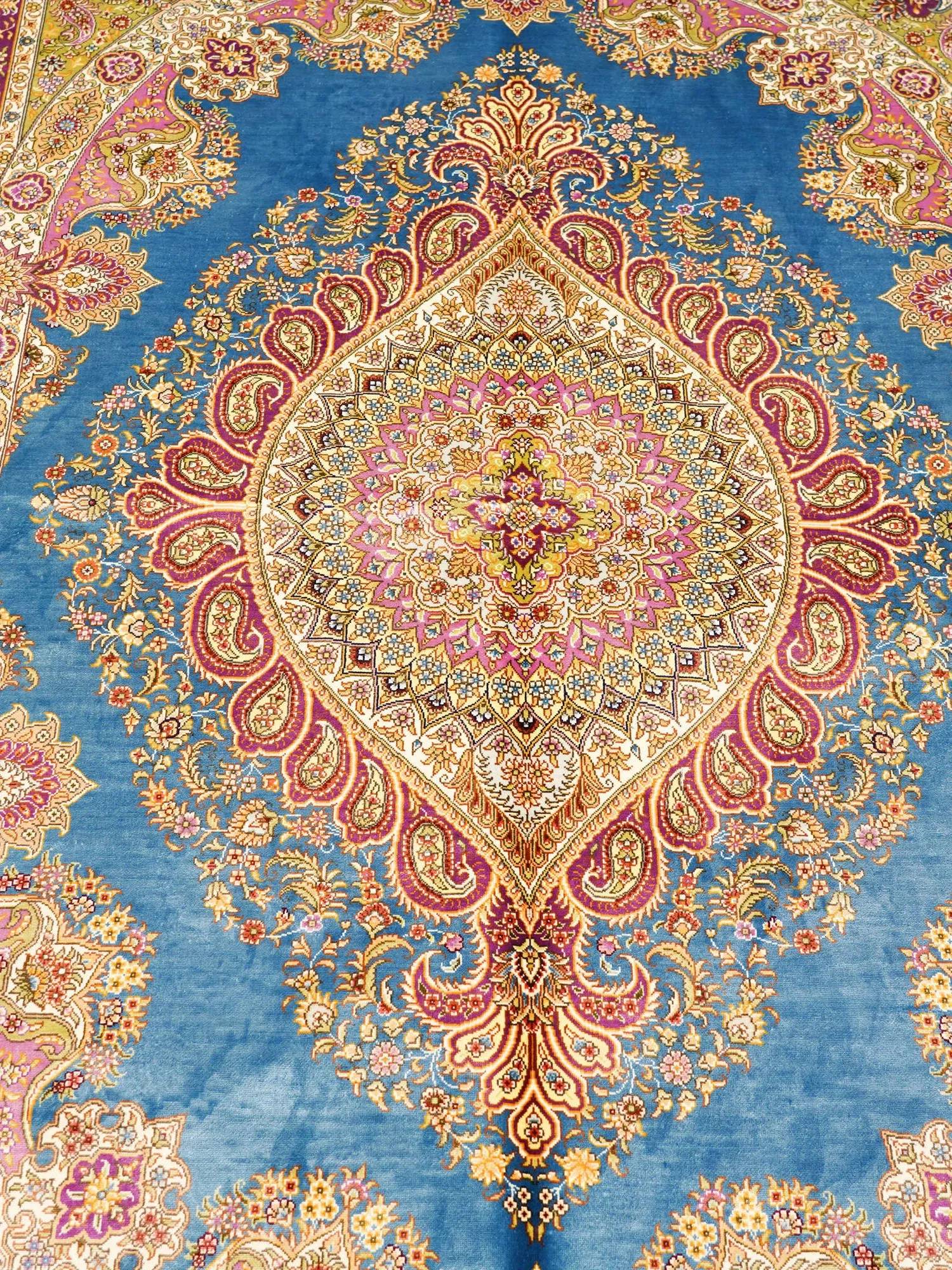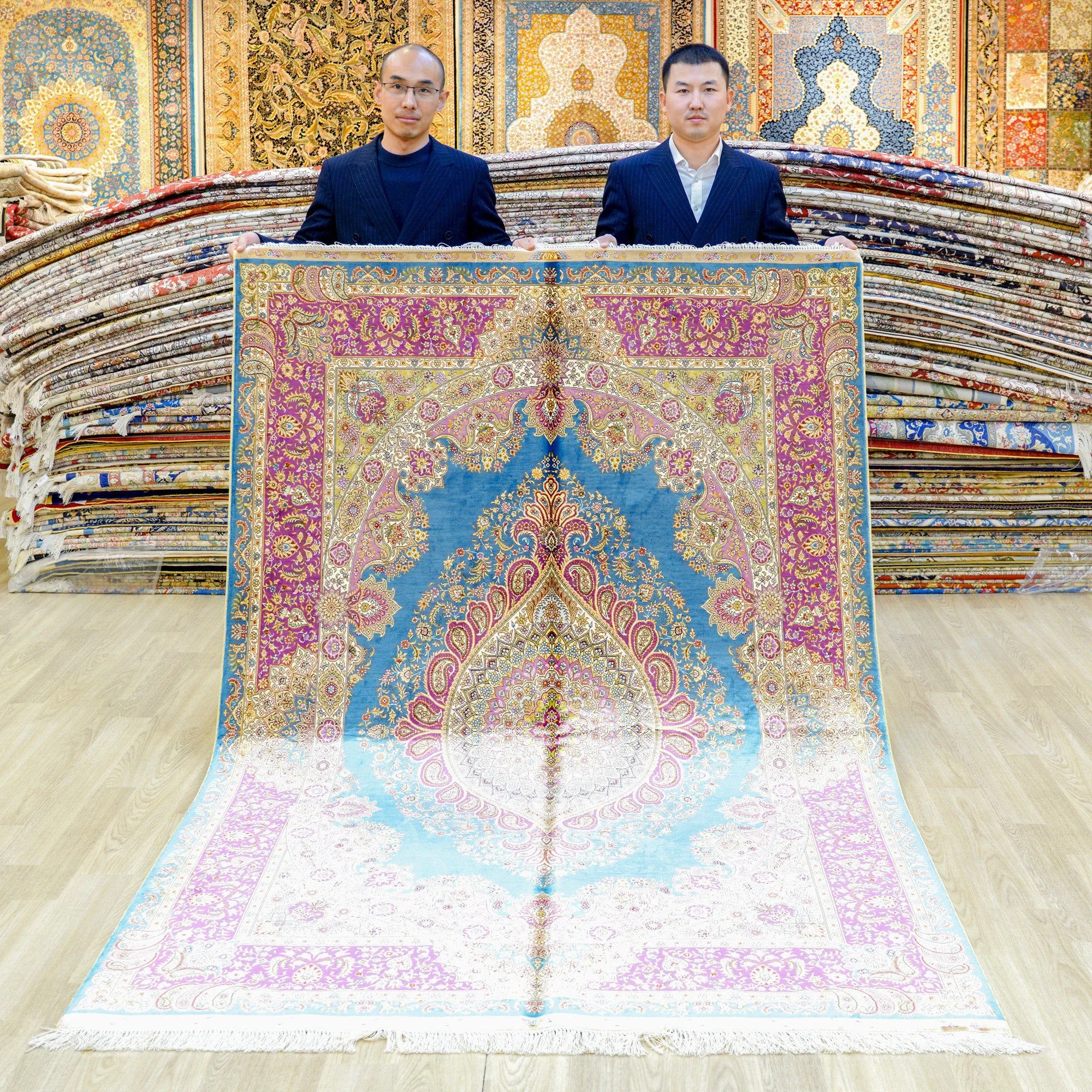 Artisan Handcrafted Blue Silk Carpet - Classic Persian Design for Villa, Bedroom, or Study - 150x230cm Perfect Size for Elegance and Comfort