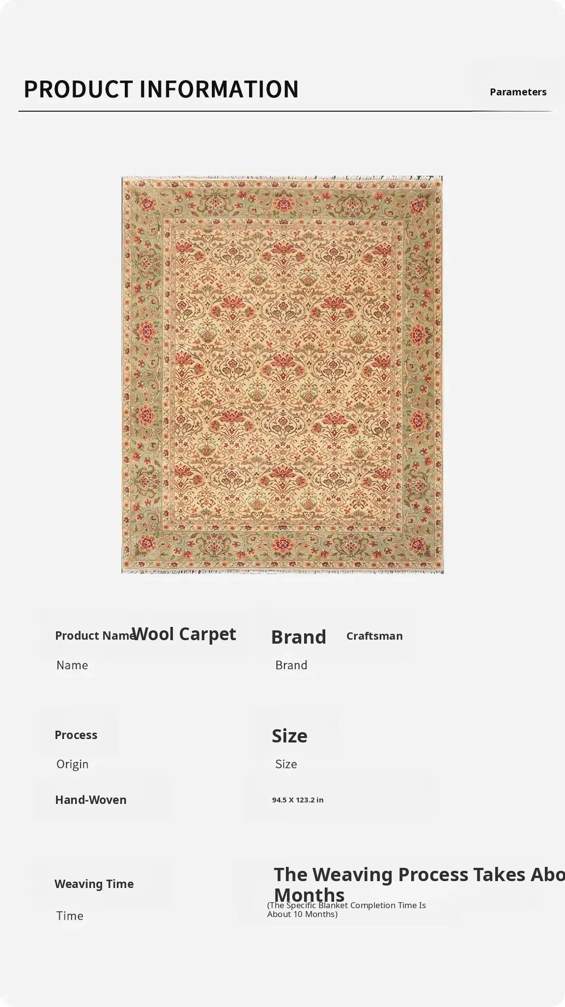 Artisan Handcrafted Imported Wool Carpet - Premium Minimalist Luxury Area Rug for Living Room and Bedroom, 240x313cm