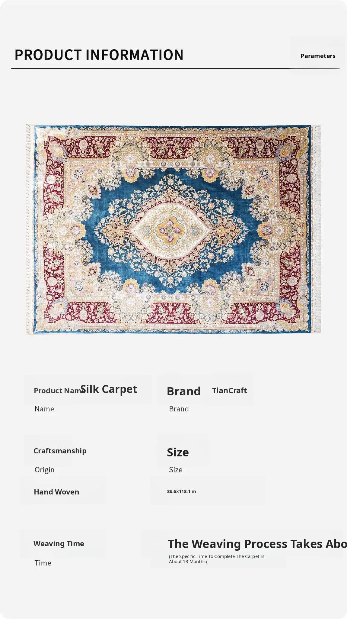 Artisan Handcrafted Silk Carpet - Exquisite Turkish Design for Villas and Homes, Persian Style, 220x300cm