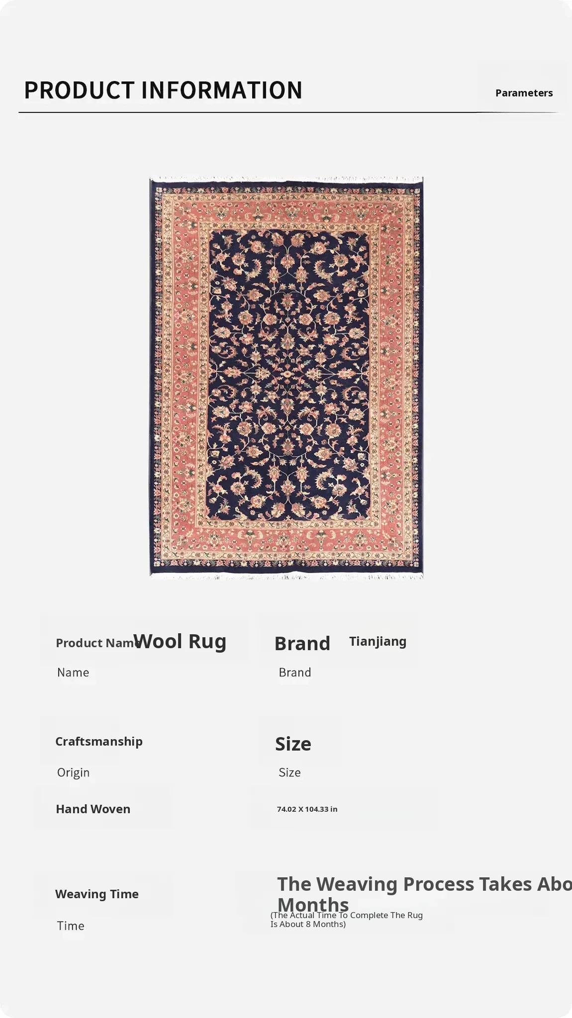 Artisan Handcrafted Wool Persian Floral Area Rug - Classic Design for Bedroom & Study, 188x265cm - Perfect for European and American Homes