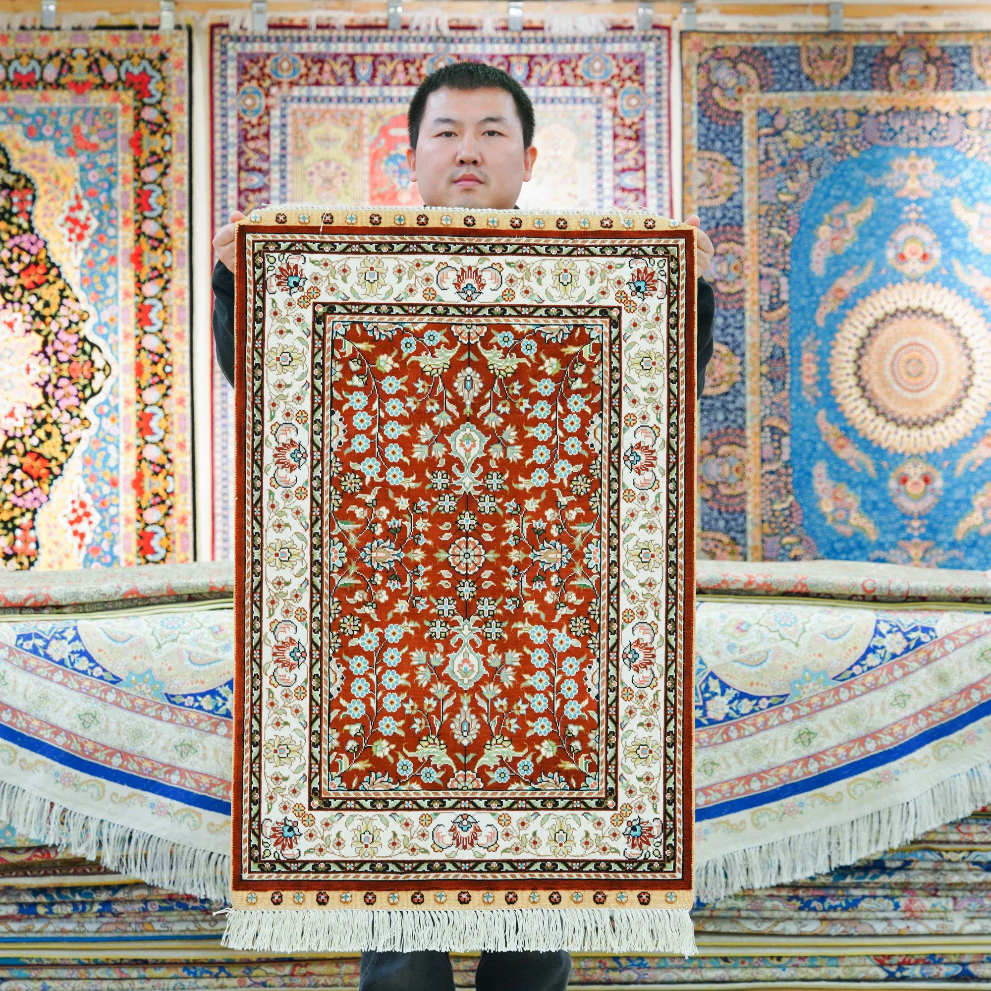 Artisan Handmade Silk Area Rug - Luxurious 60x90cm Entryway Carpet, Bedroom Bedside Mat, and Living Room Wall Hanging. Perfect for Elevating Your Home Décor!