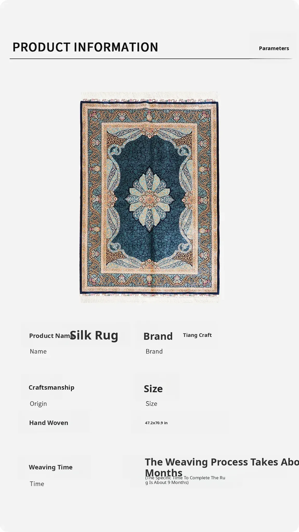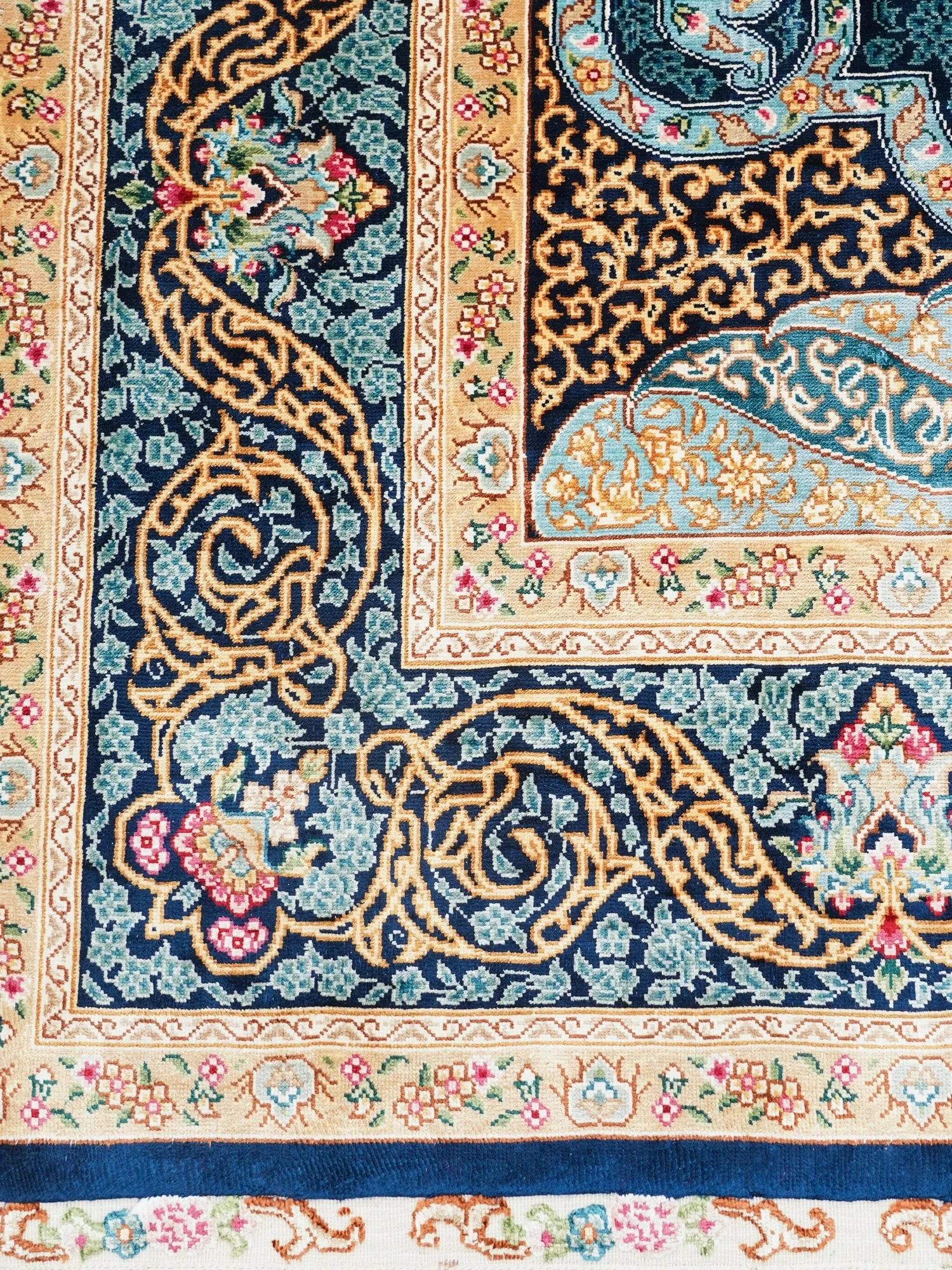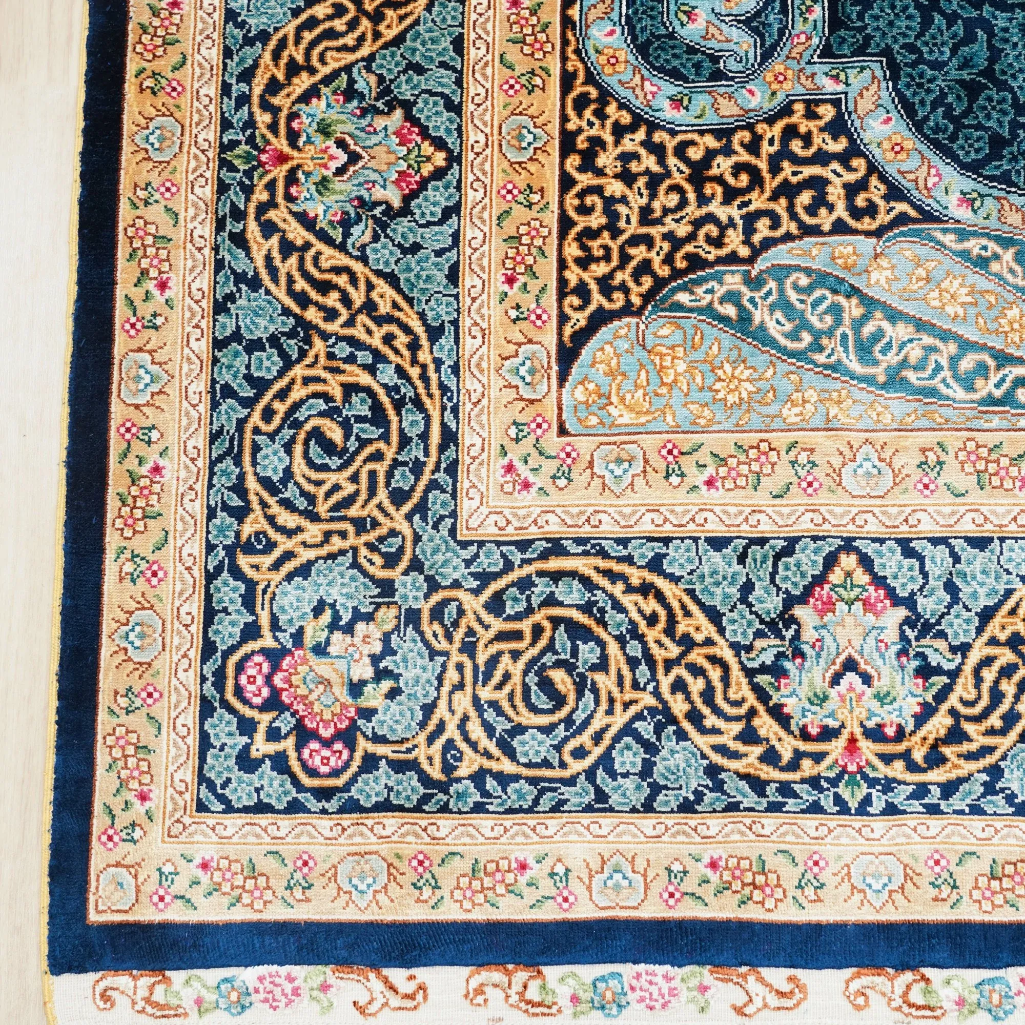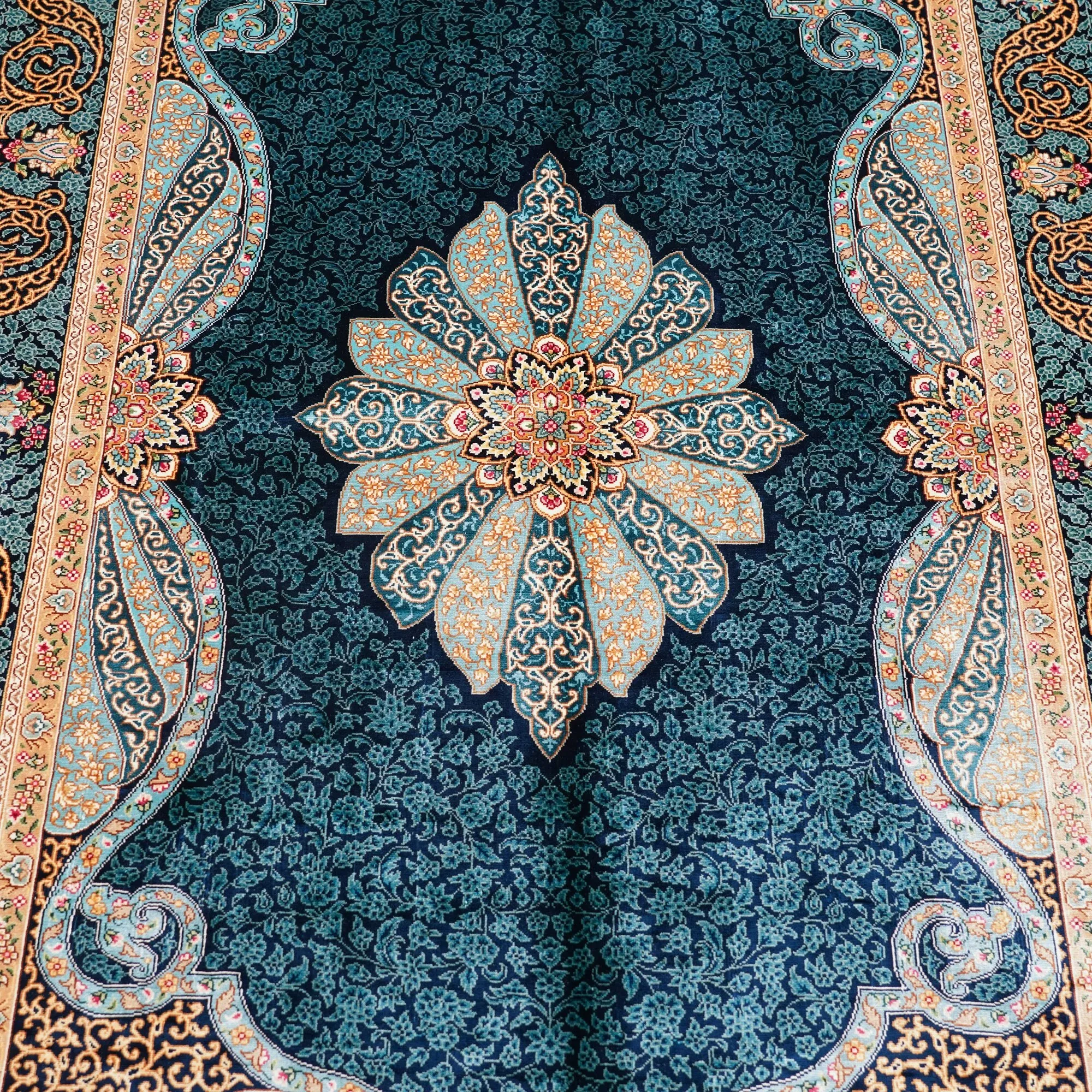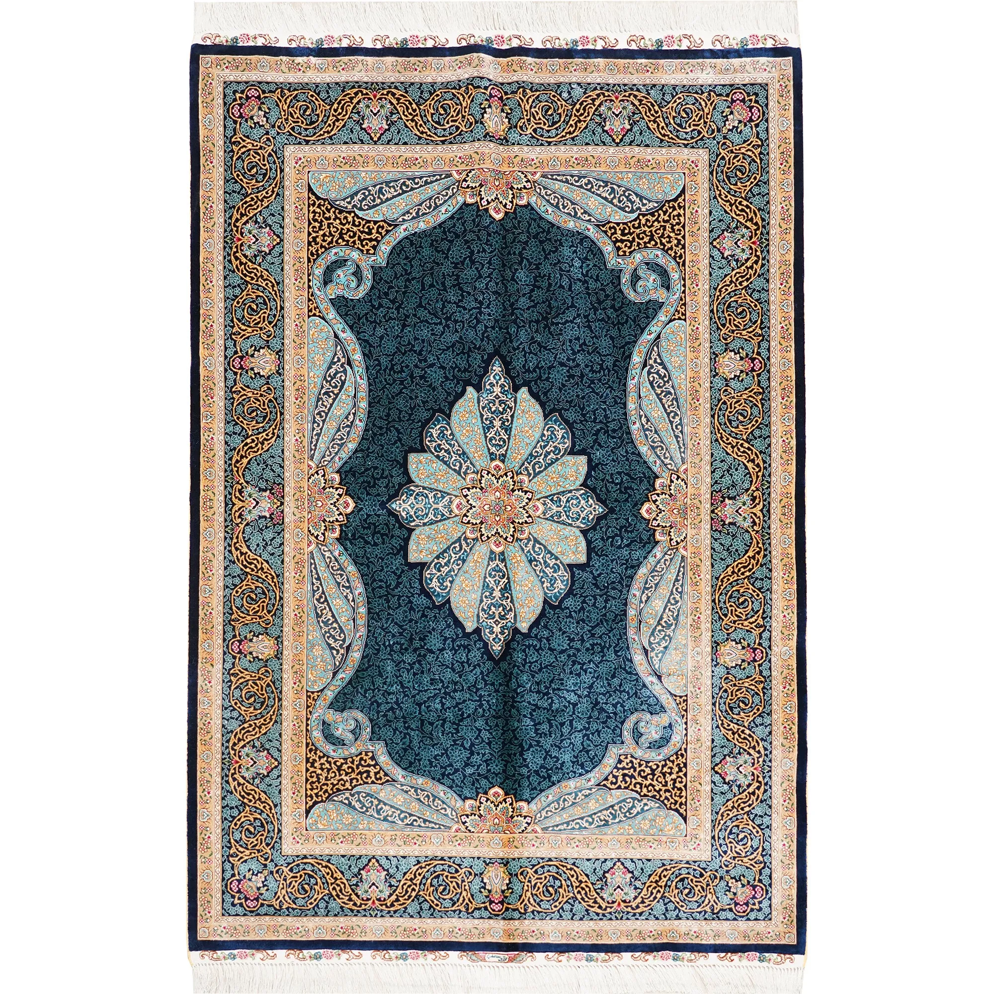 Artisan Handmade Silk Carpet - Exquisite Persian Design in Blue, Perfect for American Bedrooms, 120x180cm Bed Runner Rug