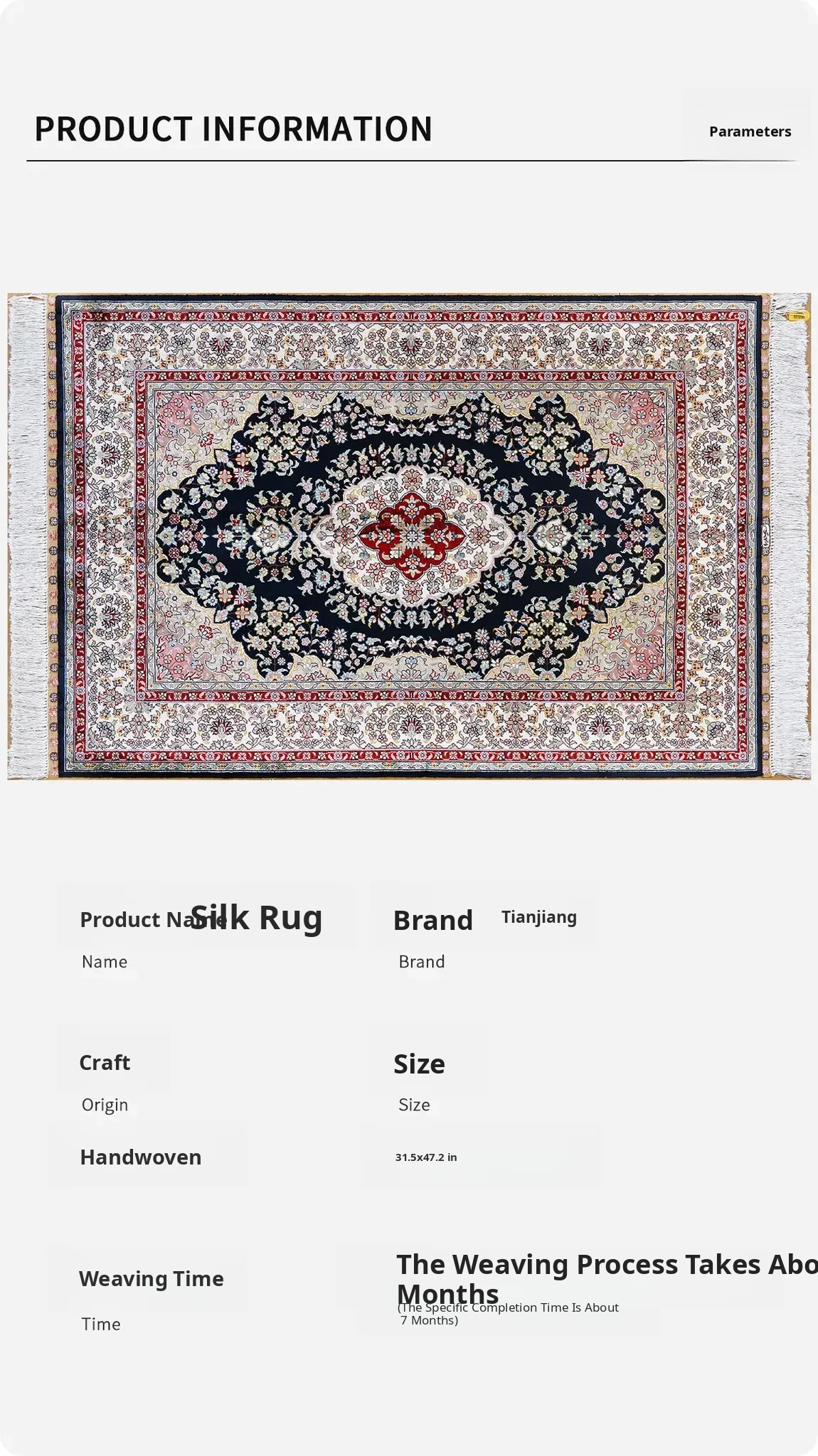 Artisan Handmade Silk Carpet - Persian Design, Exquisite Turkish Export Quality, Luxurious Silk Area Rug, Perfect Size 80x120cm for Elegant Home Décor