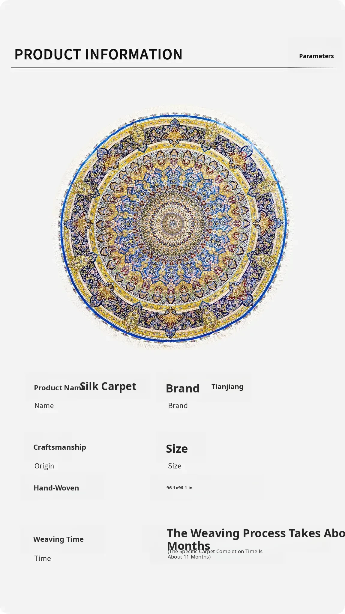 Artisan Handmade Silk Round Persian Carpet for Villa Living Room and Bedroom - 240x240cm, Luxurious Home Décor, Perfect for Adding Elegance to Any Space