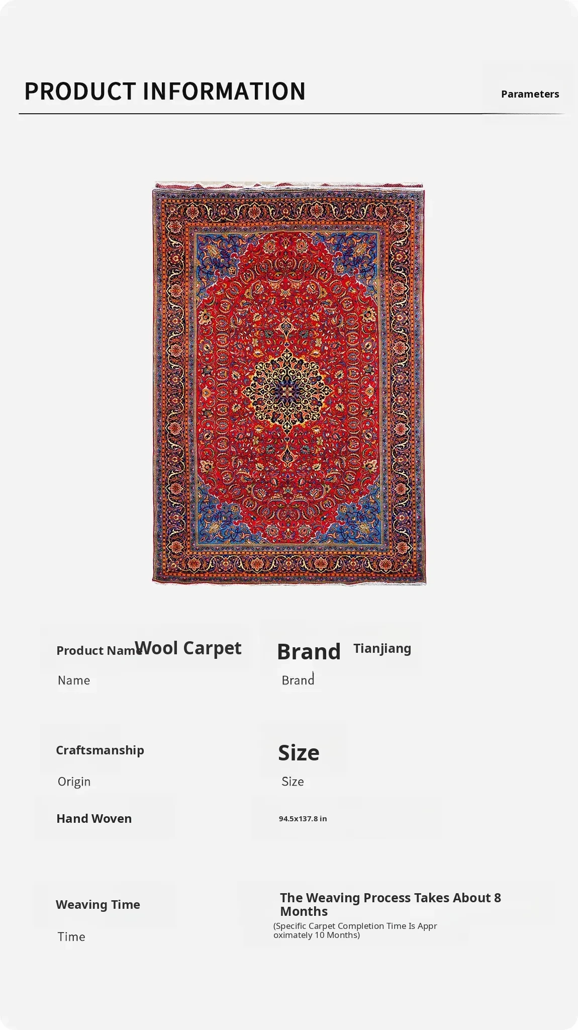Artisan Wool Area Rug - Handcrafted Imported Persian Carpet for Villas and Homes, Perfect for Living Room and Bedroom, Size: 240x350cm