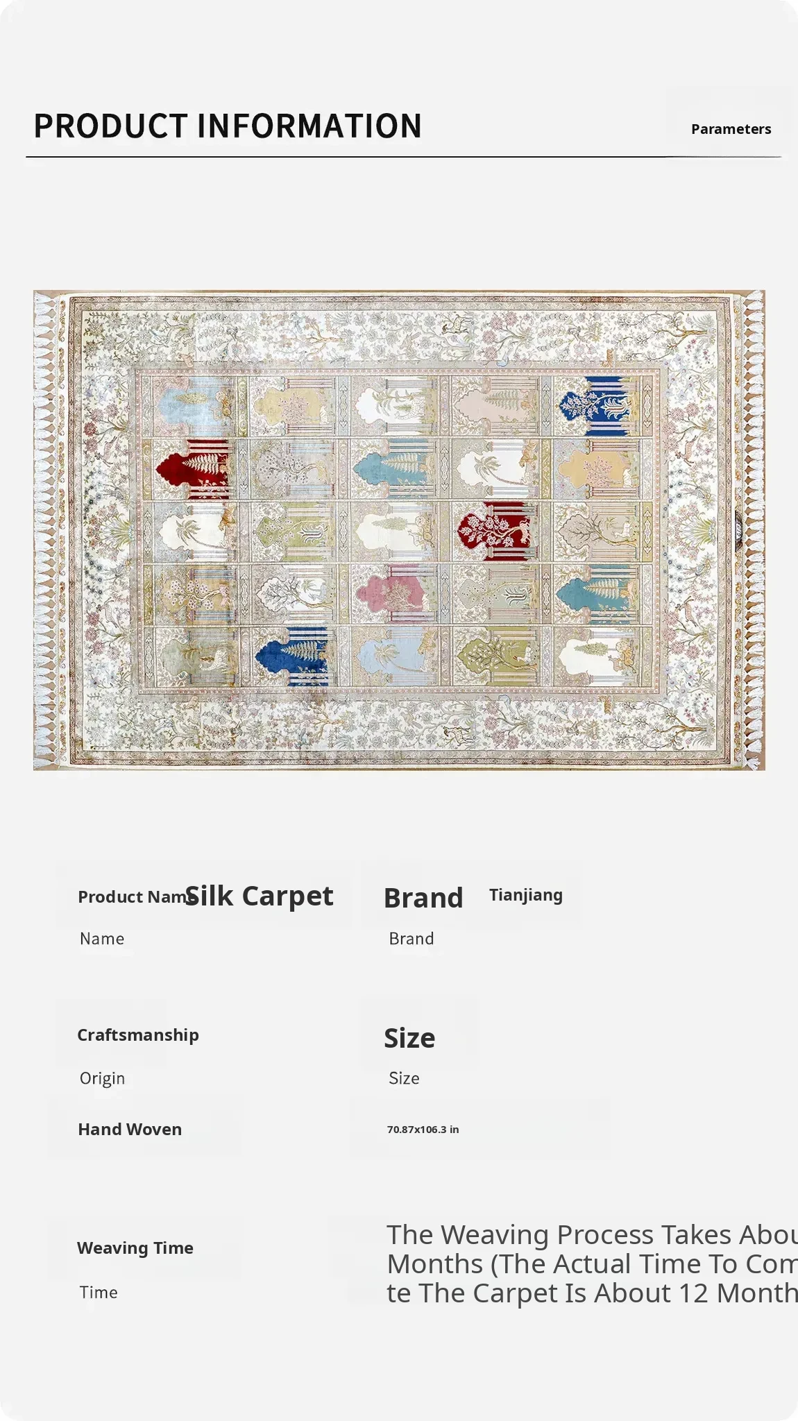 Elegant Handmade Silk Carpet - Exquisite Turkish and Persian Design, Perfect for Your Home, Bedroom, 180x270cm