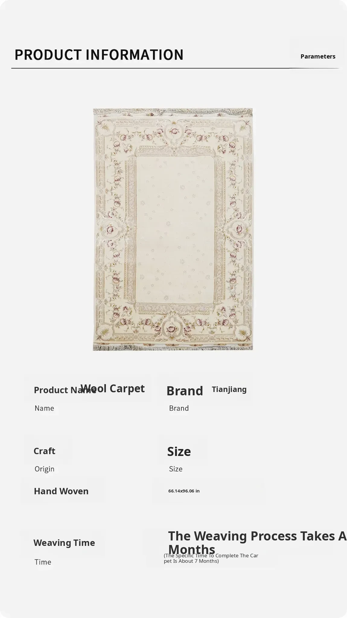 Elegant Handmade Wool Carpet - Solid Color European Style for Bedroom & Study, Luxury Villa Rug 168x244cm