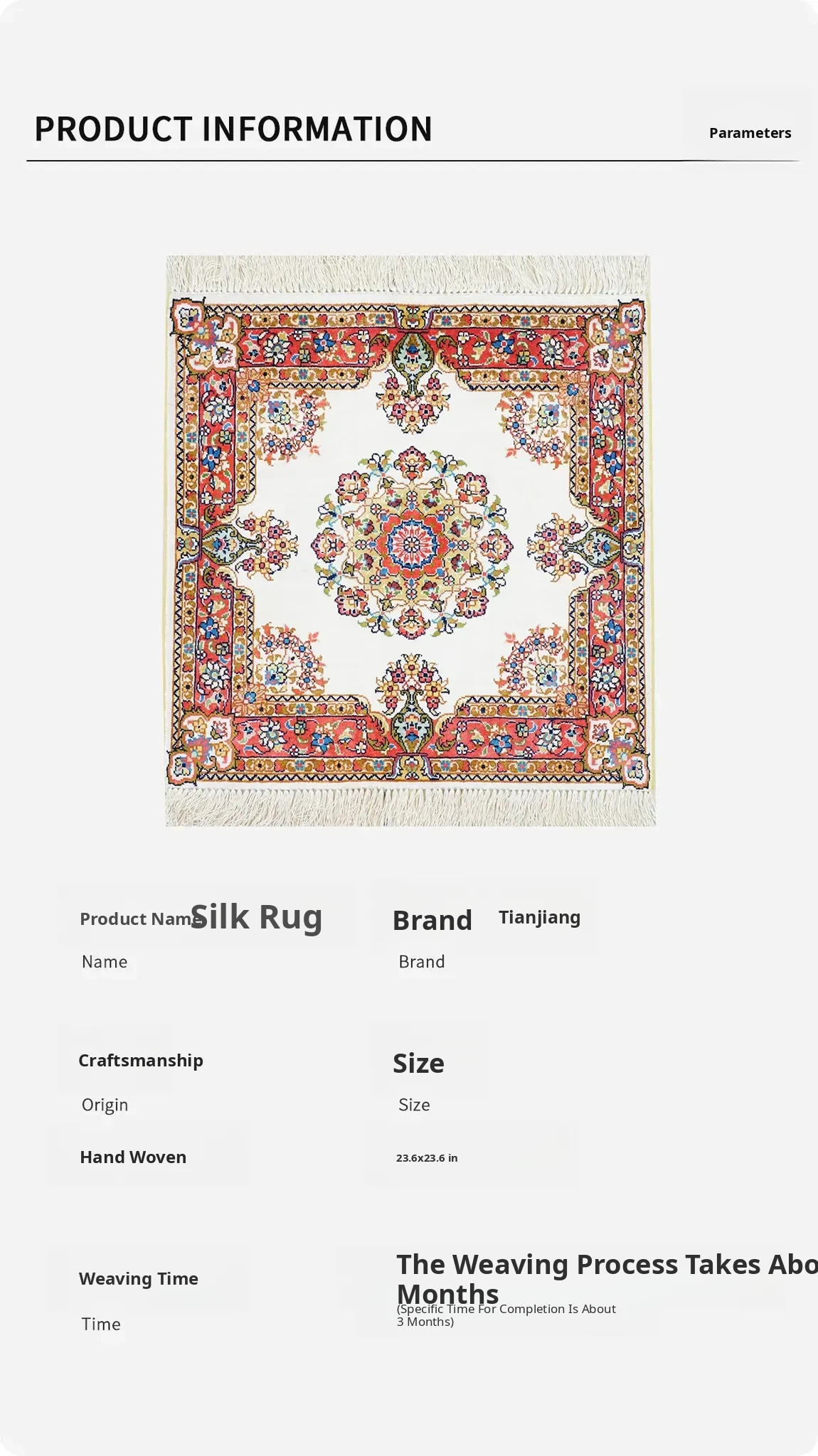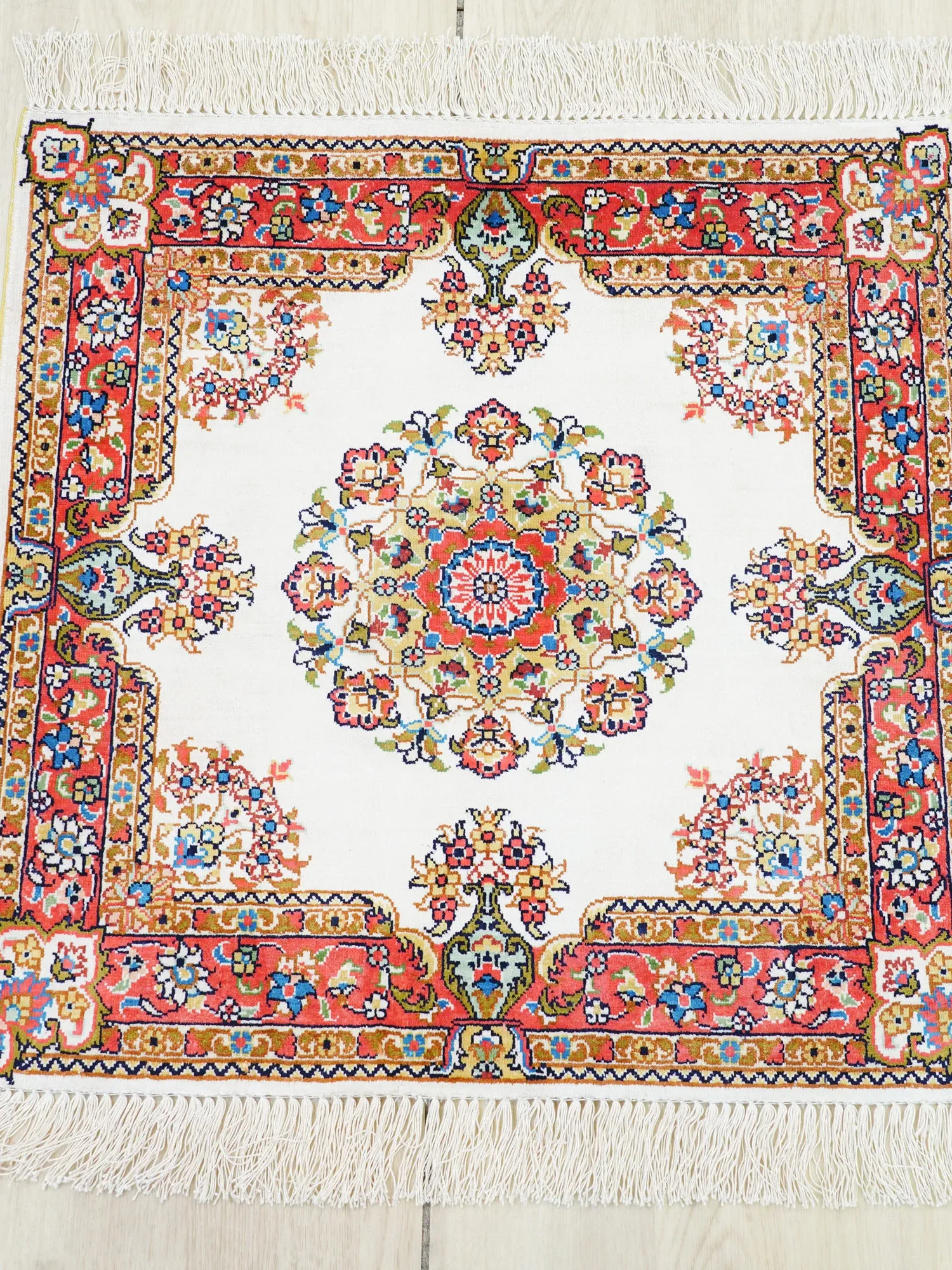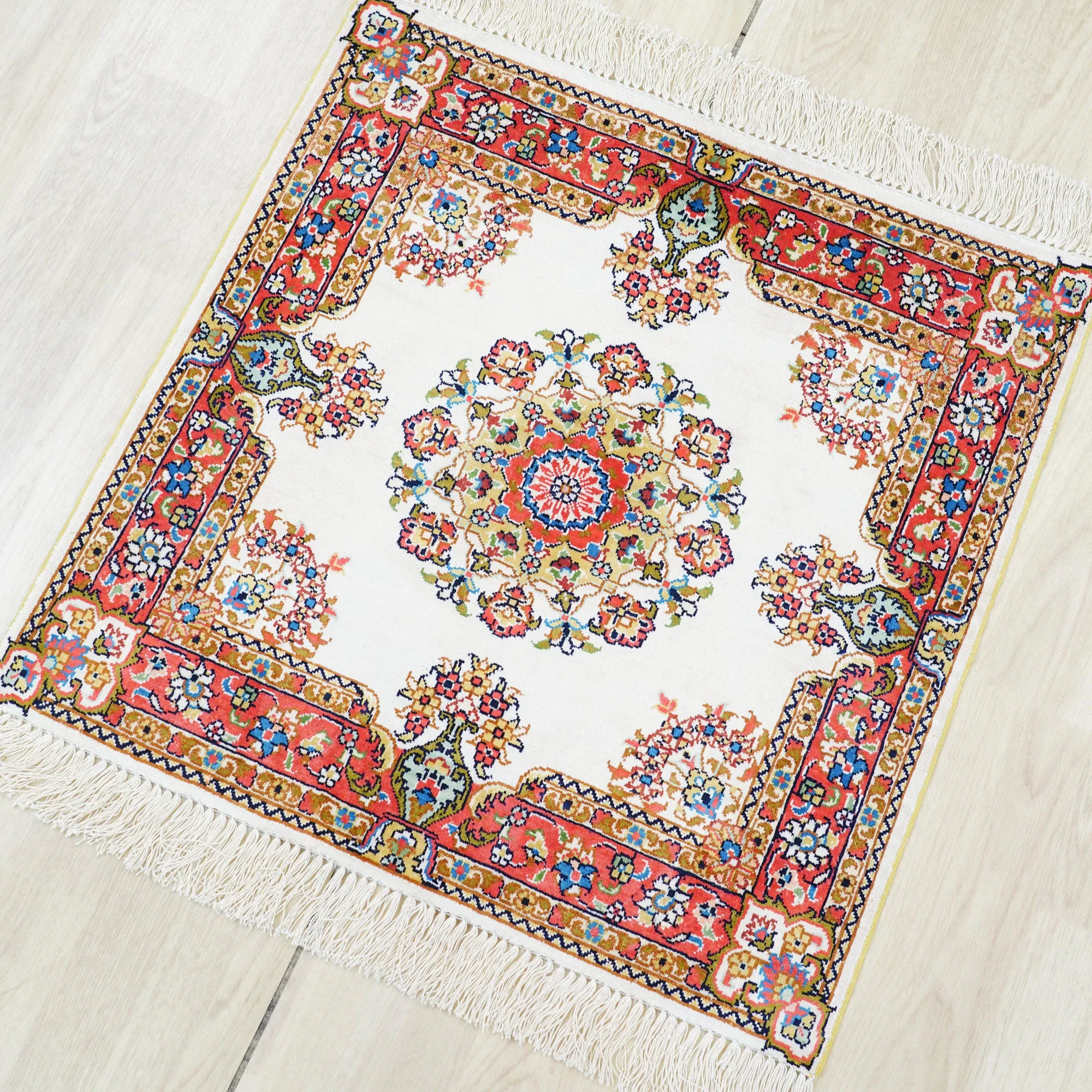 Handcrafted Artisan Silk Persian Carpet - Exquisite 60x60cm Rug for Turkish and European Villa Bedrooms & Studies