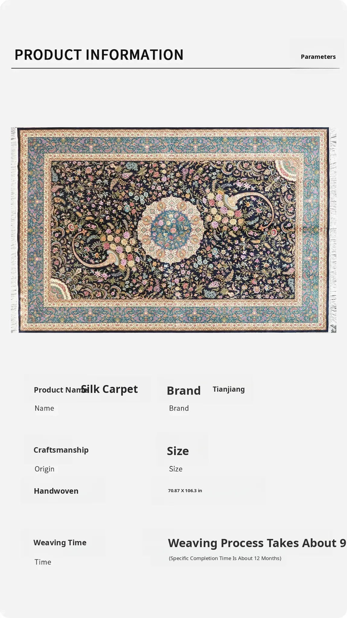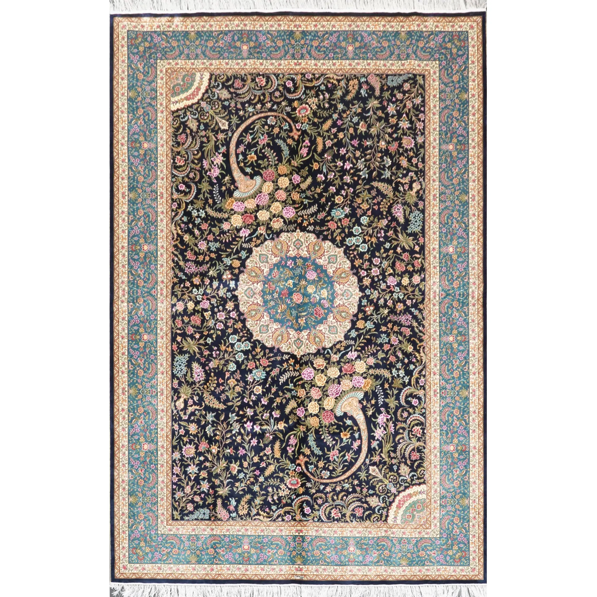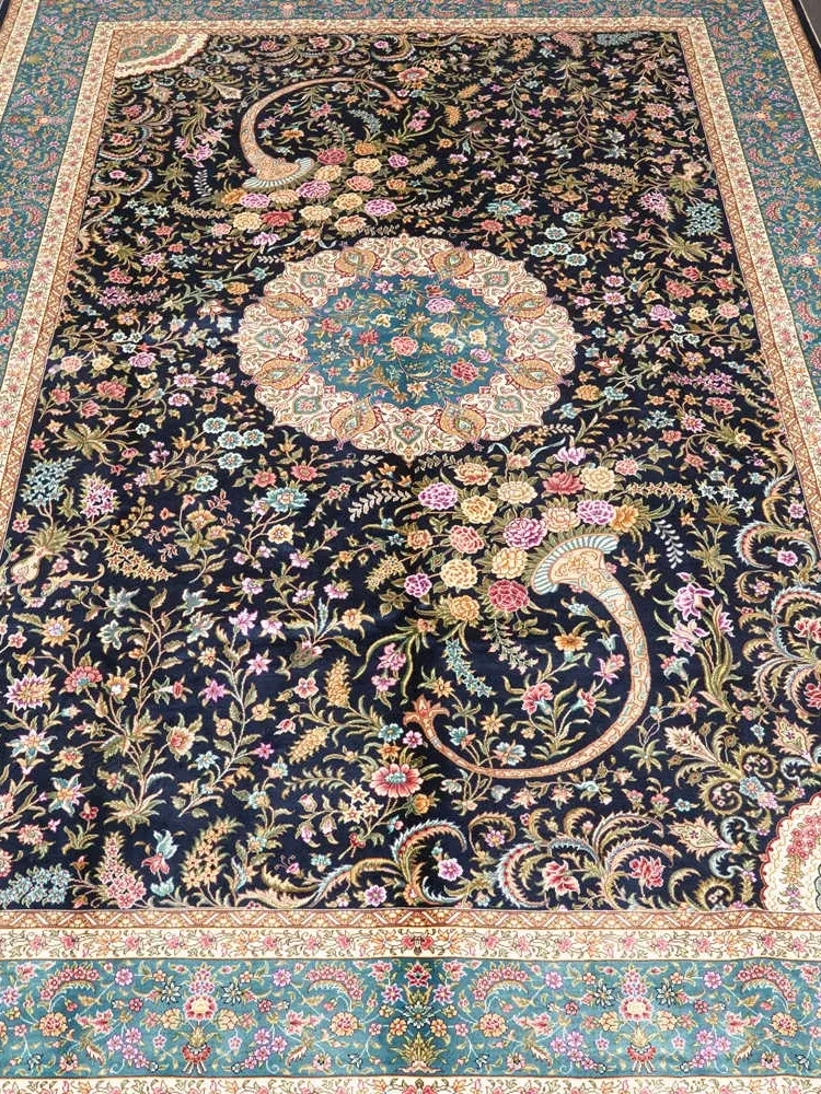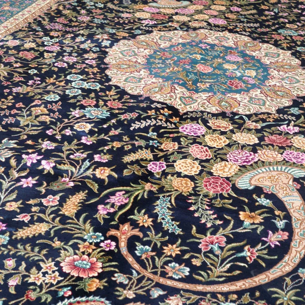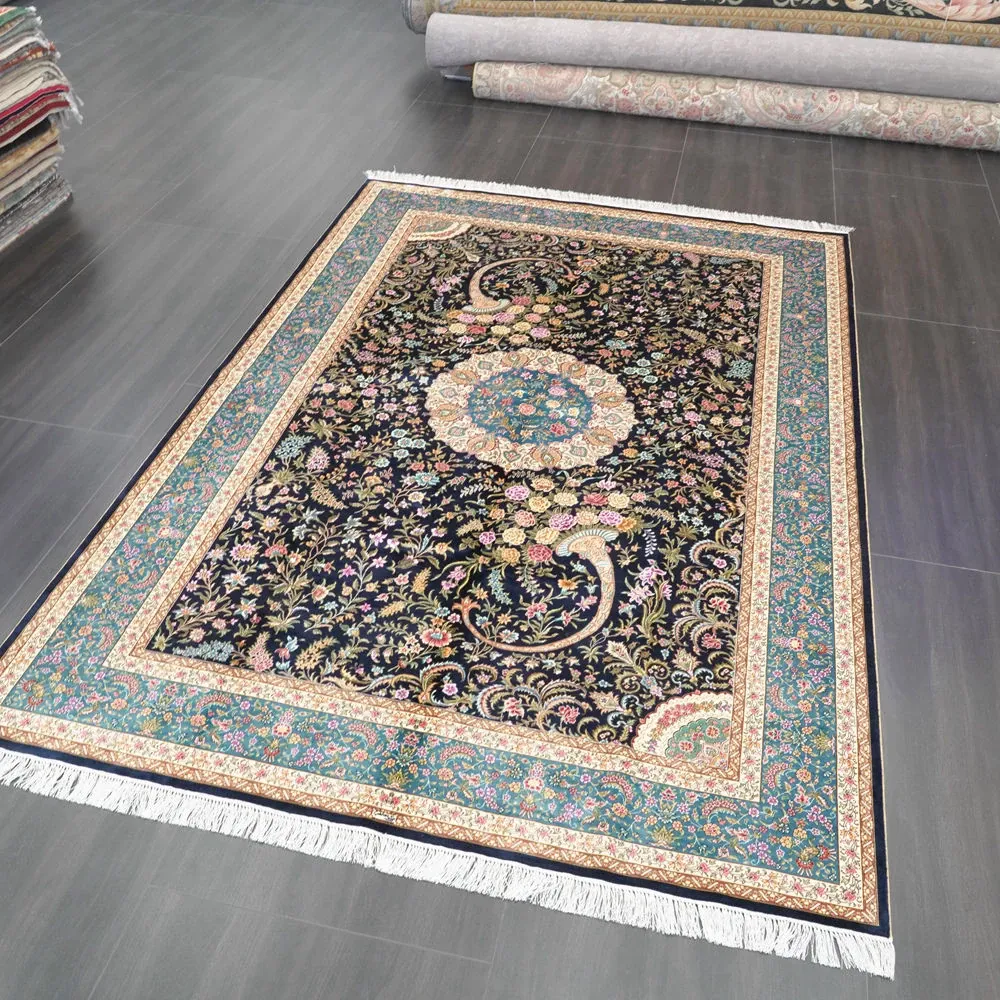 Handcrafted Blue Persian Silk Carpet - Luxurious 180x270cm Area Rug for Villa, Perfect for Bedroom and Study