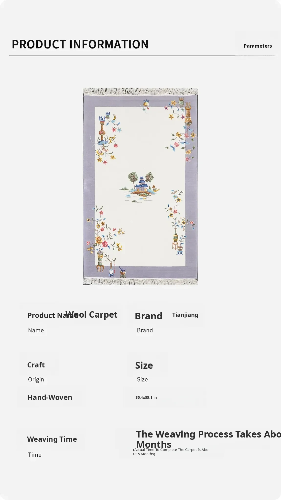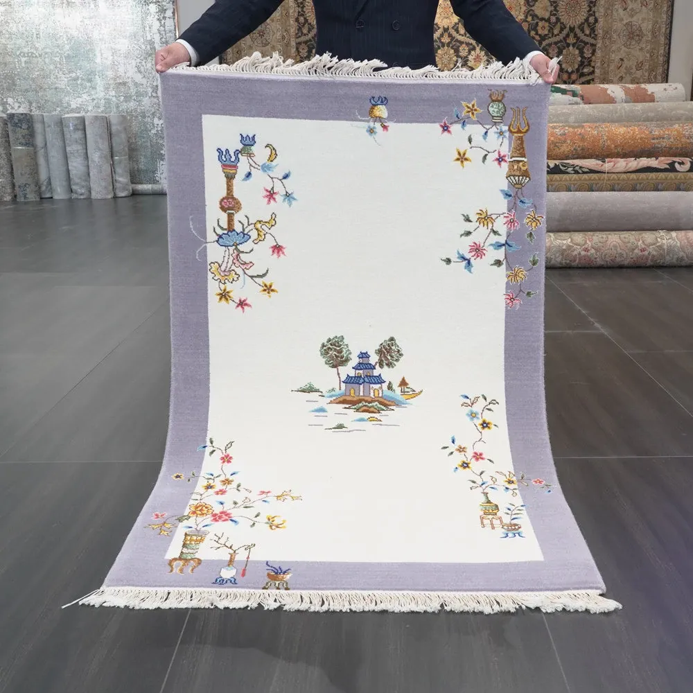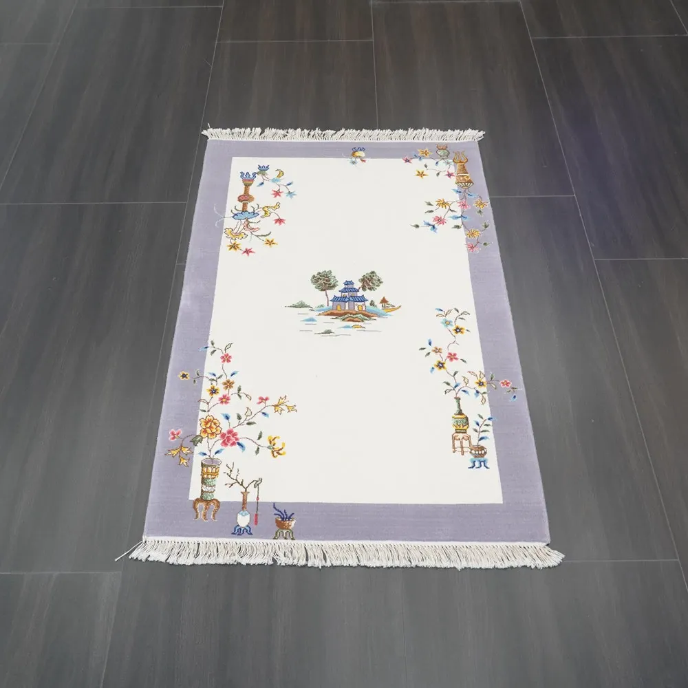 Handcrafted Chinese Style Wool Rug - 90x140cm, Perfect for Bedroom Decor, Elegant and Cozy Design
