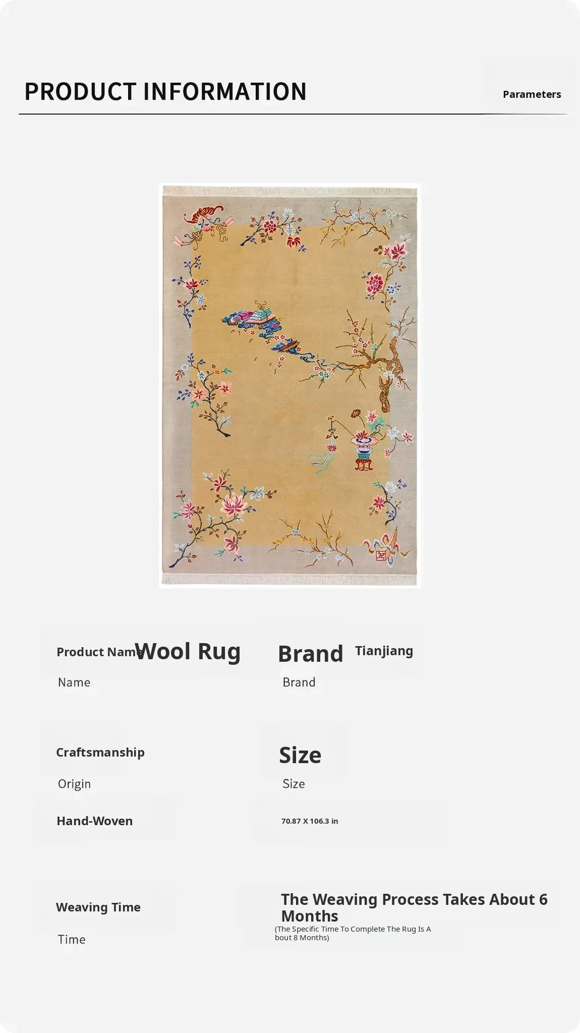 Handcrafted Chinese Wool Carpet - Eco-Friendly Luxury Area Rug for Living Room and Study - 180x270cm
