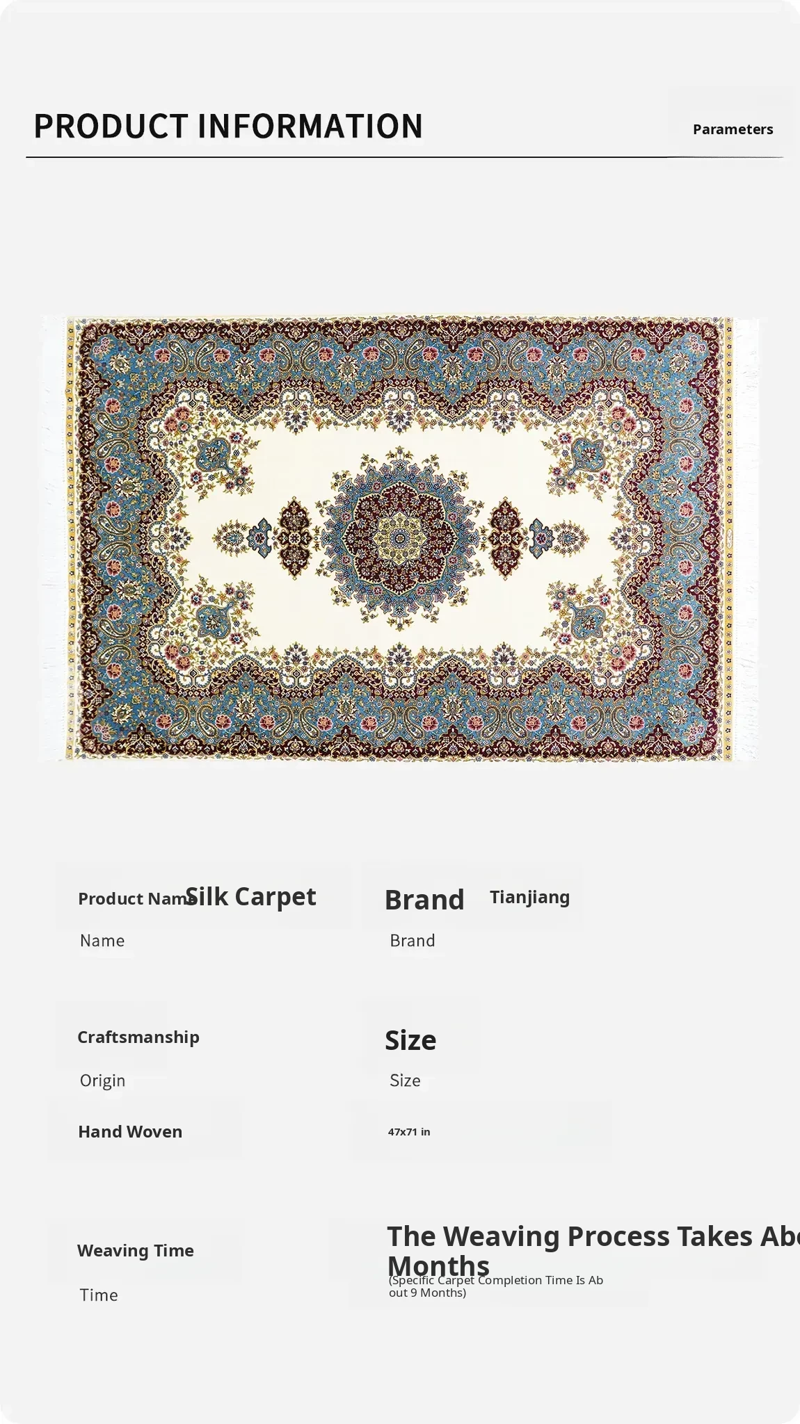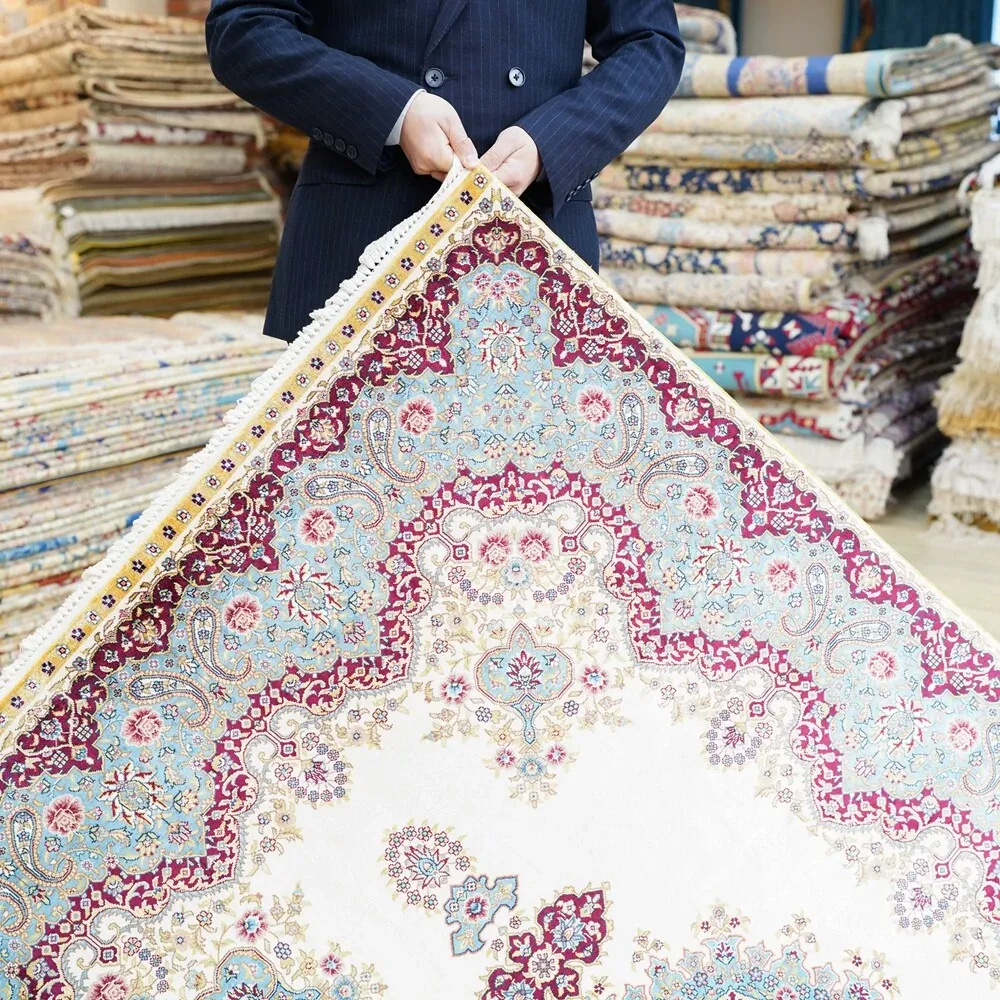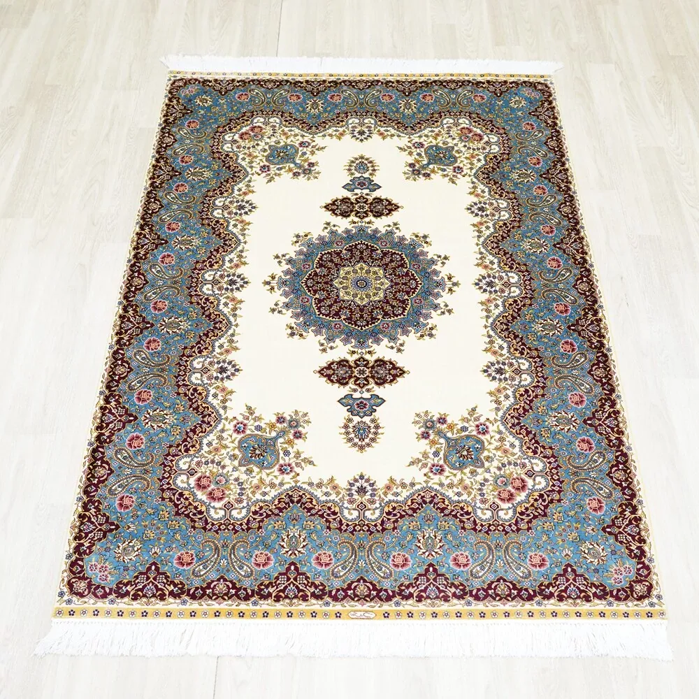 Handcrafted Genuine Silk Area Rug - Persian Knot Weave Carpet for Bedroom and Study Room - 120x180cm Elegant Design