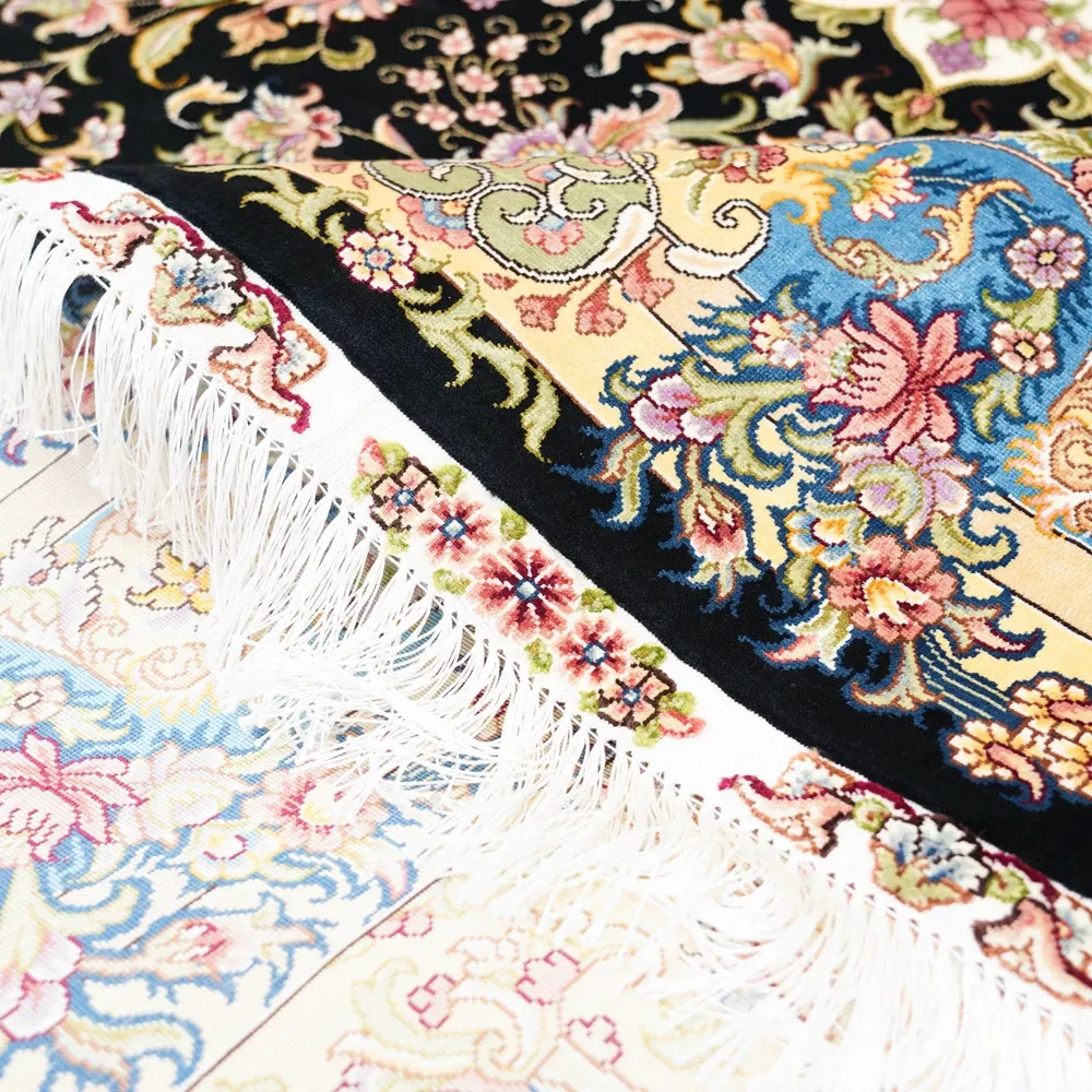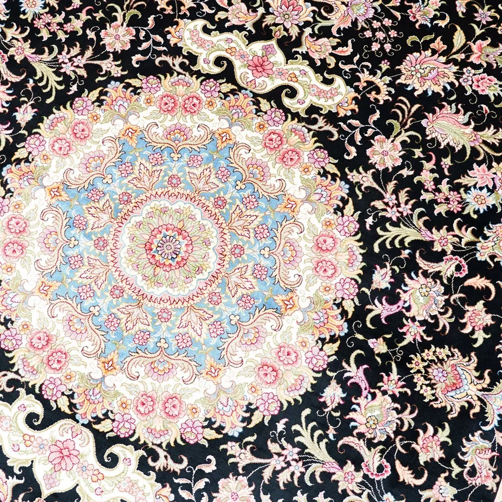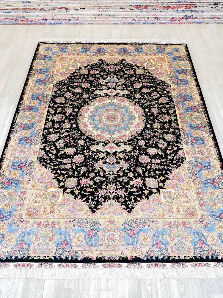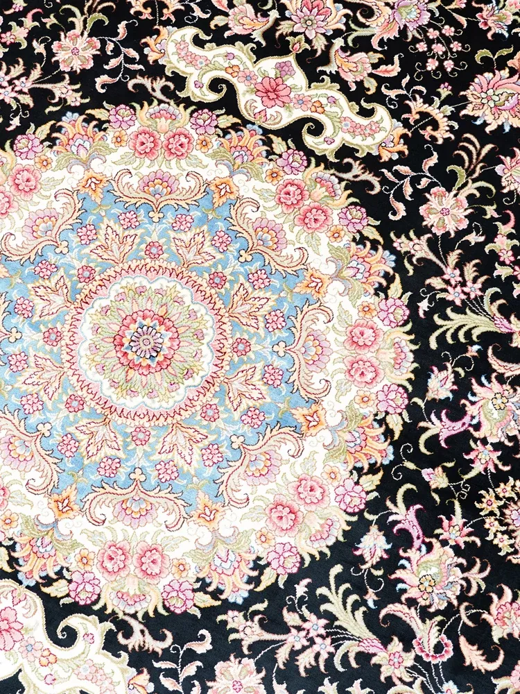 Handcrafted Genuine Silk Carpet - Blue Persian Floral Round Rug, American Palace Style, Perfect for Home Decor, Size: 180x270cm