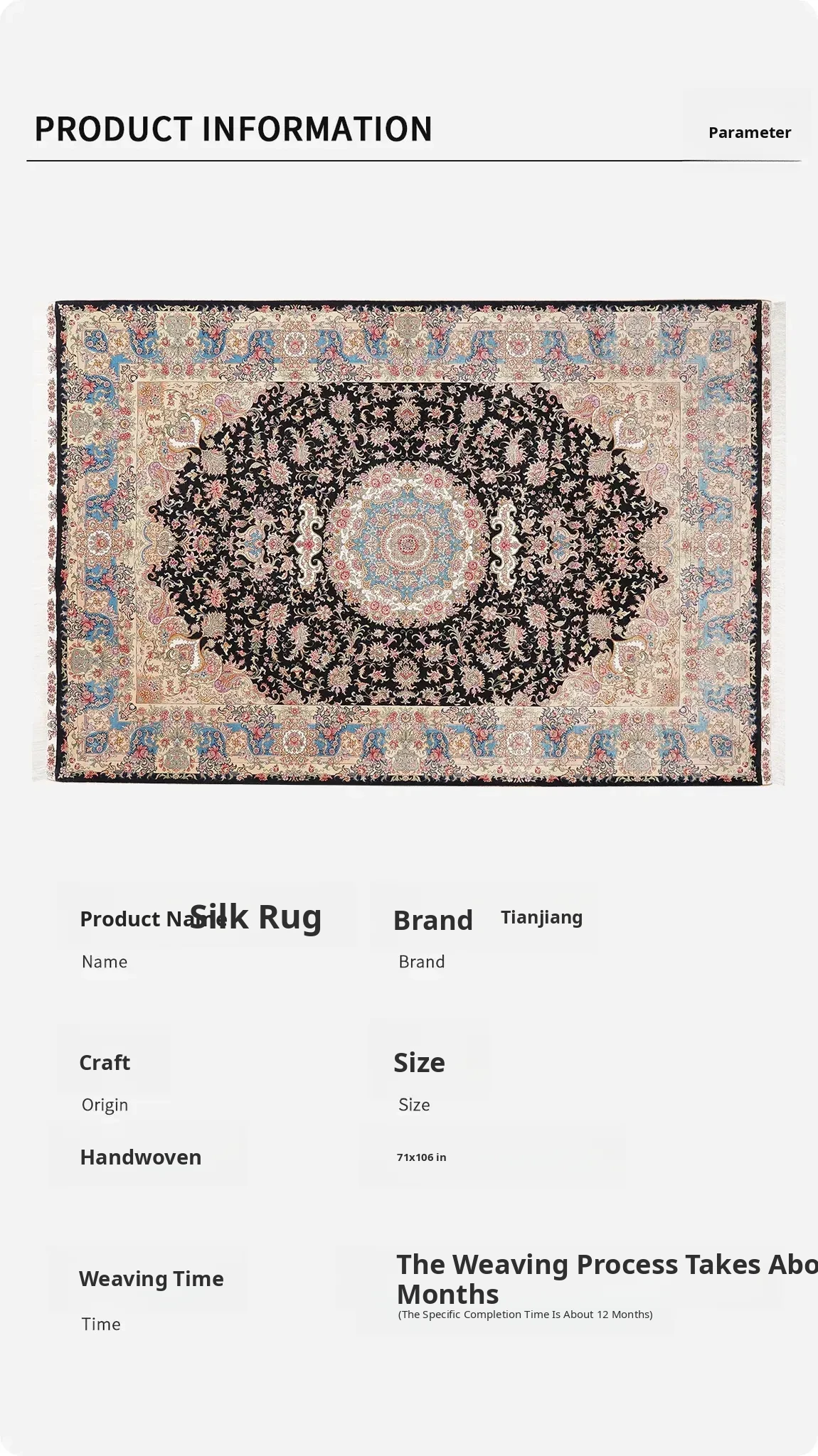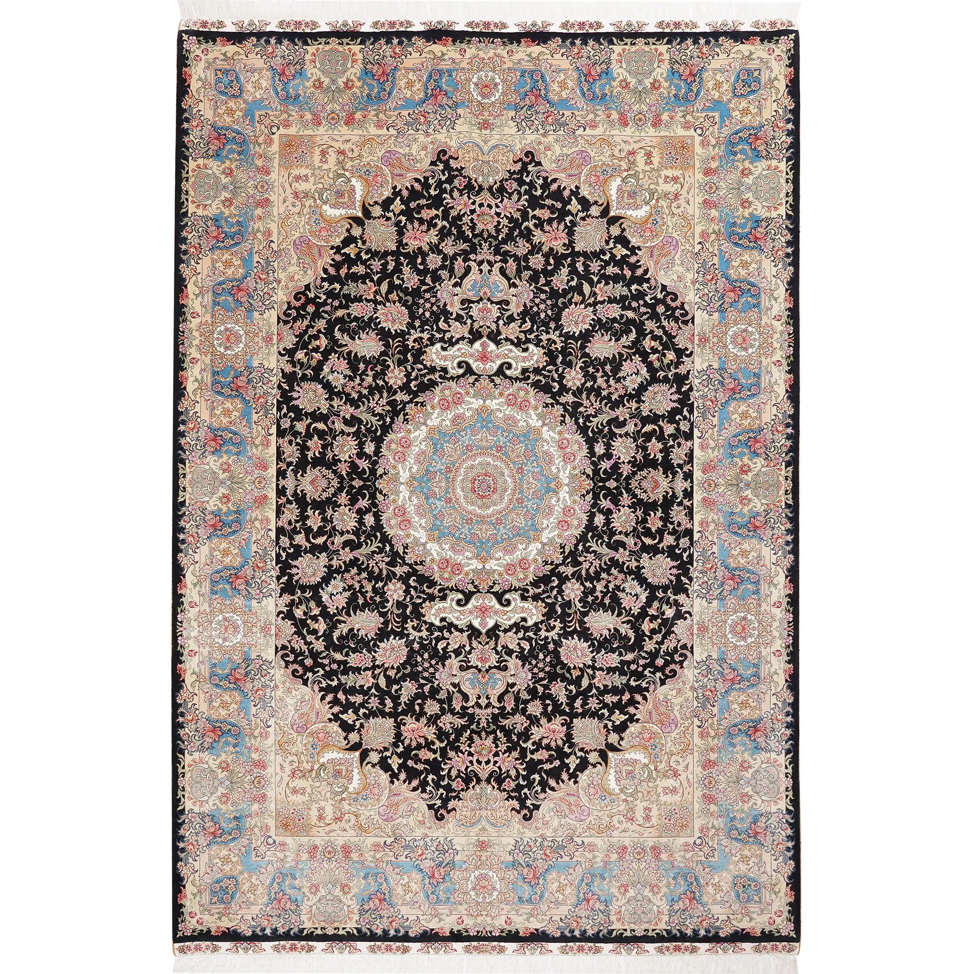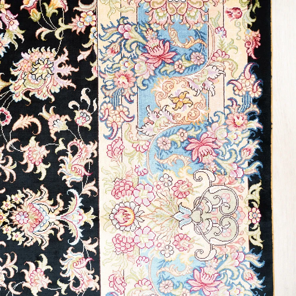 Handcrafted Genuine Silk Carpet - Blue Persian Floral Round Rug, American Palace Style, Perfect for Home Decor, Size: 180x270cm
