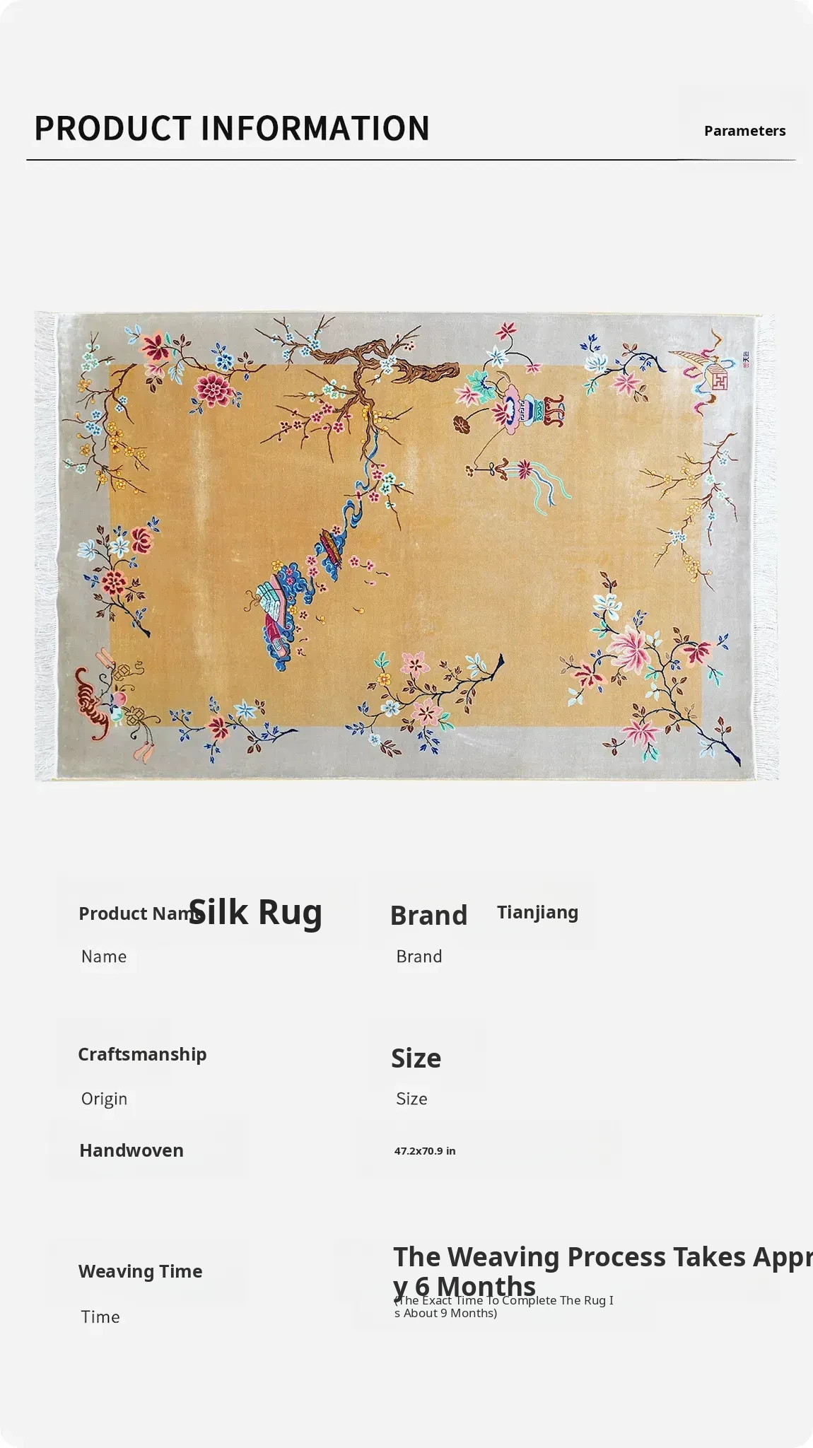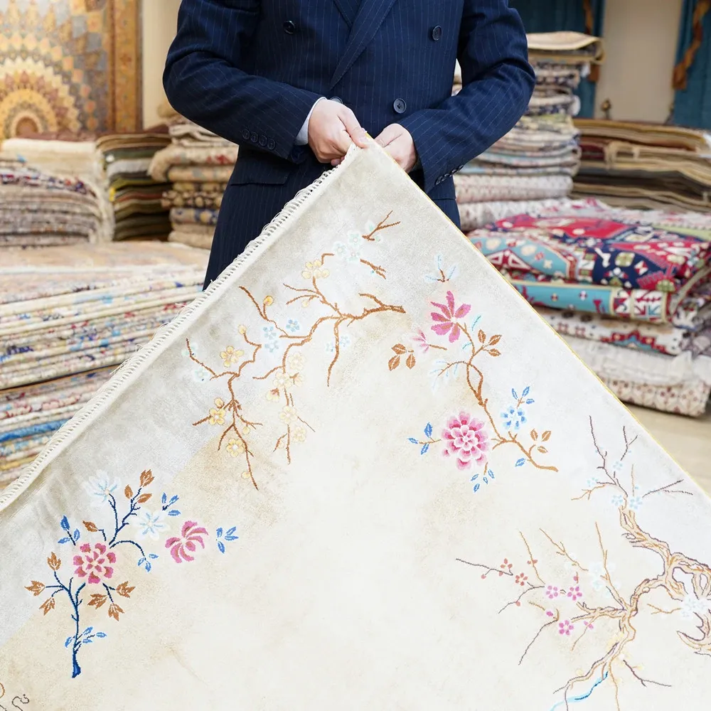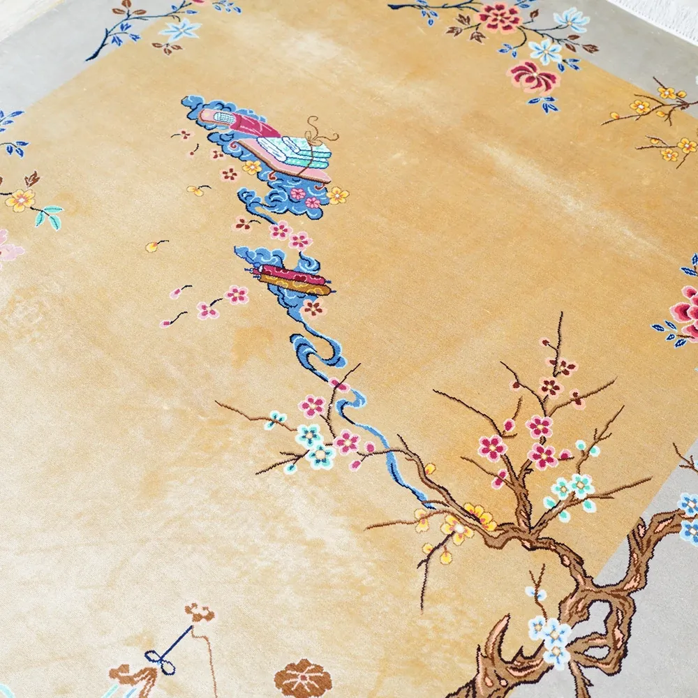 Handcrafted Genuine Silk Carpet in Khaki - Elegant Chinese Style Rug for Living Room, Bedroom, and Study - 120x180cm
