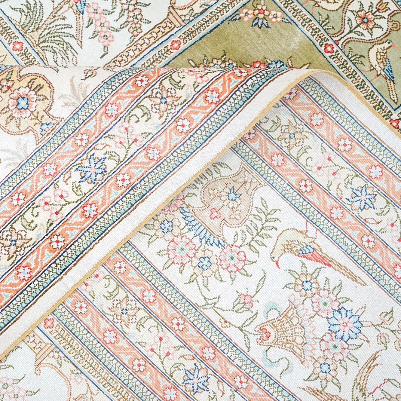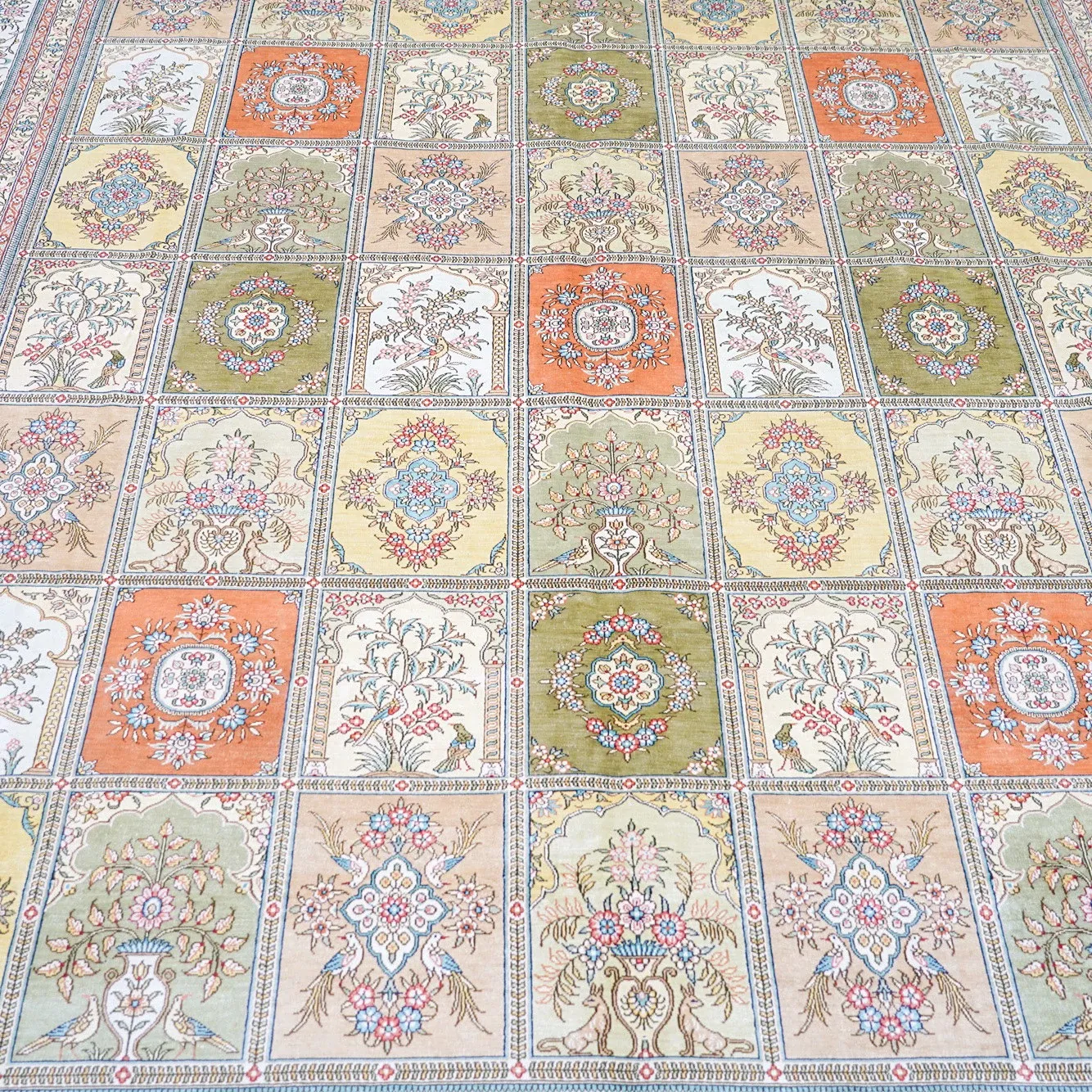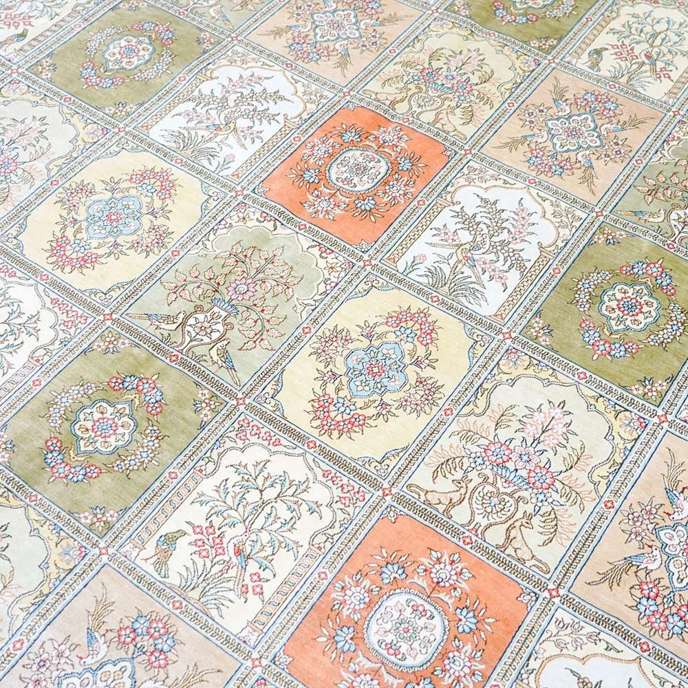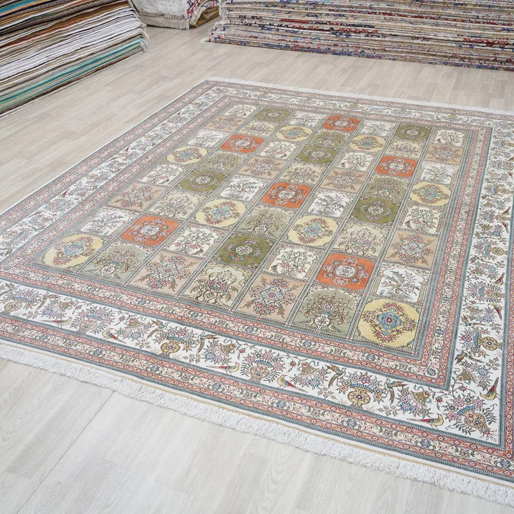 Handcrafted Genuine Silk Carpet - Versatile Garden Design for Living Room, Imported Turkish Carpet, 260x320cm - Elevate Your Home Décor with Luxurious Elegance!