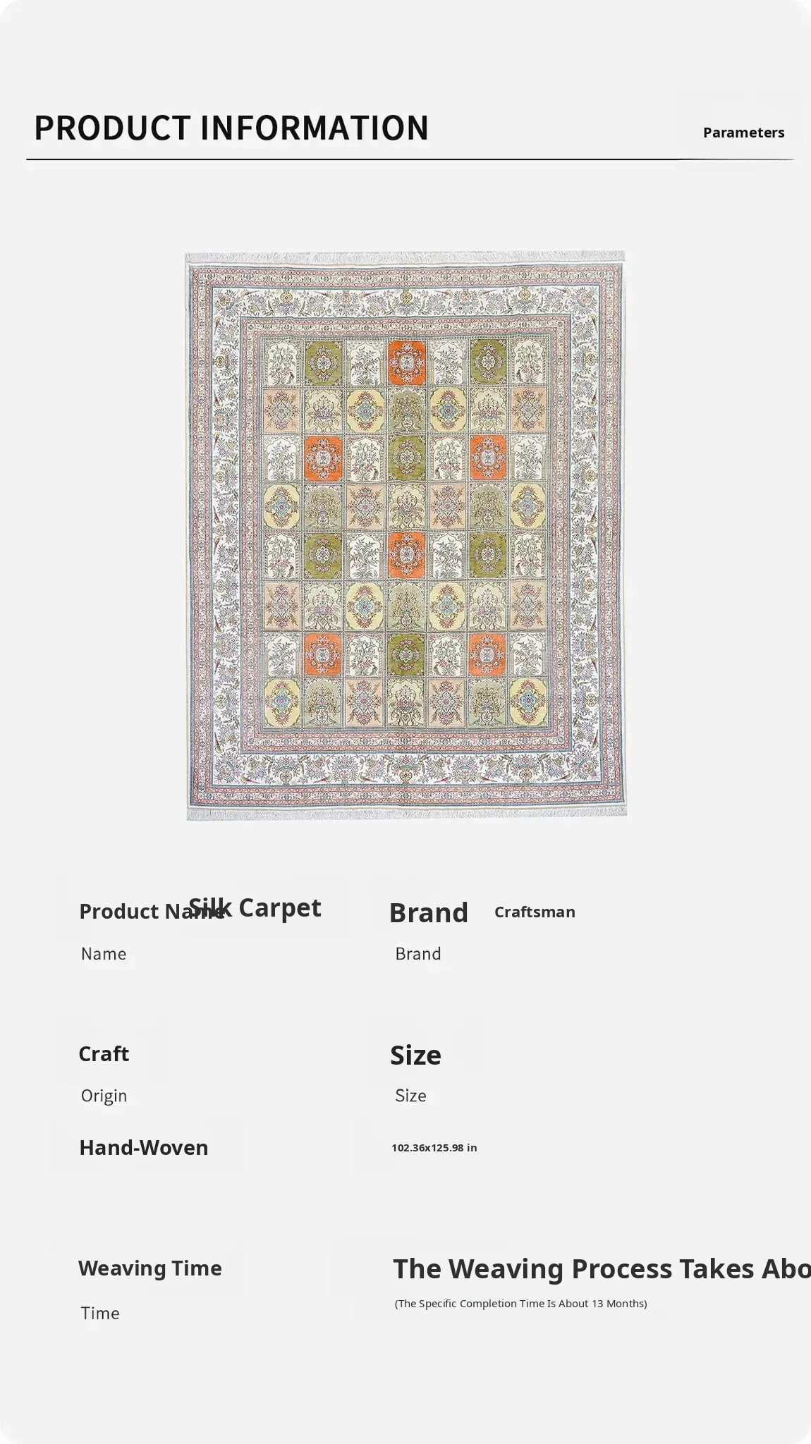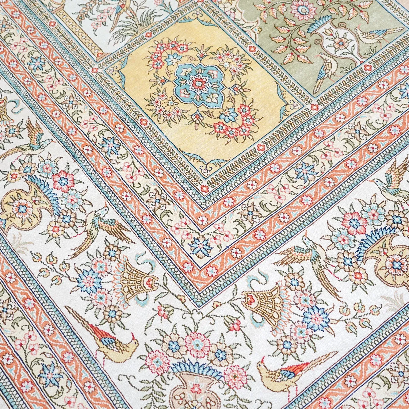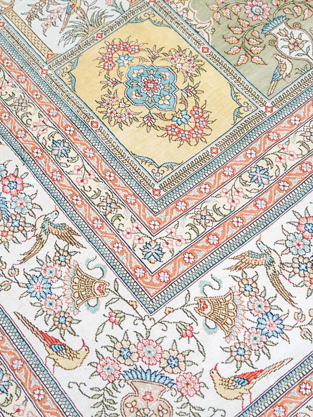 Handcrafted Genuine Silk Carpet - Versatile Garden Design for Living Room, Imported Turkish Carpet, 260x320cm - Elevate Your Home Décor with Luxurious Elegance!