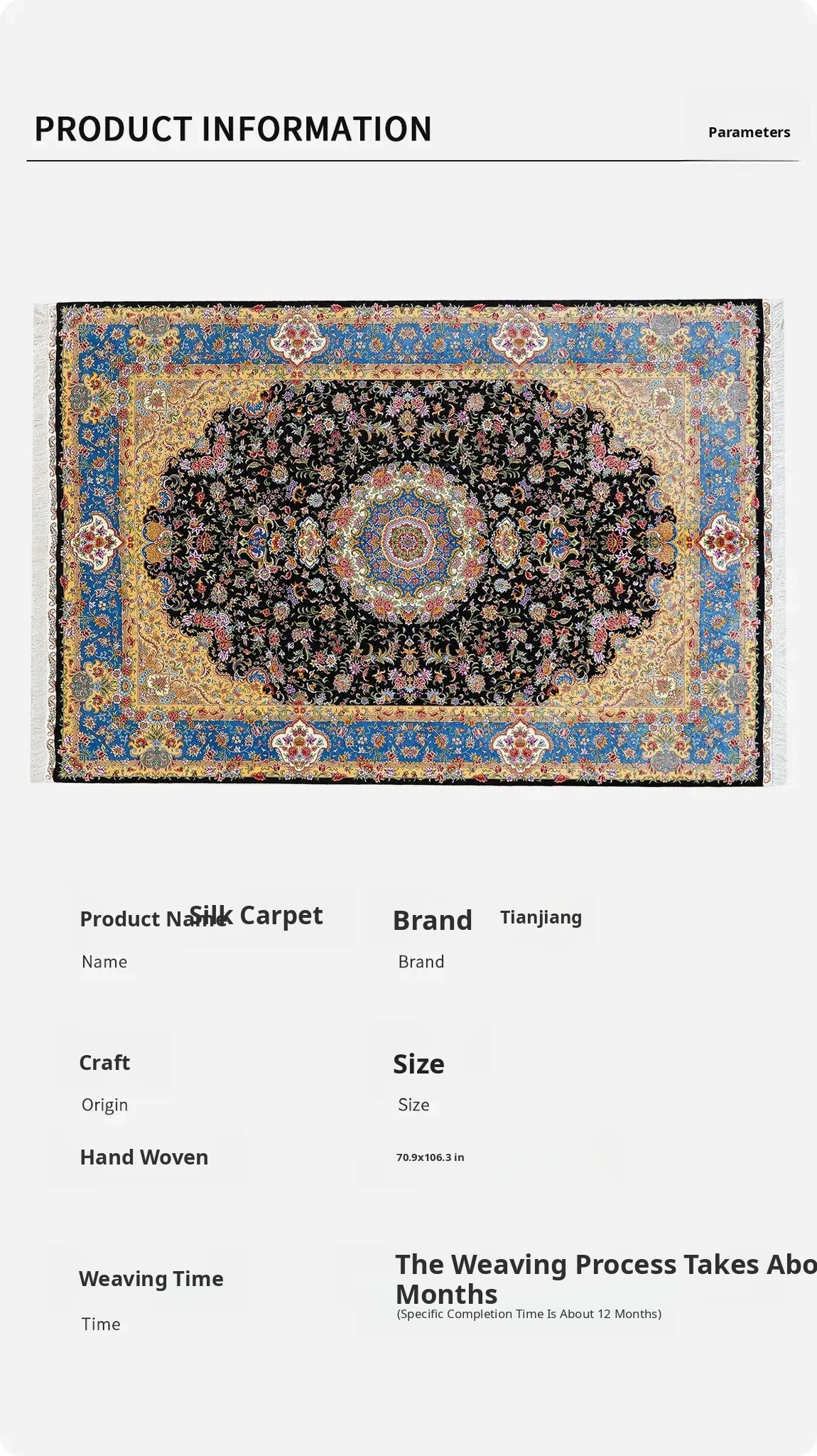 Handcrafted Genuine Silk Persian Carpet - European & American Style Area Rug for Living Room & Bedroom, Perfect for Sofa & Bedside, Size: 180x270cm