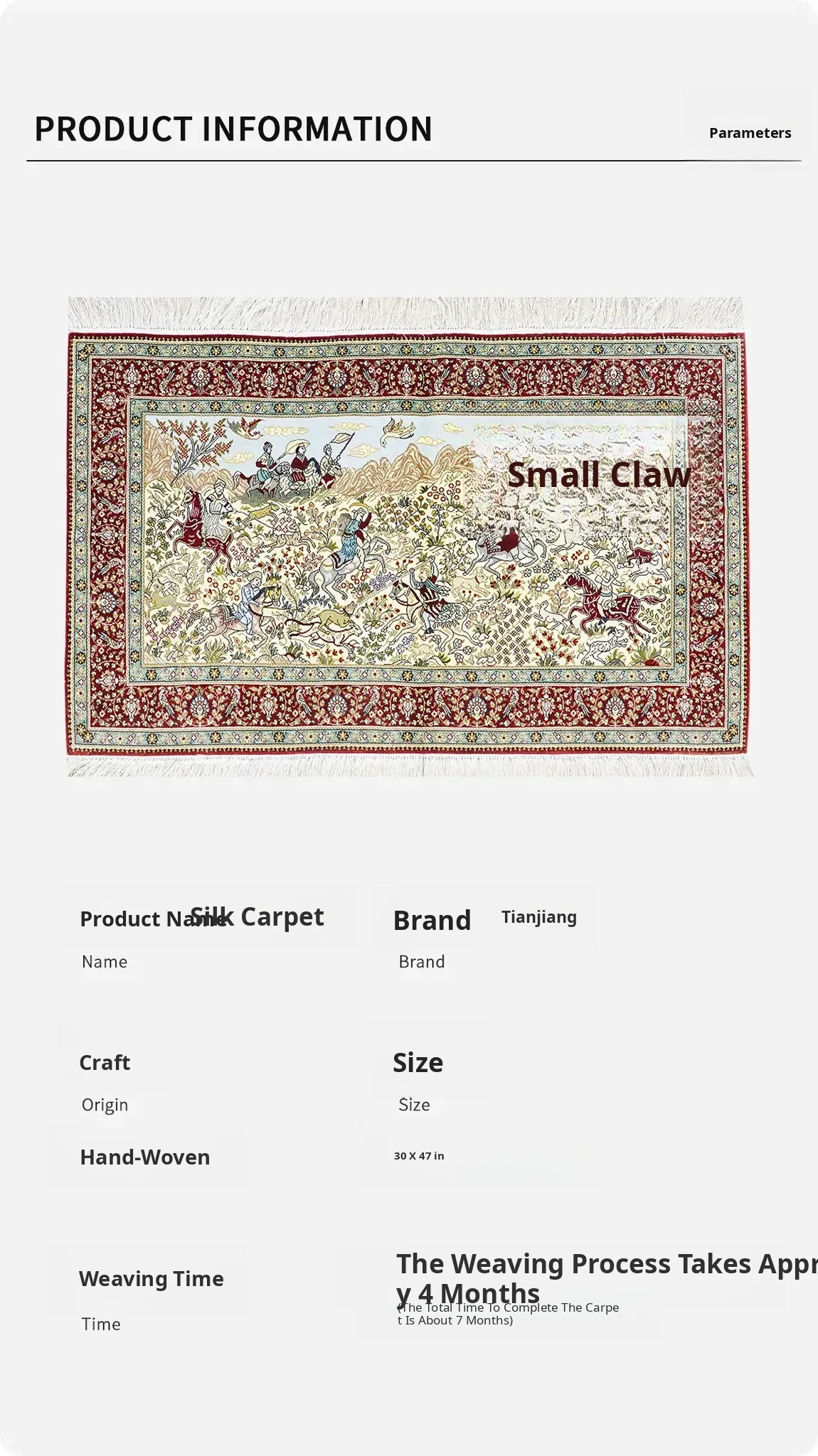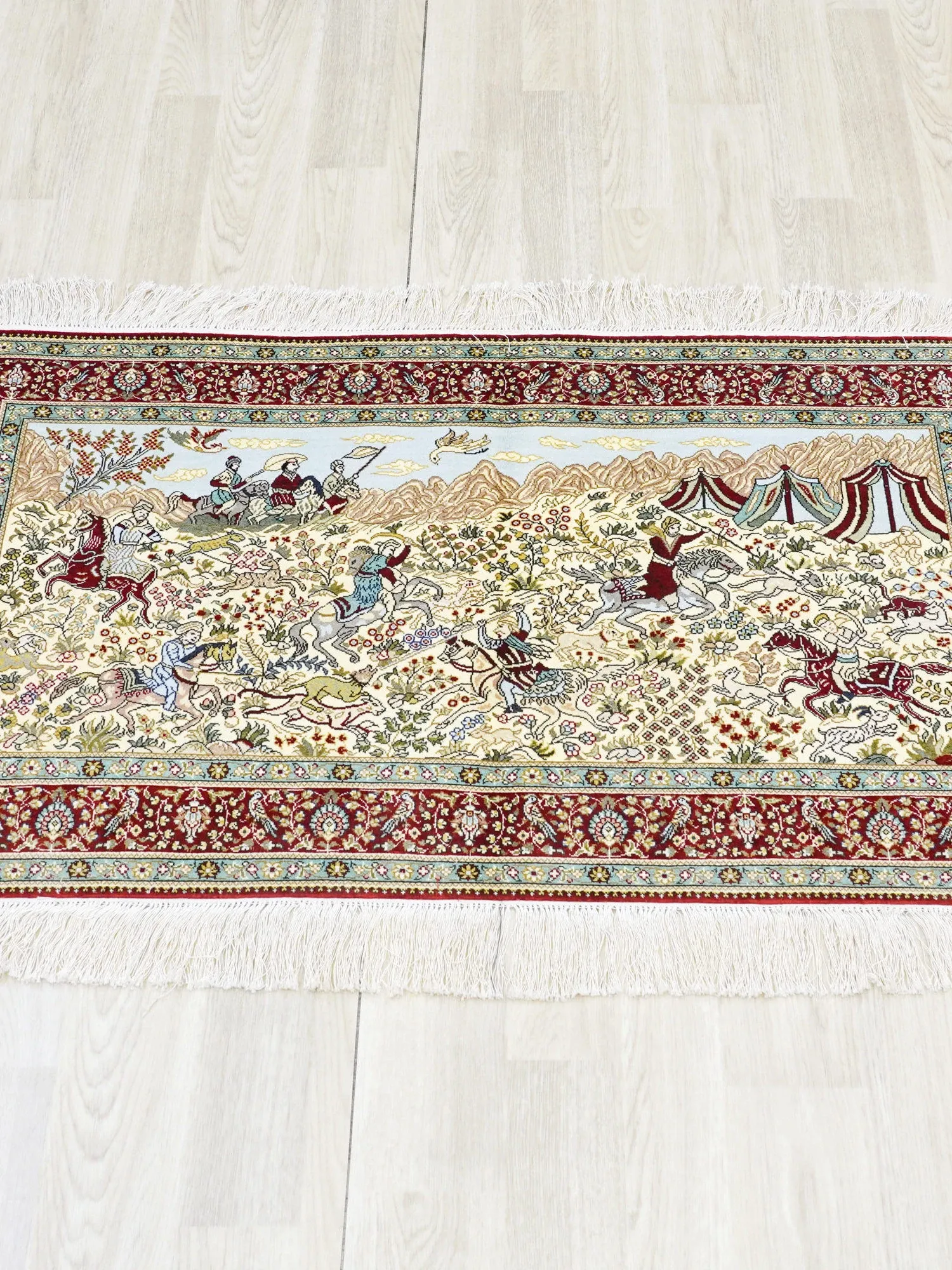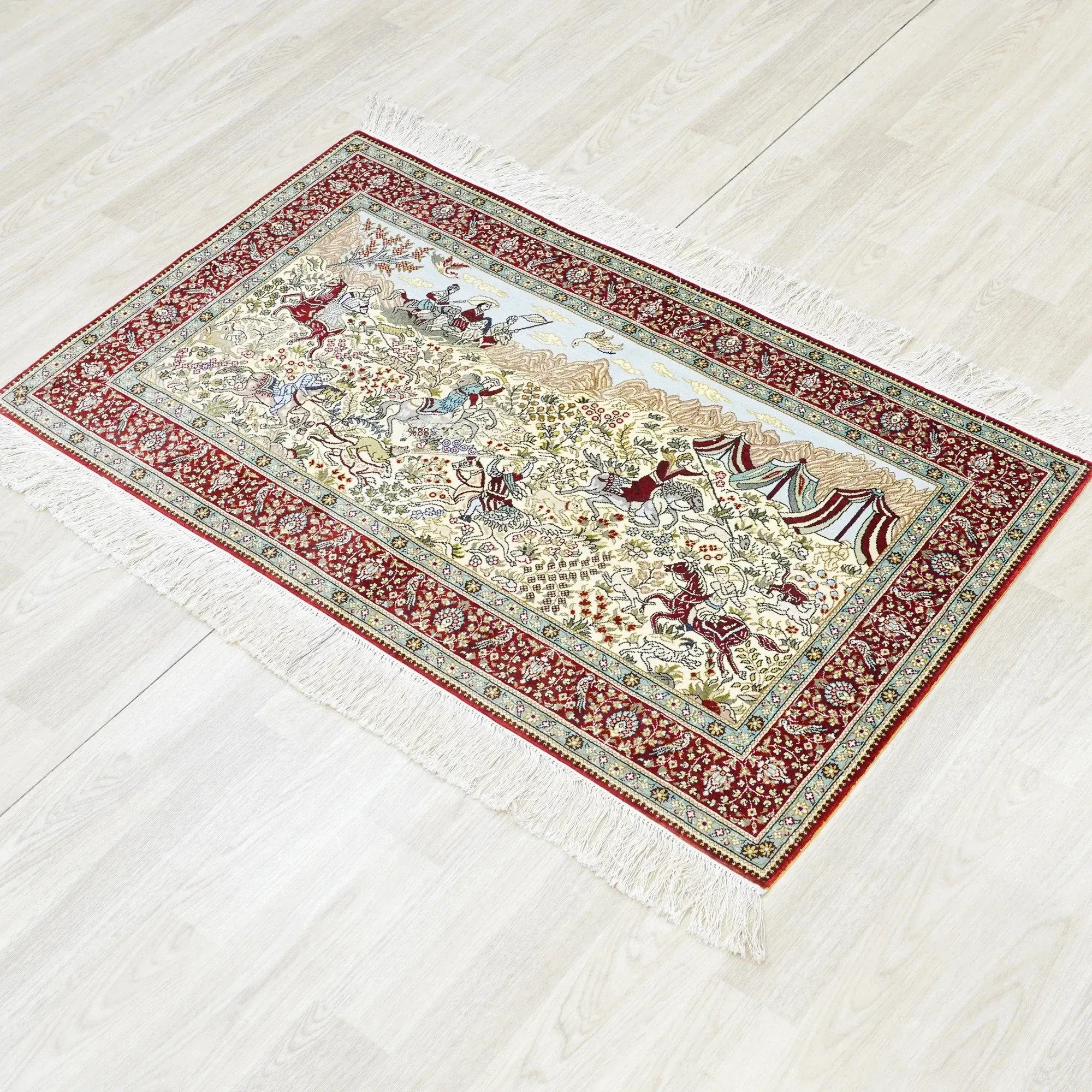 Handcrafted Genuine Silk Persian Carpet - Small Size Wall Tapestry, Exquisite Turkish Design, Perfect for Home Décor - 76x120cm