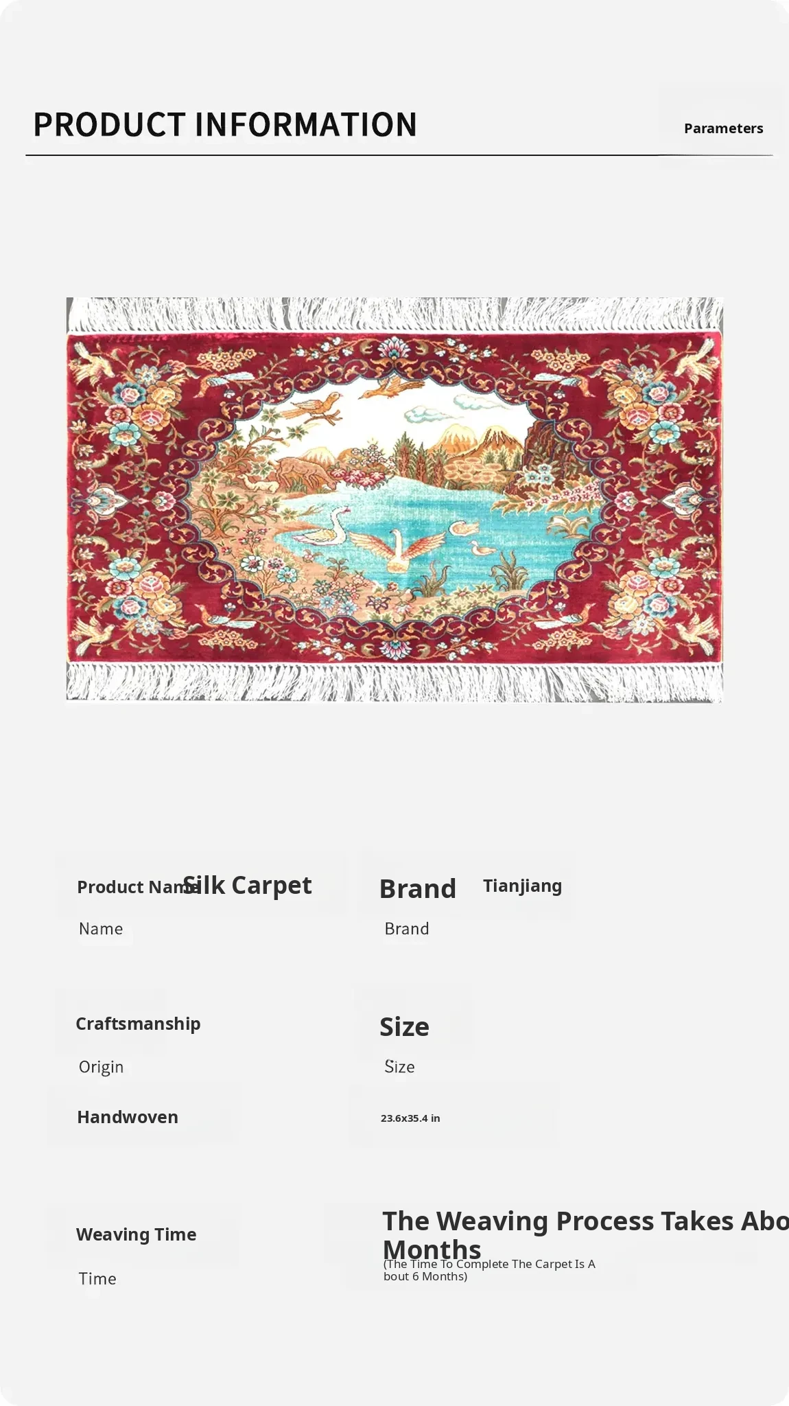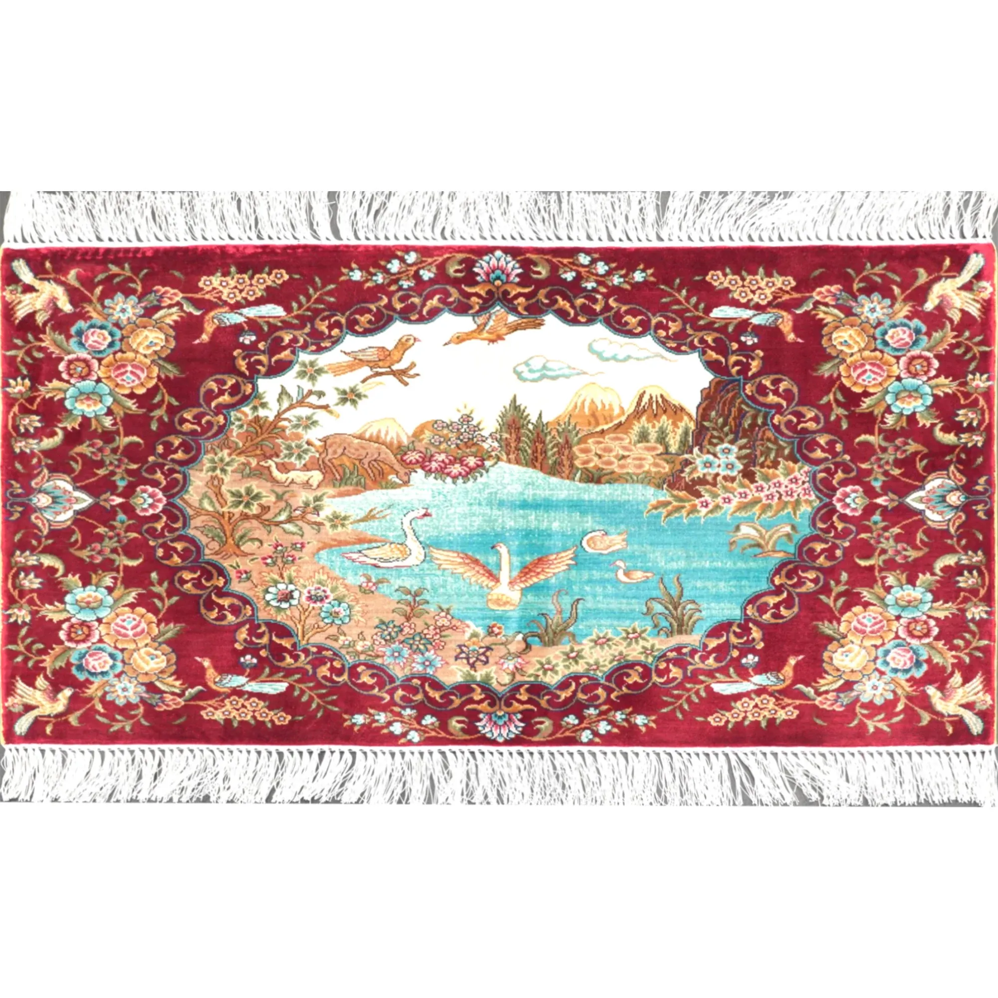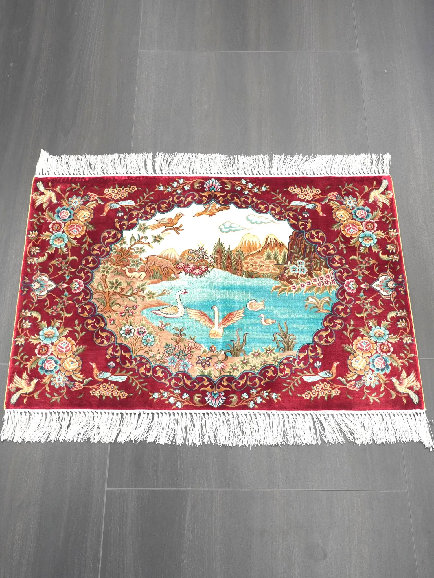 Handcrafted Genuine Silk Rug - Persian Style Rectangle Carpet for Villa Living Room and Bedroom, Perfect for Bedside Use (60x90cm)