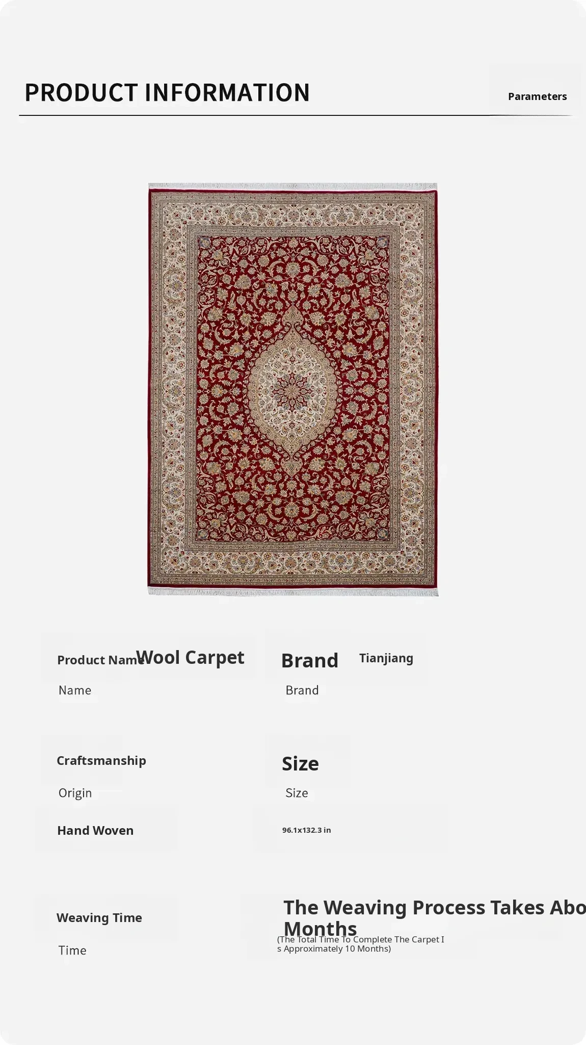 Handcrafted Imported Wool Carpet - Luxury Area Rug for Living Room and Bedroom, Perfect for High-End Villas, Size: 244x335cm