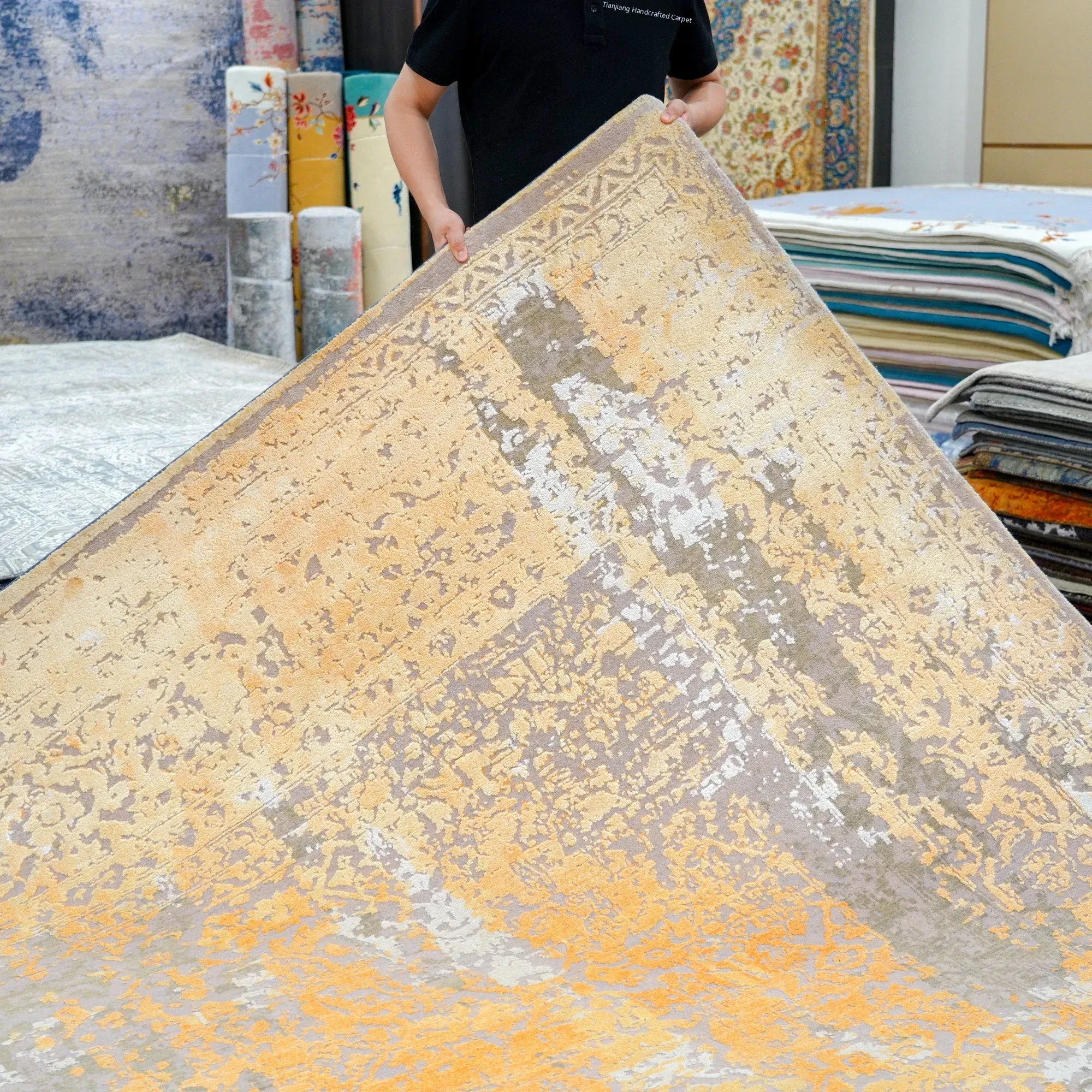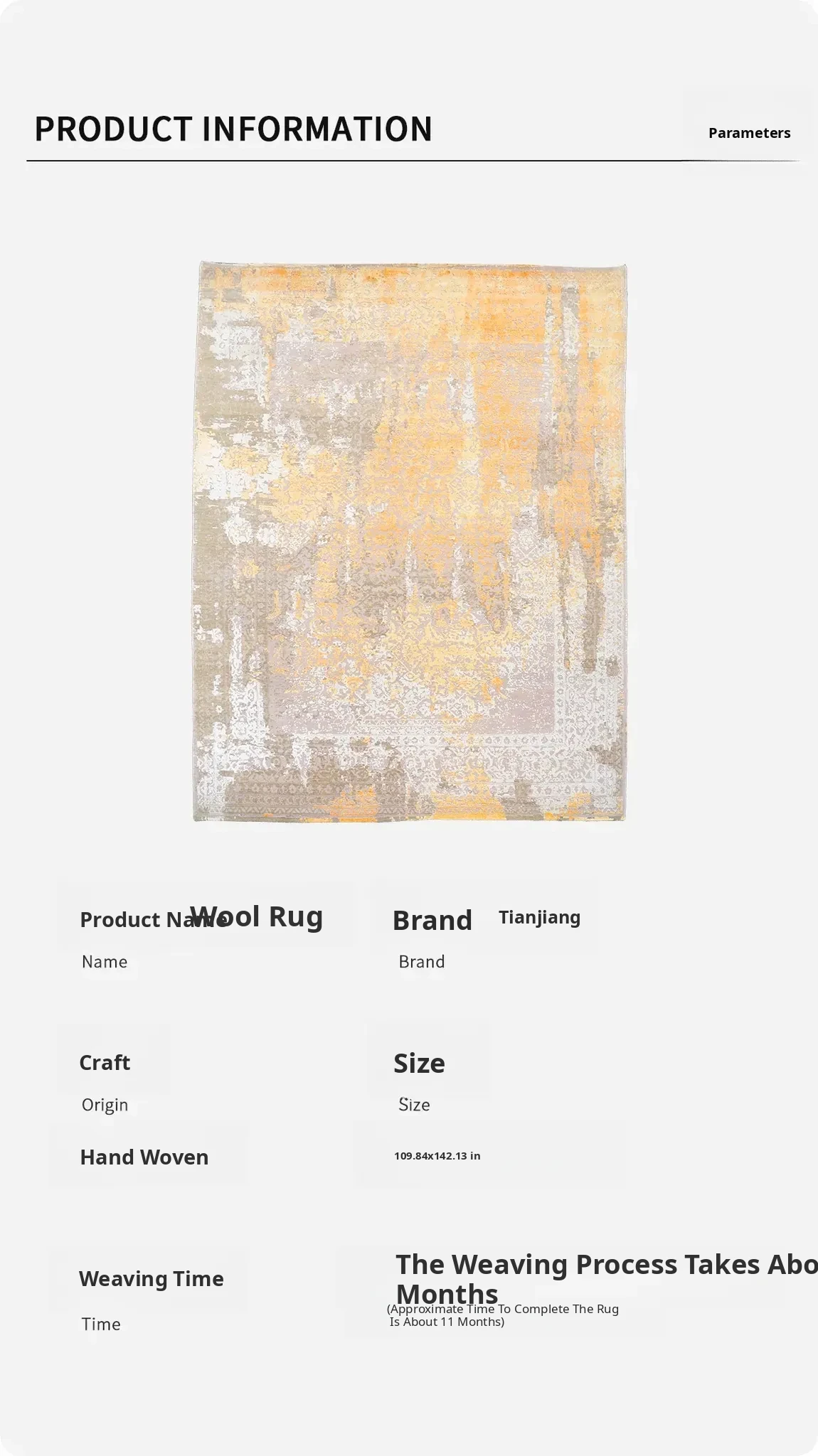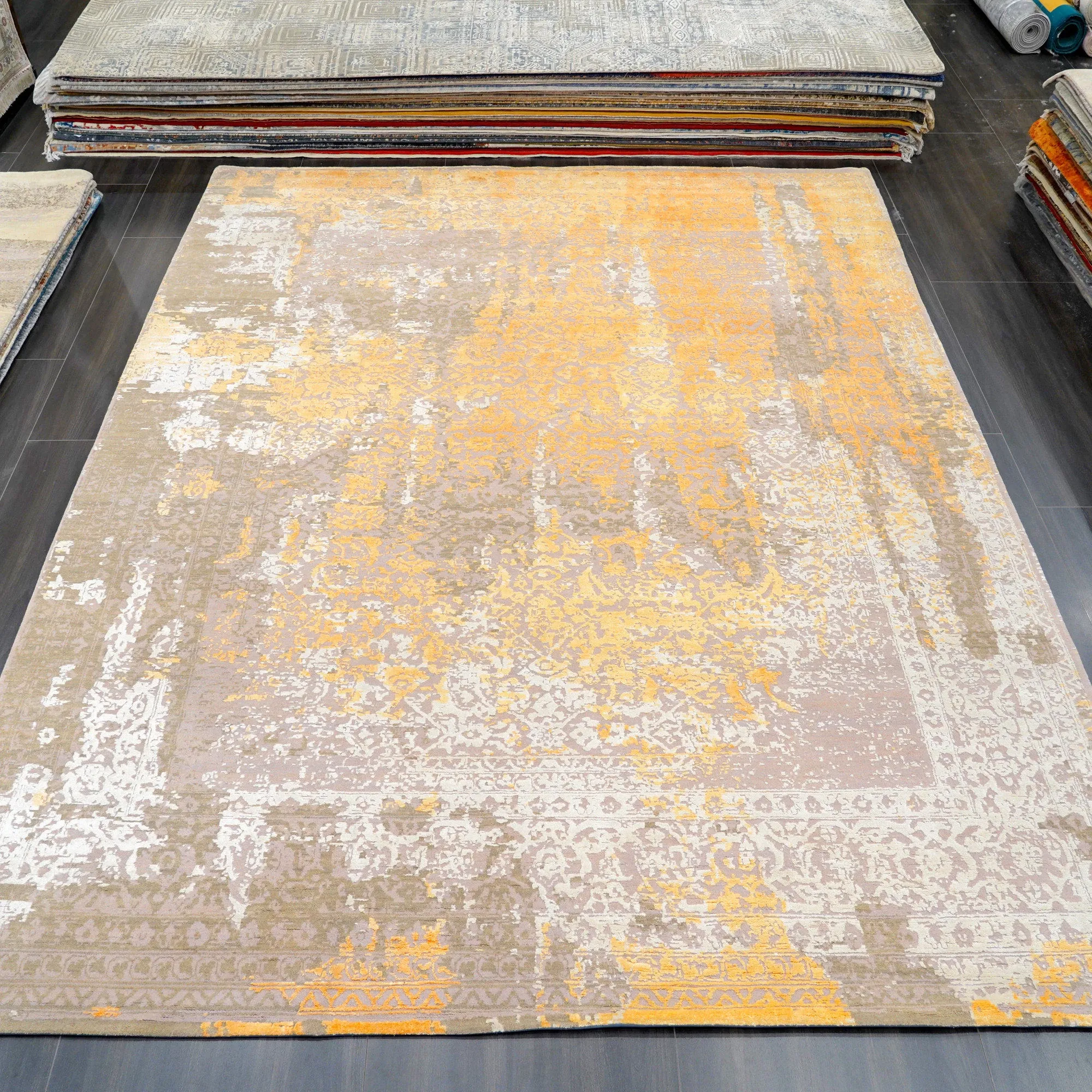 Handcrafted Modern Abstract Wool Carpet - Luxurious Minimalist Area Rug for Villas and Bedrooms, Size 279x361cm