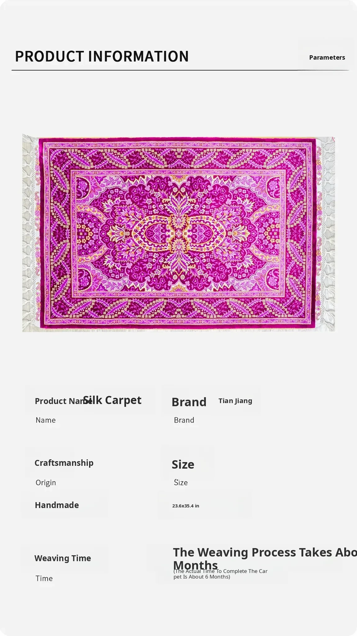 Handcrafted Persian Silk Carpet - Exquisite Knotting, 60x90cm - Perfect for Villas and Home Décor