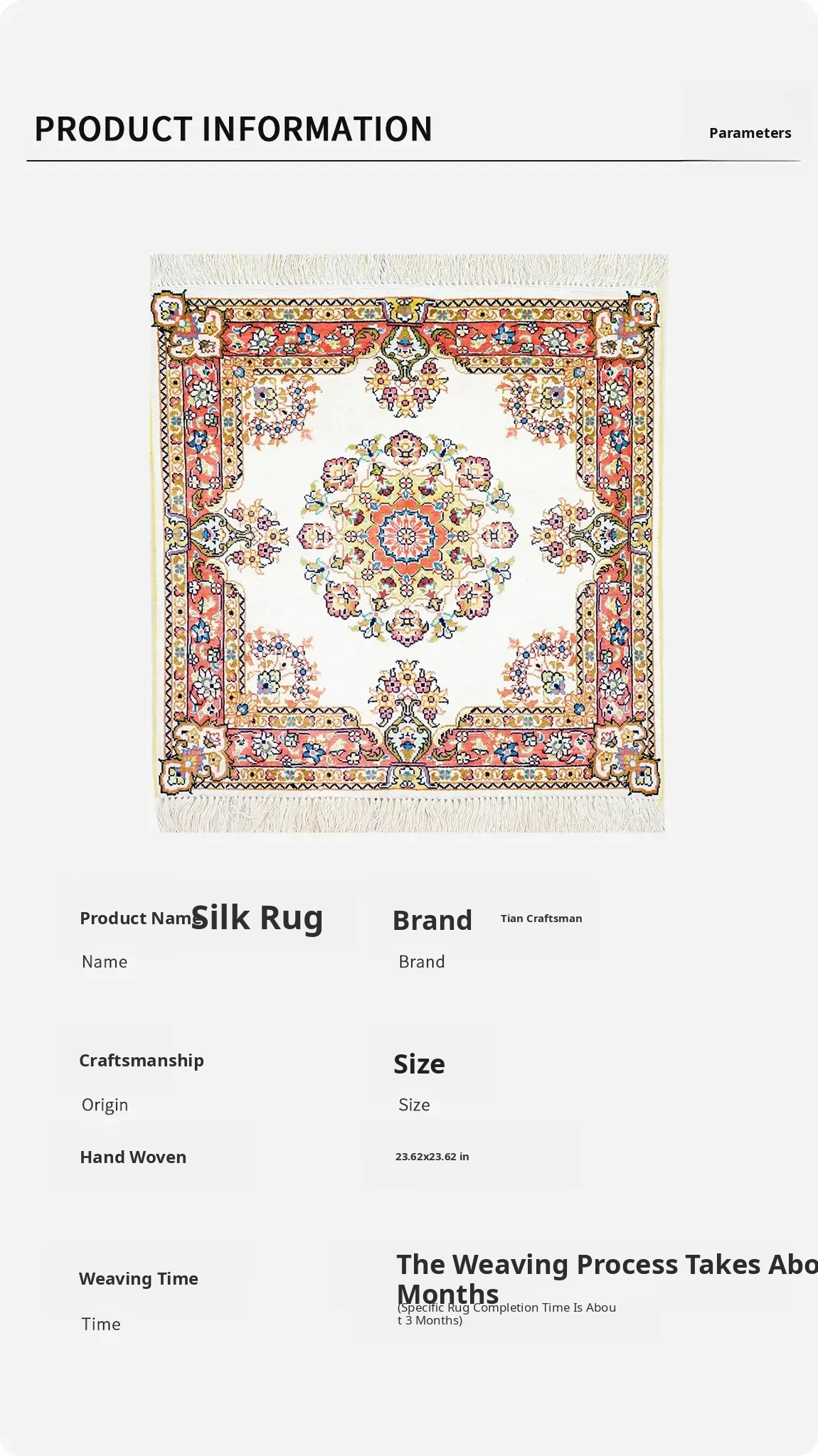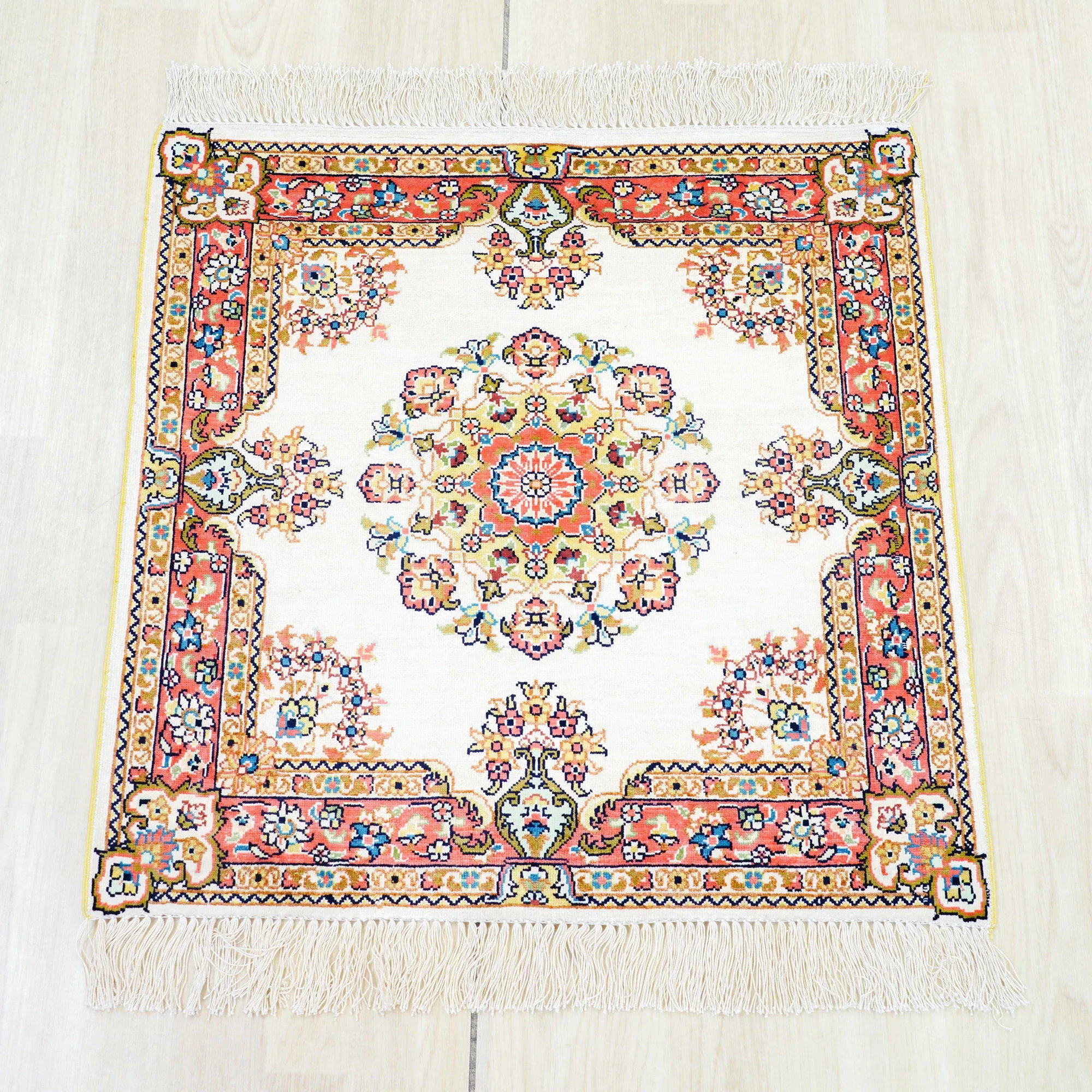 Handcrafted Persian Silk Carpet for Study and Closet - Luxurious 60x60cm Villa Home Decor Area Rug