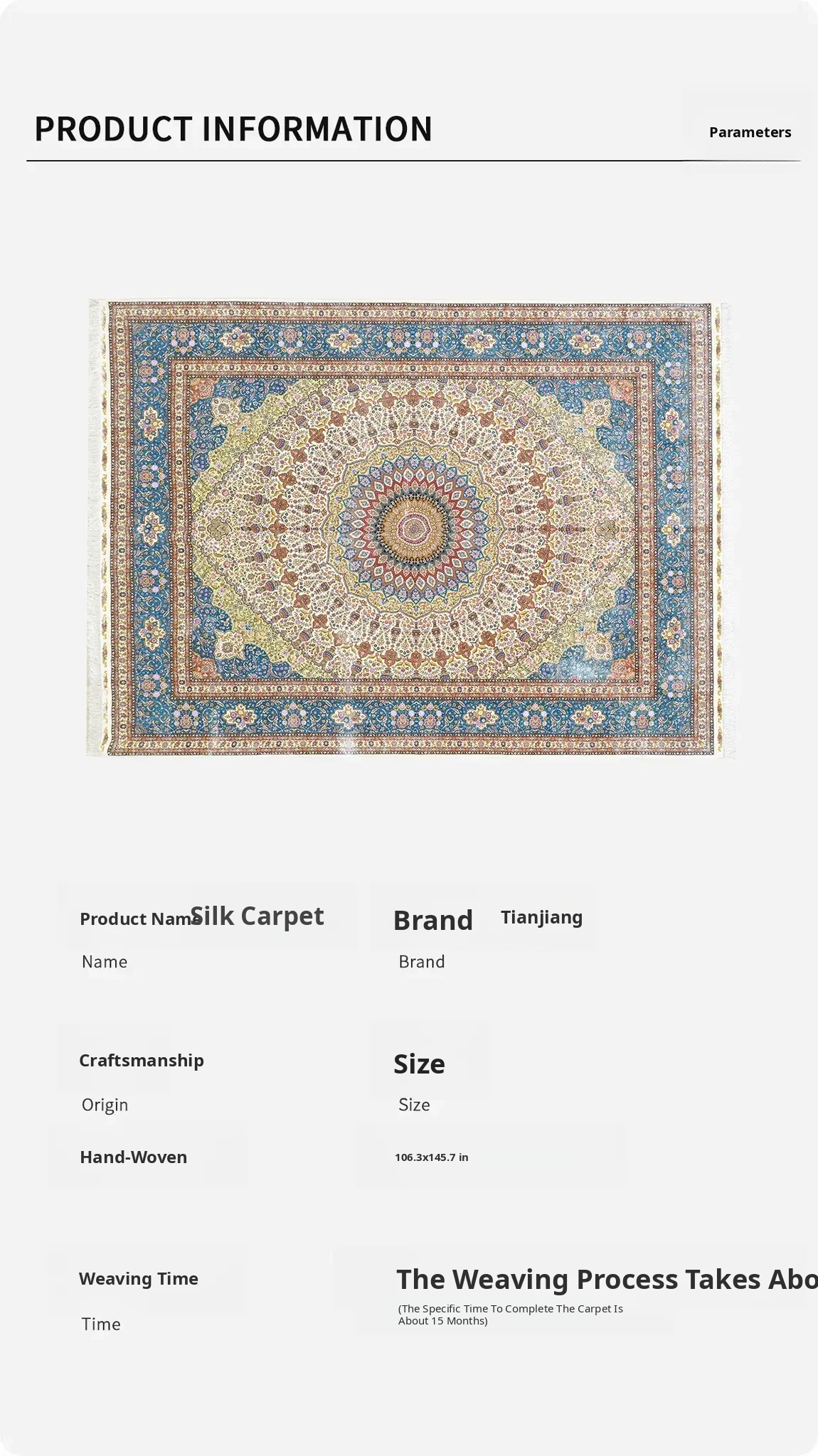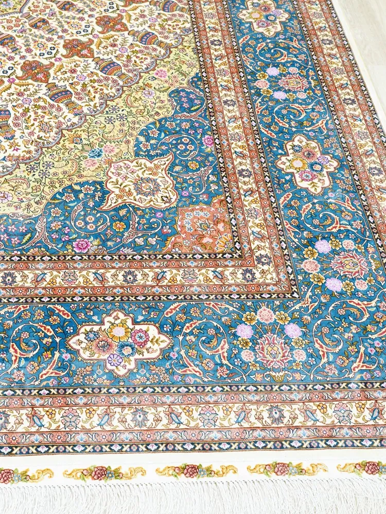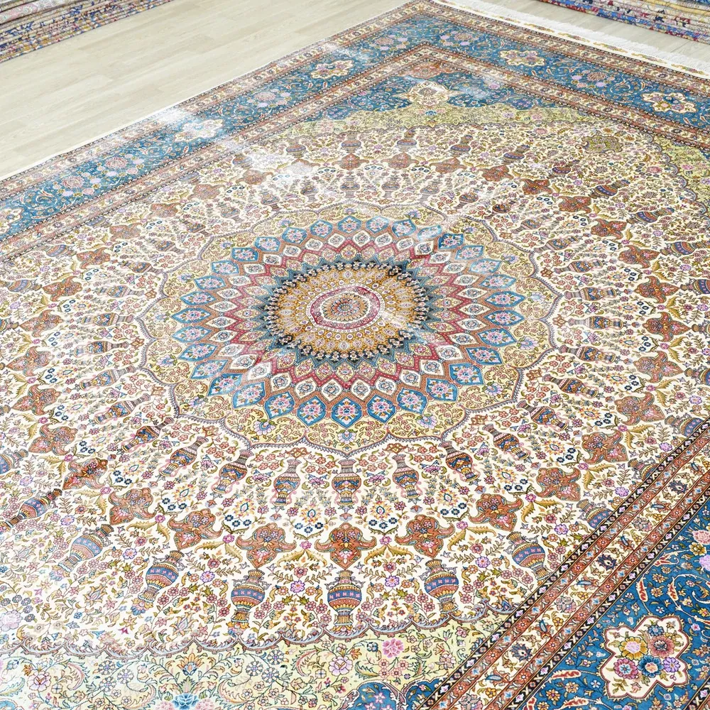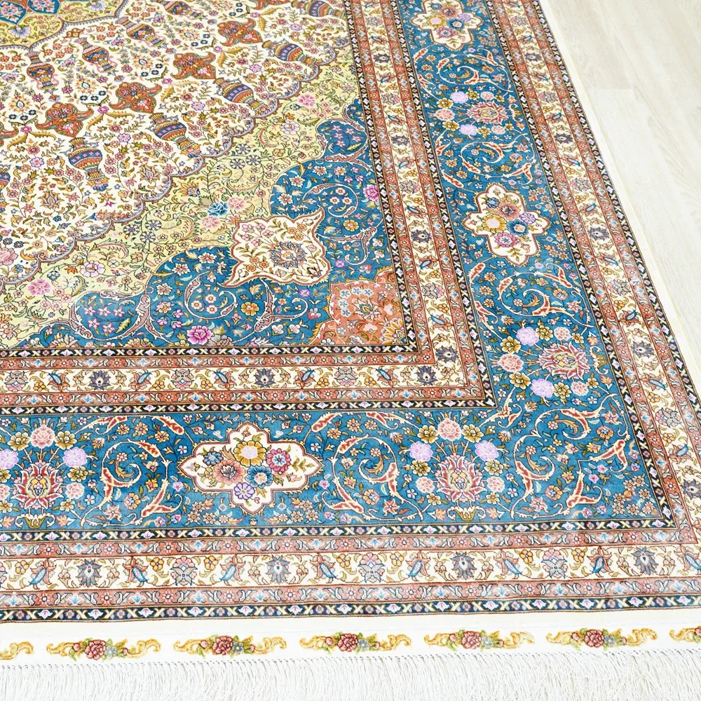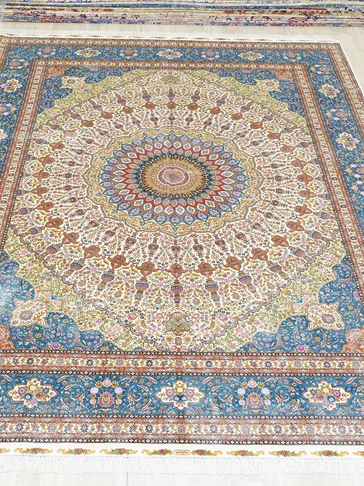 Handcrafted Persian Silk Carpet - Luxurious 270x370cm Area Rug for Villa Living Room and Bedroom, Perfect for Bedside Décor