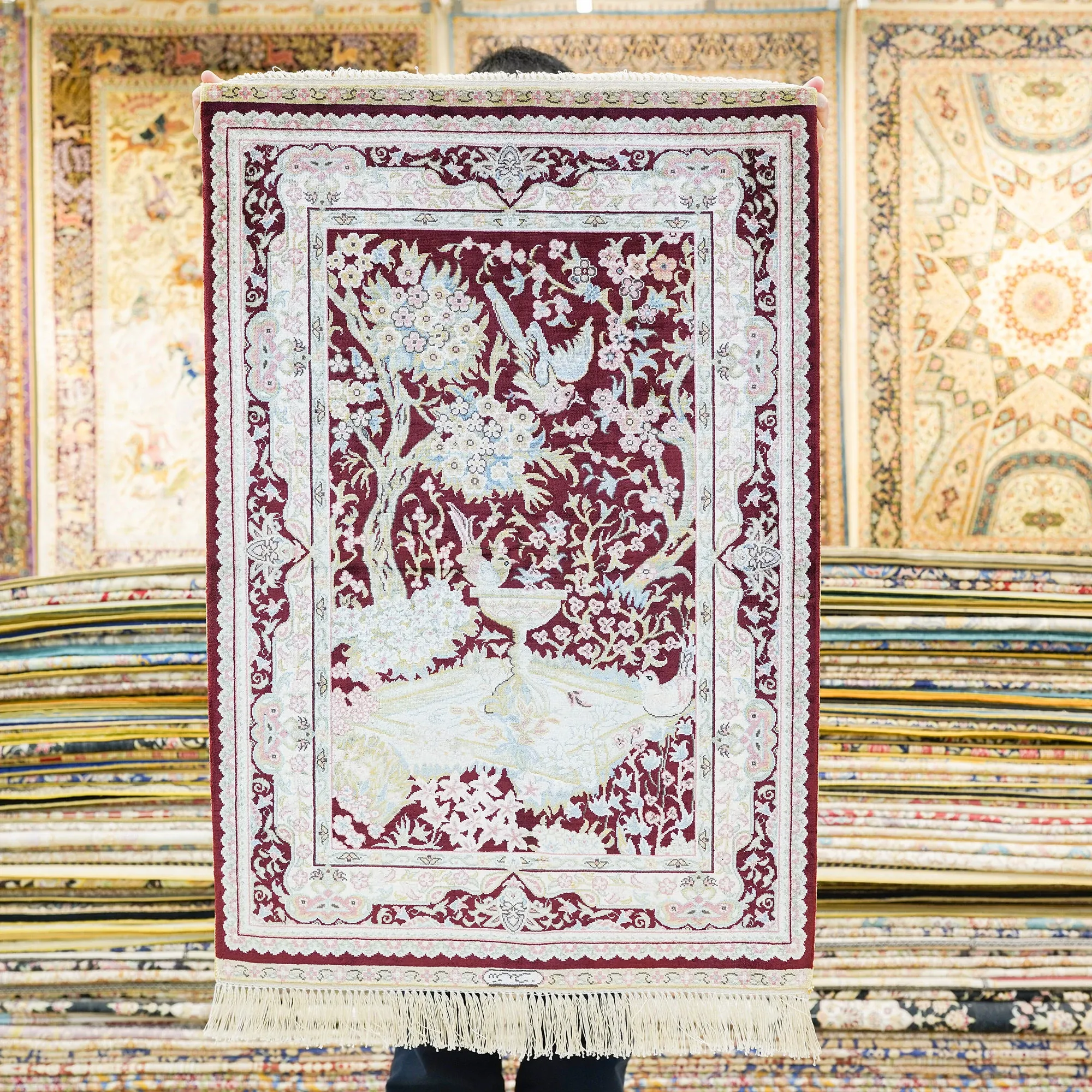 Handcrafted Persian Silk Carpet - Luxurious Entryway Rug for Living Room & Bedroom, Size 60x90cm - Elevate Your Home Décor with Timeless Elegance
