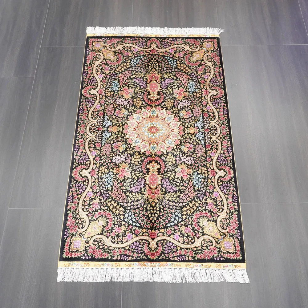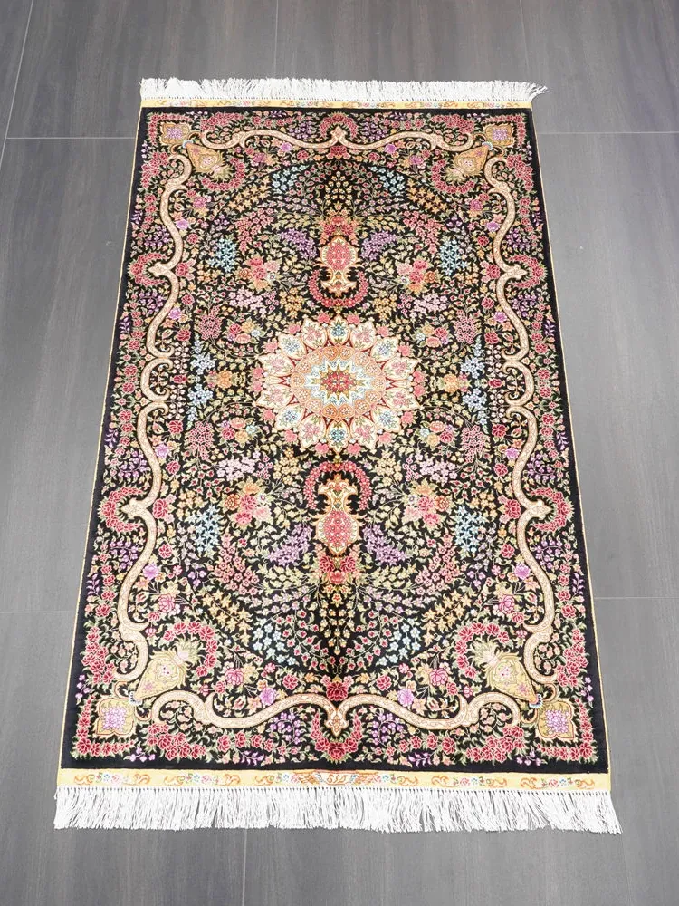 Handcrafted Persian Silk Carpet - Luxurious Villa Bedroom Area Rug & Entrance Mat, 90x150cm - Elevate Your Home Décor with Timeless Elegance!
