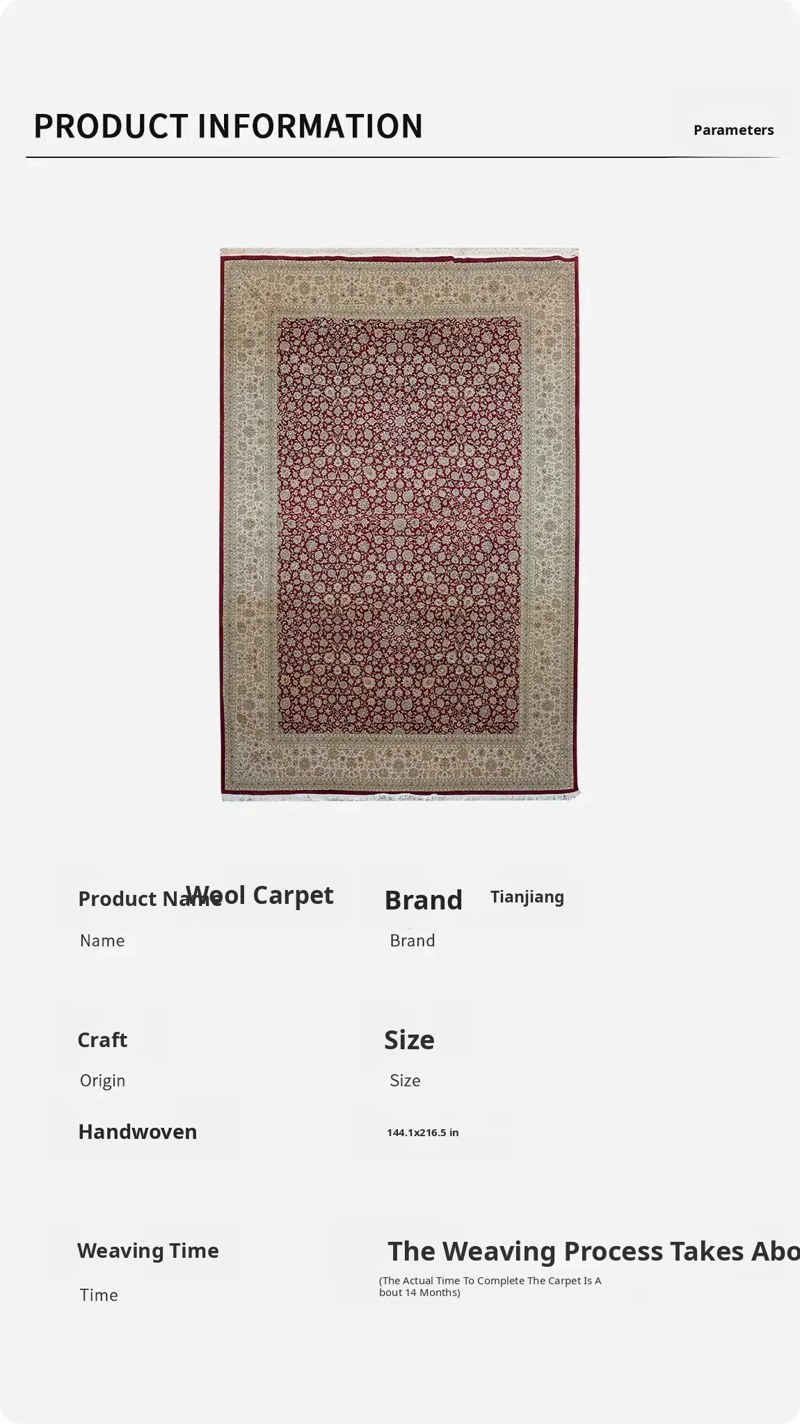 Handcrafted Persian Wool Carpet for Home - Extra Large 366x549cm Rug for European and American Living Rooms