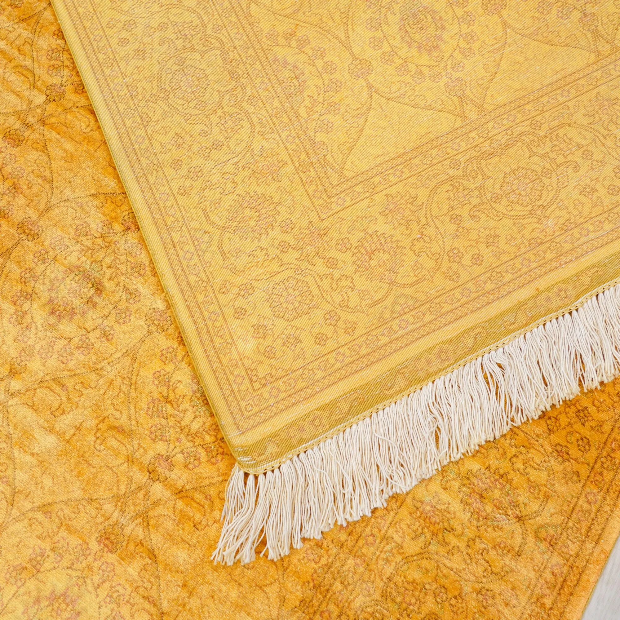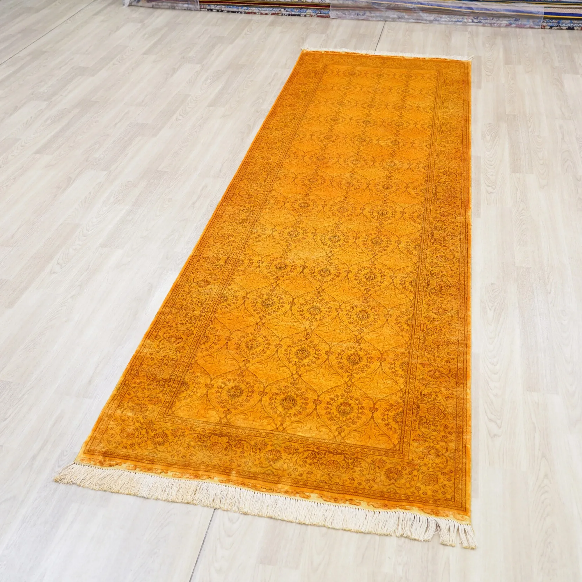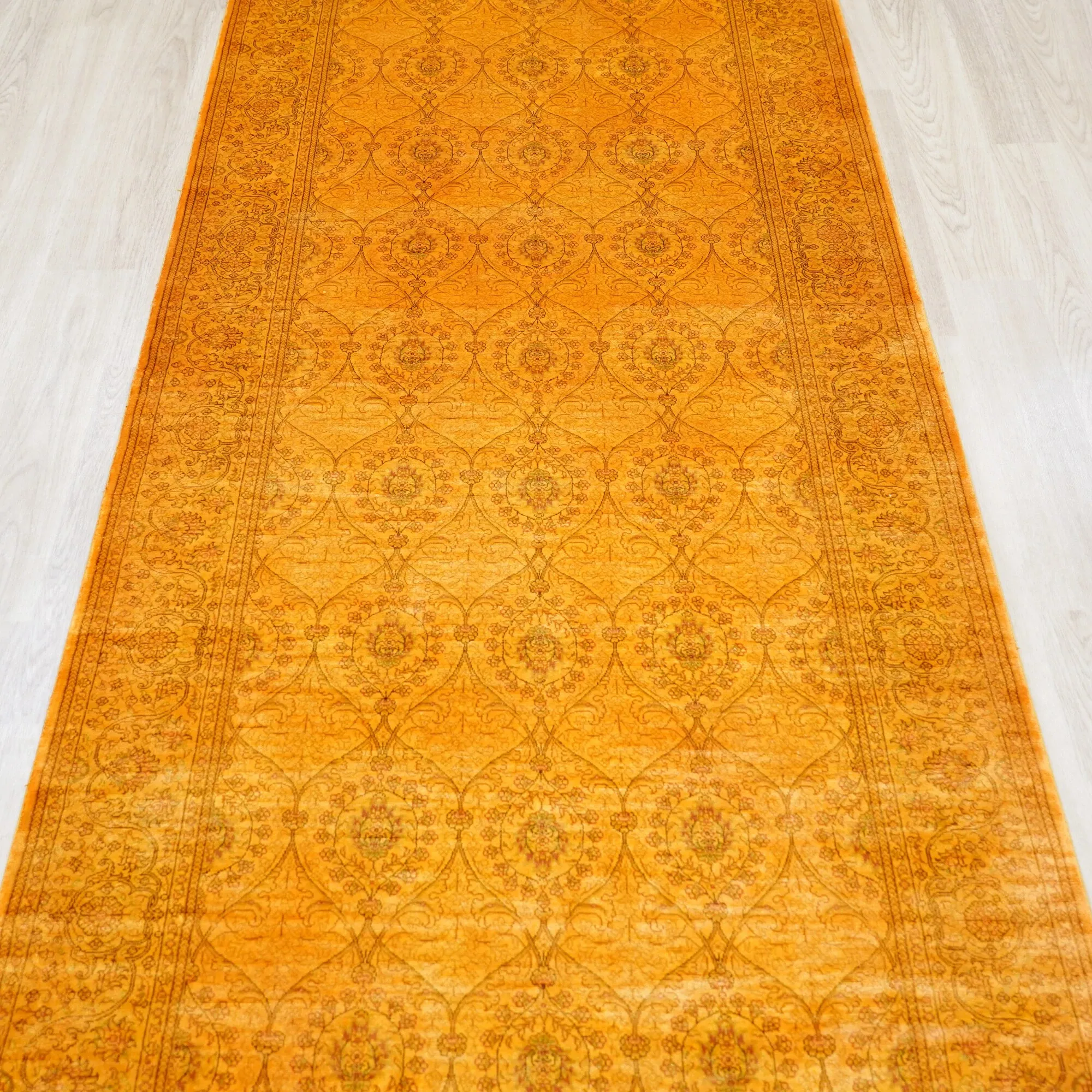 Handcrafted Persian-Style Yellow Silk Carpet - Eco-Friendly Washable Rug for Villas and Large Homes, 76x305cm