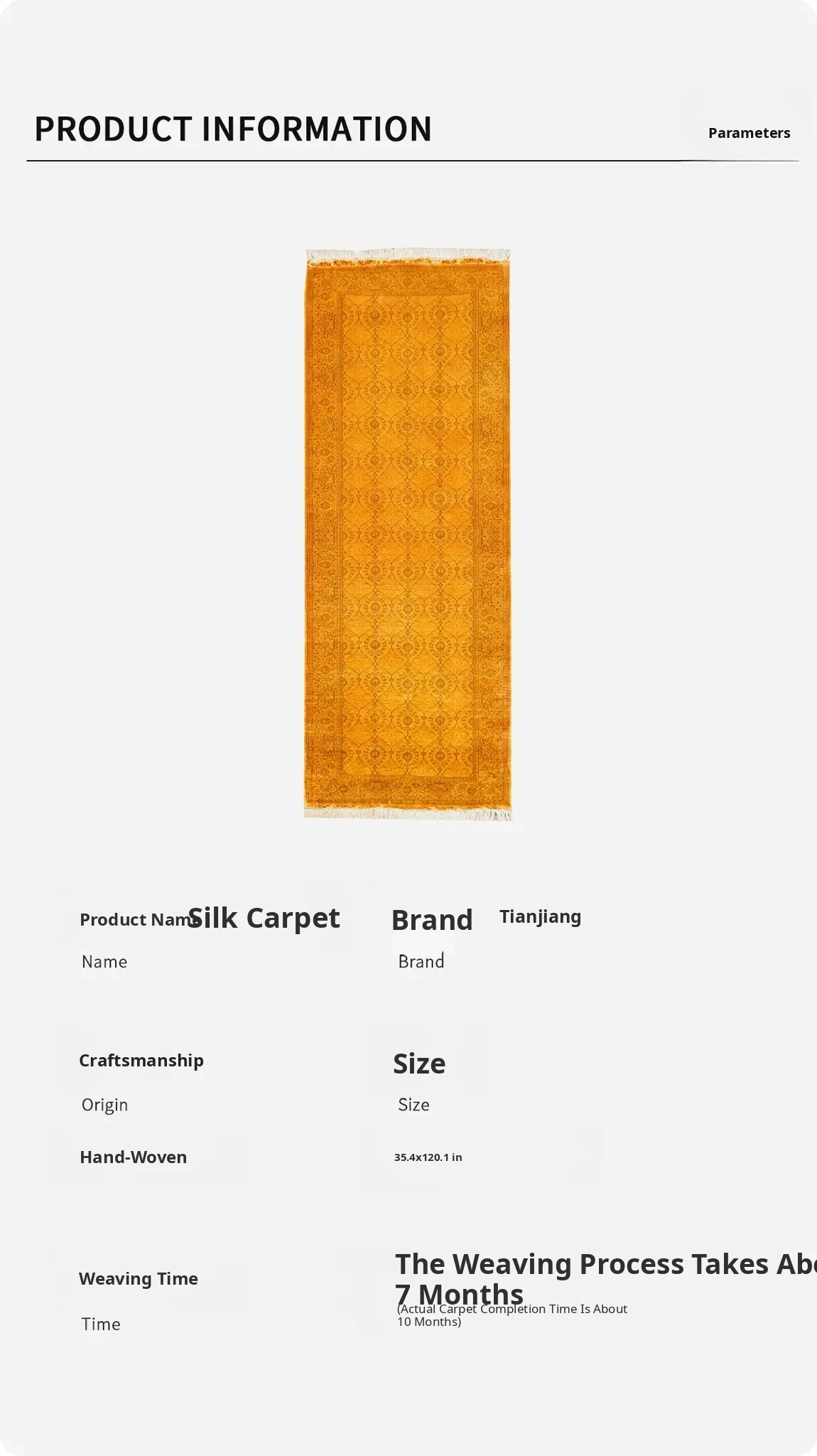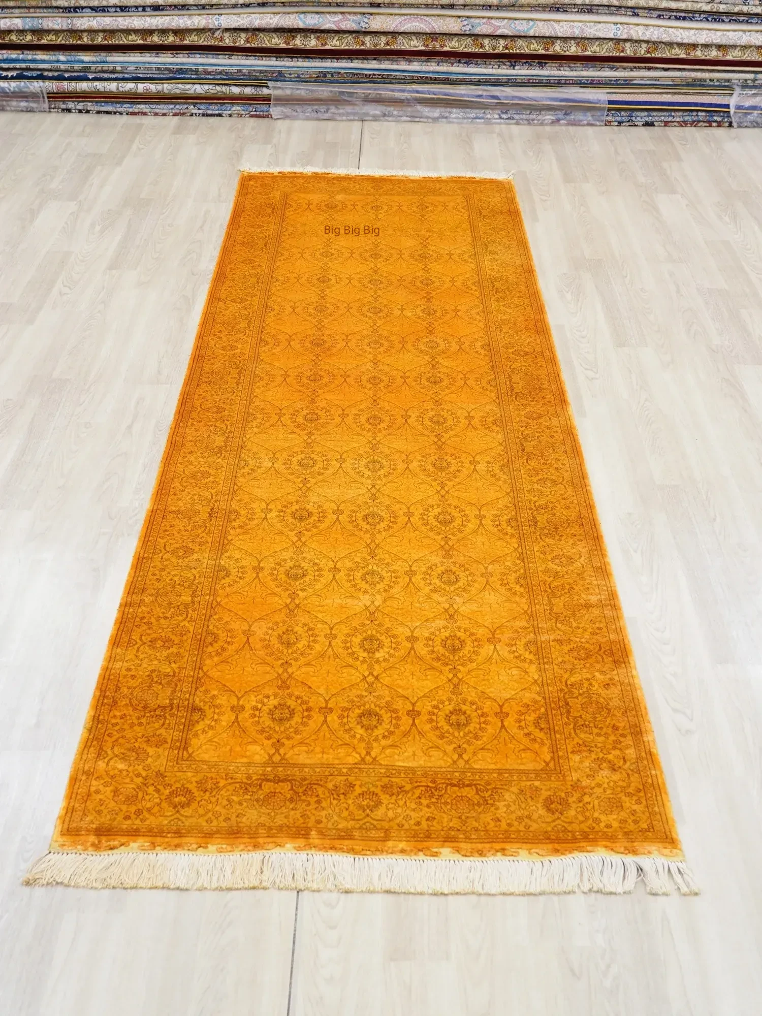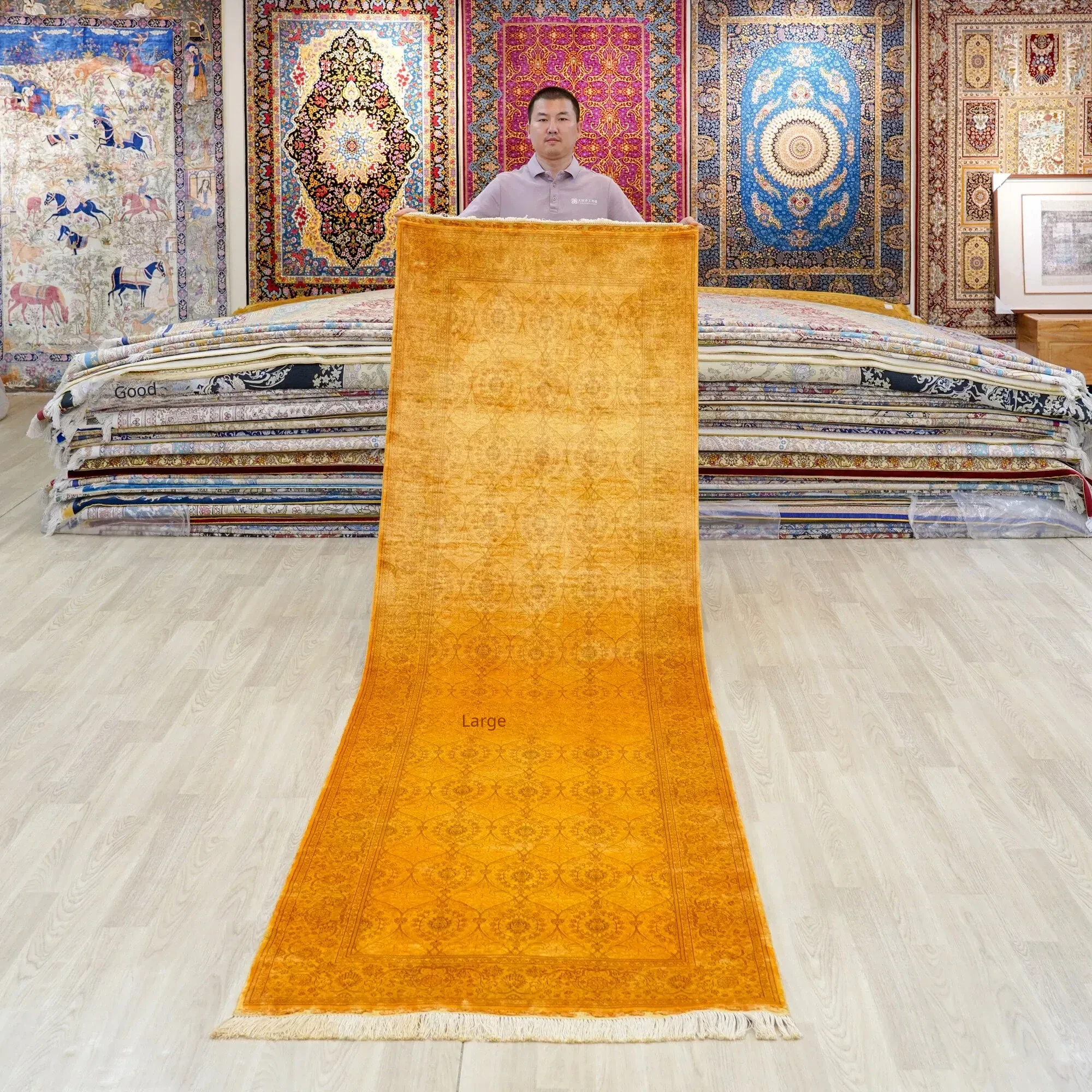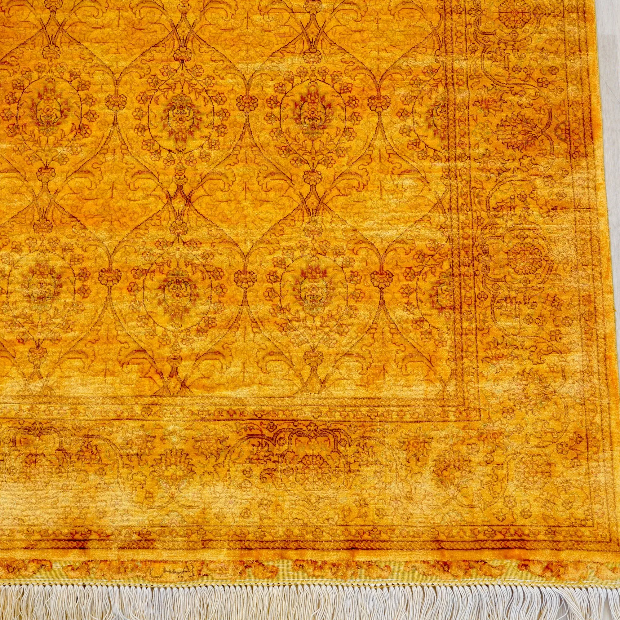 Handcrafted Persian-Style Yellow Silk Carpet - Eco-Friendly Washable Rug for Villas and Large Homes, 76x305cm