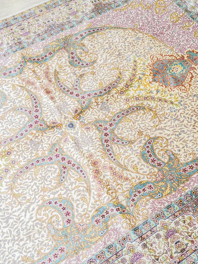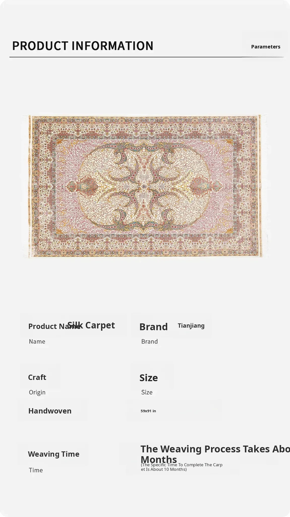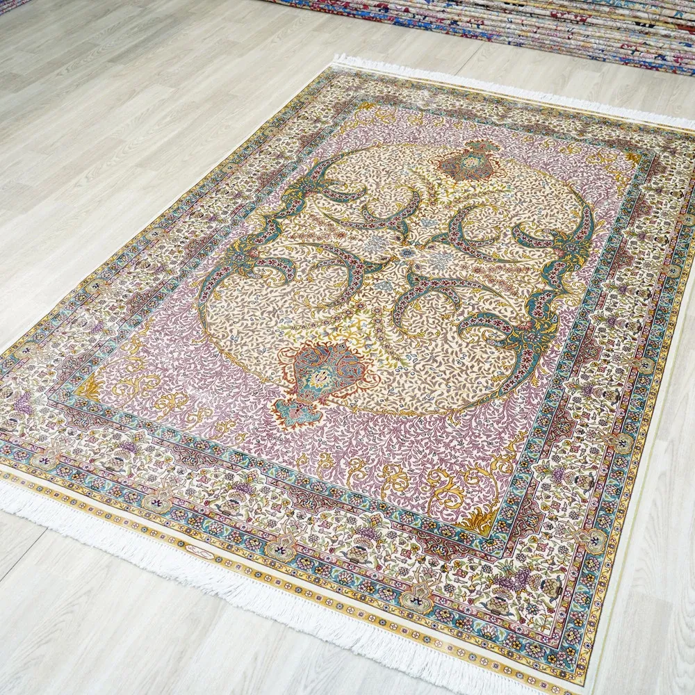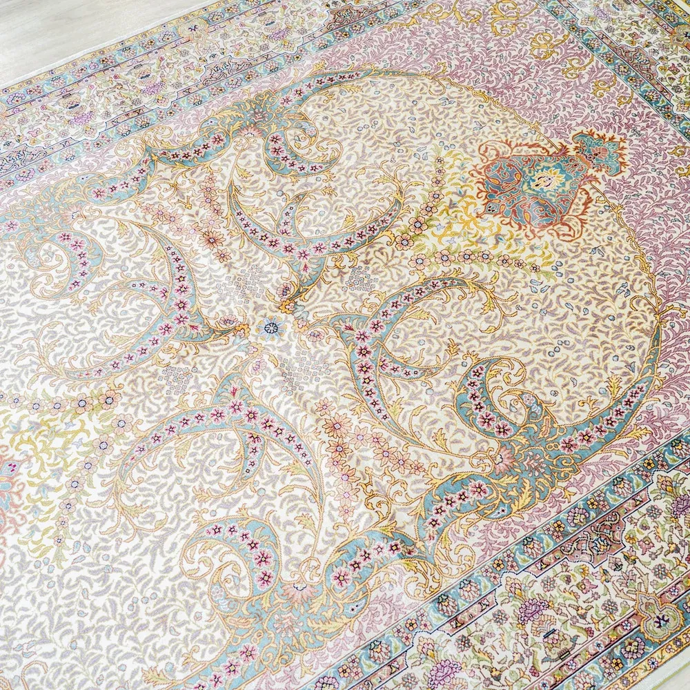 Handcrafted Pure Silk Carpet - American & European Style for Bedroom and Study, Adhesive-Free, 150x230cm - Elevate Your Space with Luxurious Comfort and Timeless Elegance!