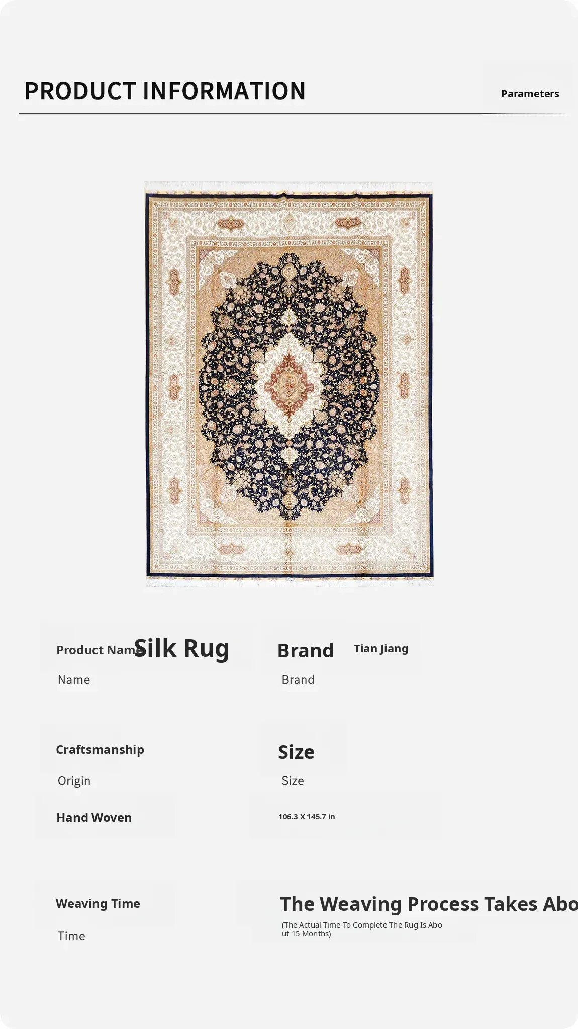 Handcrafted Pure Silk Carpet by Tianjiang - Luxurious Non-Glue Area Rug for Living Room and Bedroom, 270x370cm