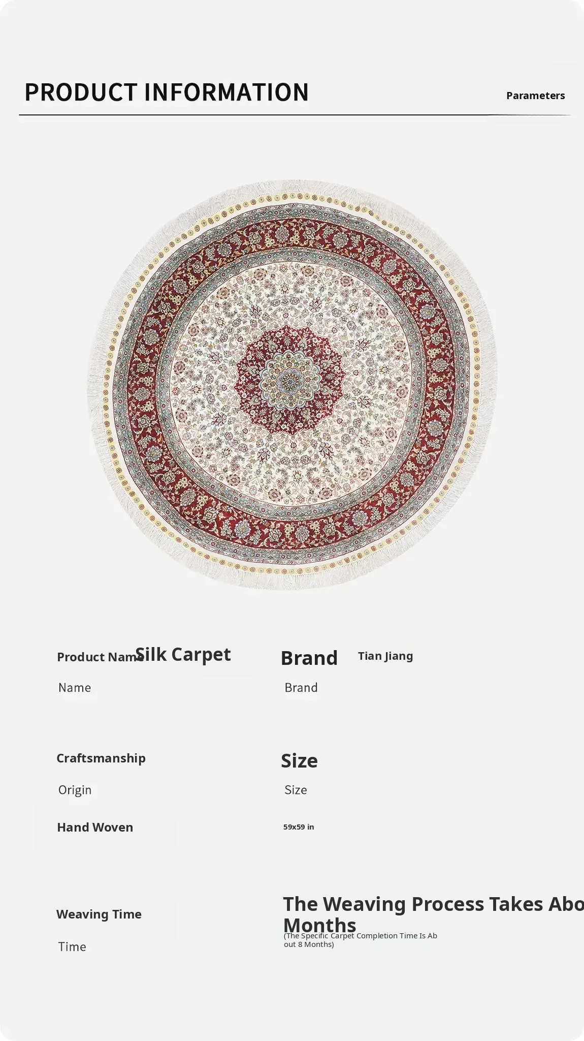 Handcrafted Pure Silk Carpet for Living Room and Study - French Style, Stain-Resistant, Home Use, 150x150cm, Exquisite Quality, Perfect for Elegant Décor