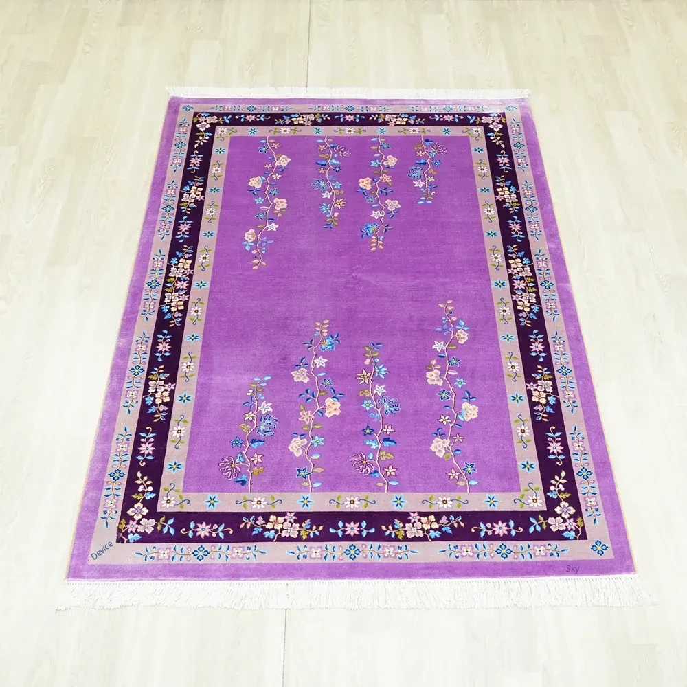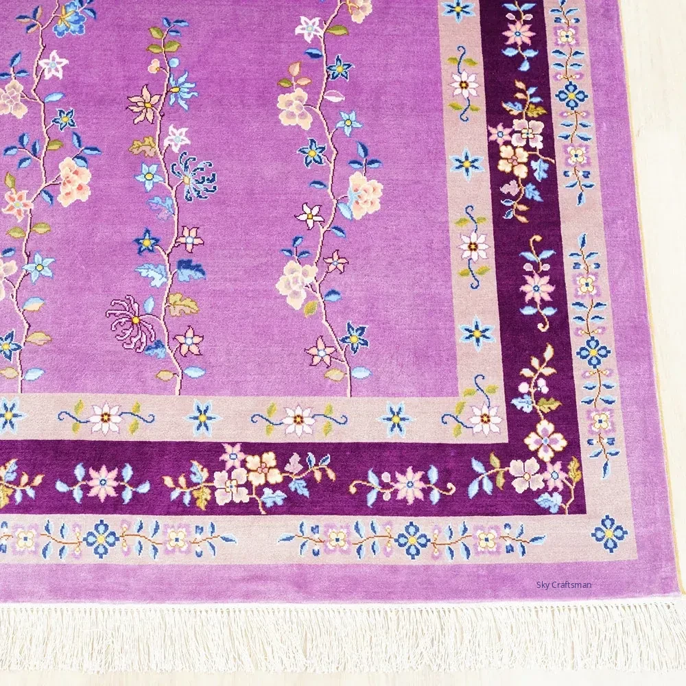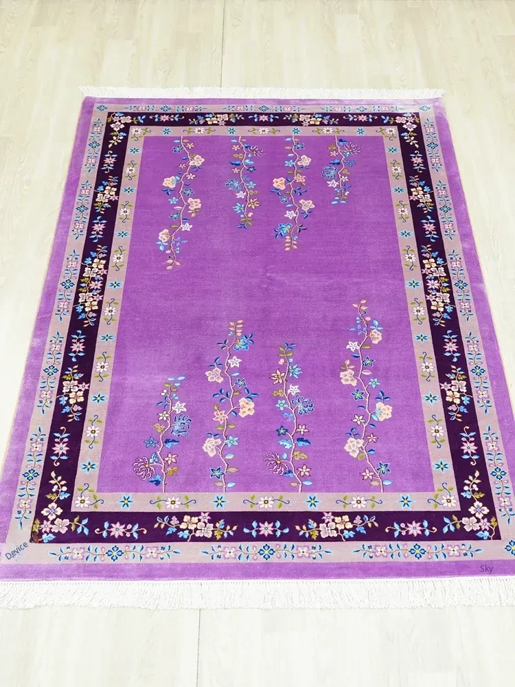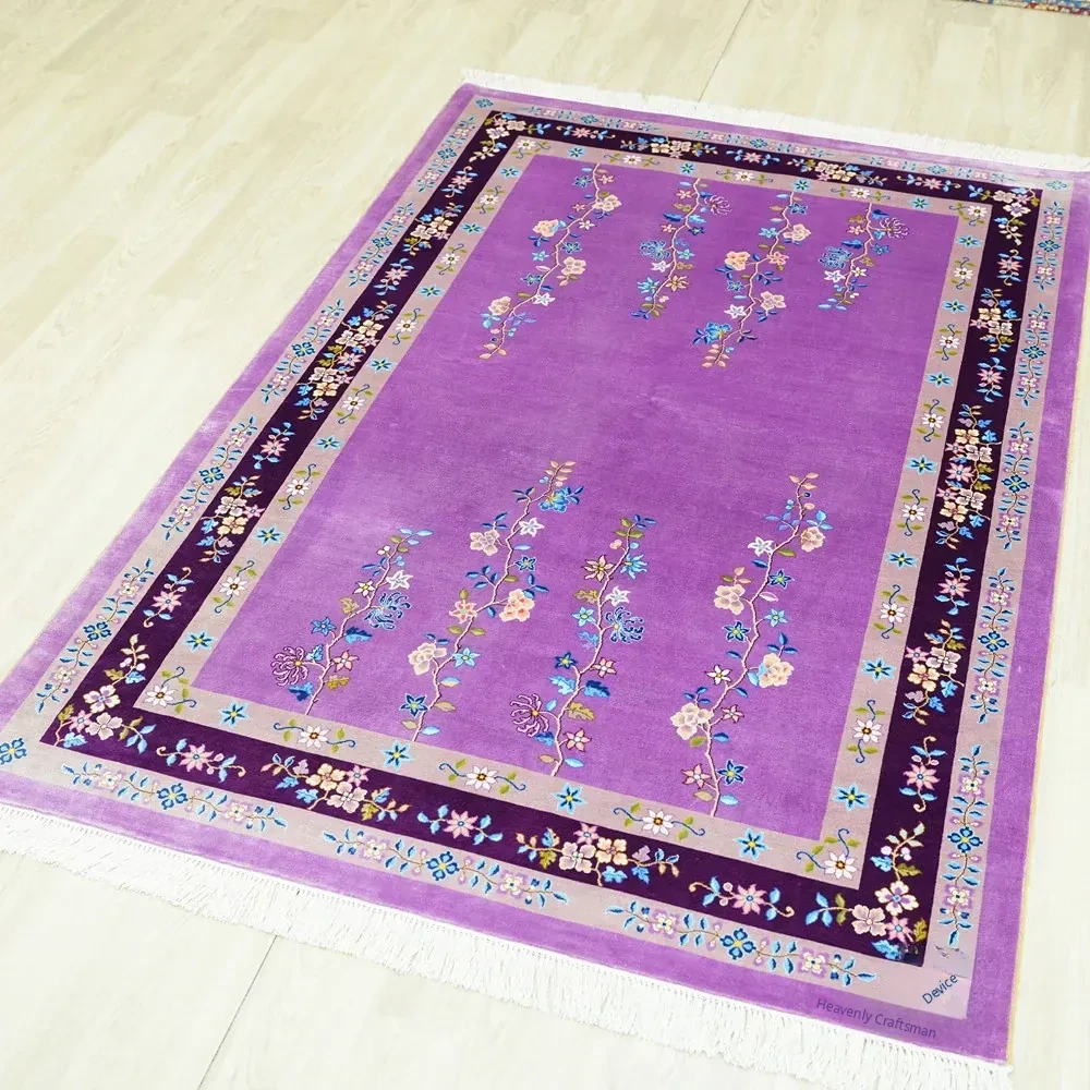 Handcrafted Pure Silk Carpet - Purple Chinese Style Rug for Living Room, Bedroom, and Study - 120x180cm Elegant Design