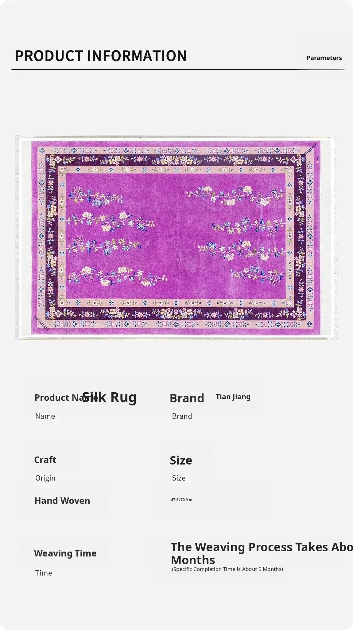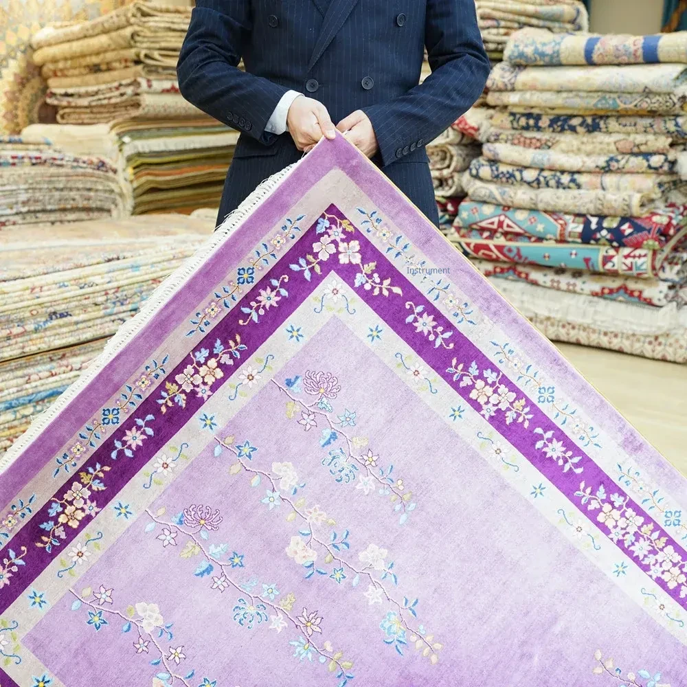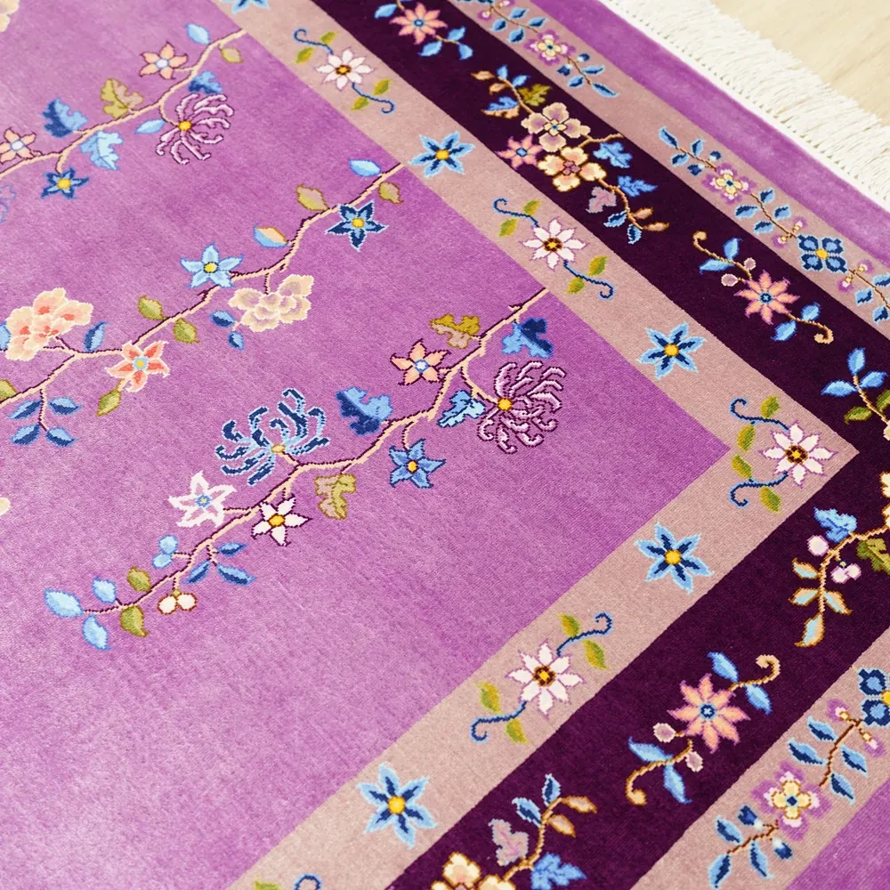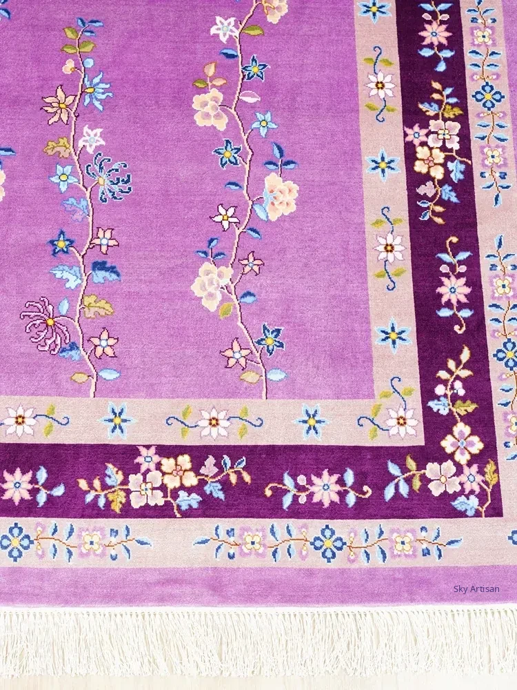 Handcrafted Pure Silk Carpet - Purple Chinese Style Rug for Living Room, Bedroom, and Study - 120x180cm Elegant Design