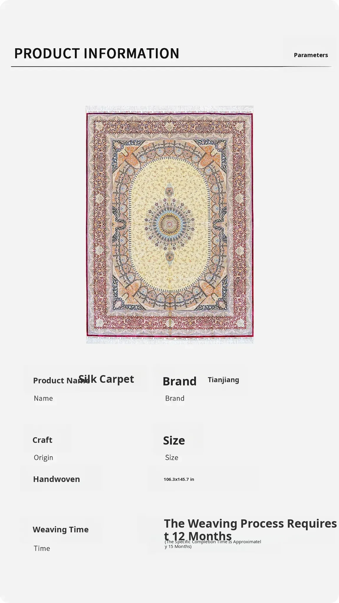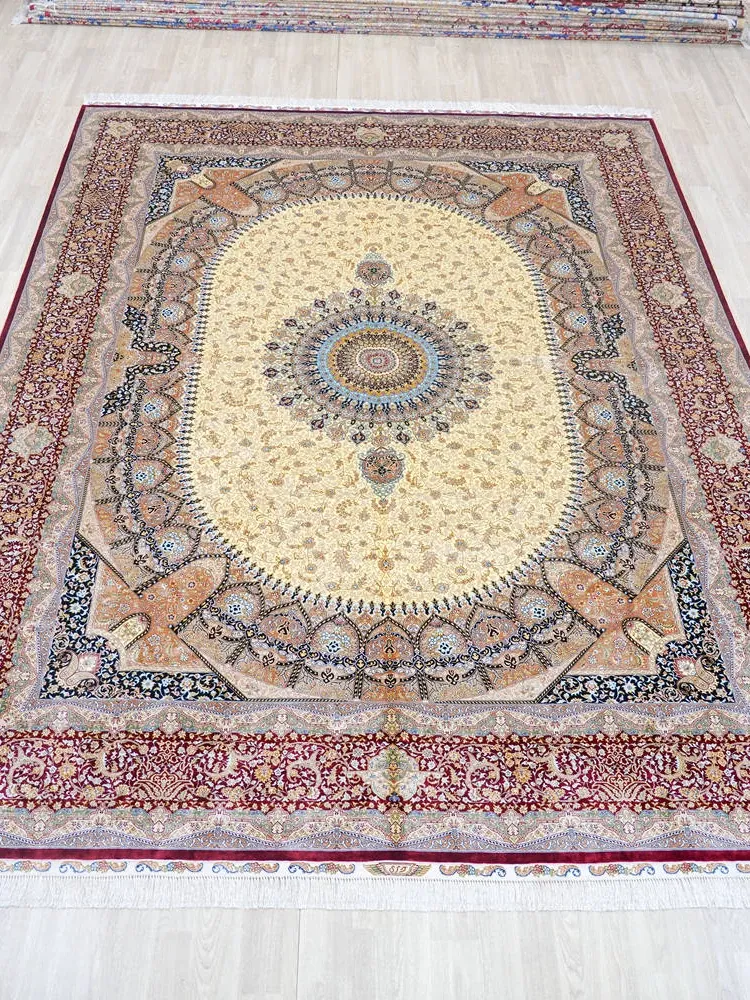Handcrafted Silk Area Rug for Bedroom - Premium Short Pile Rectangular Carpet (270x370cm) - Elevate Your Space with Luxurious Comfort and Style