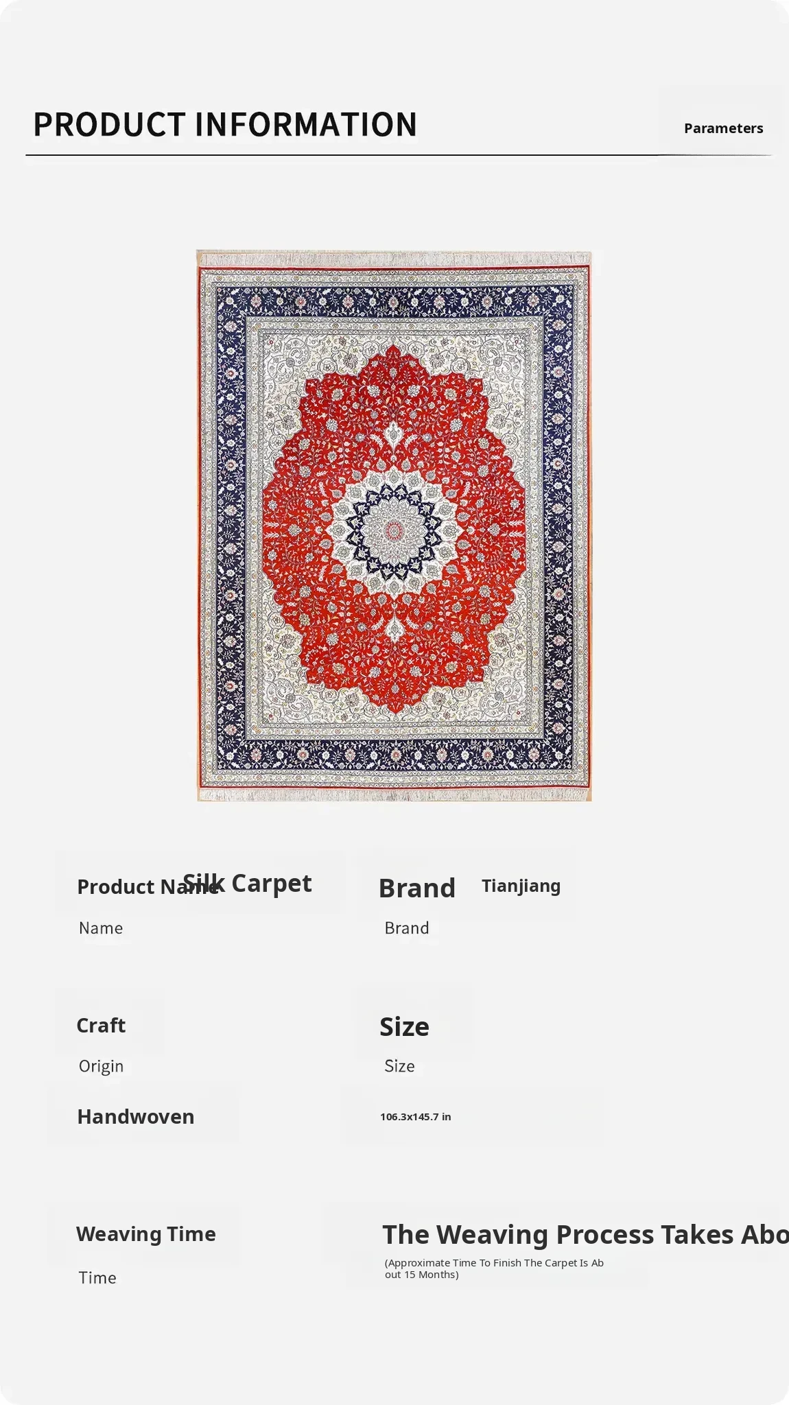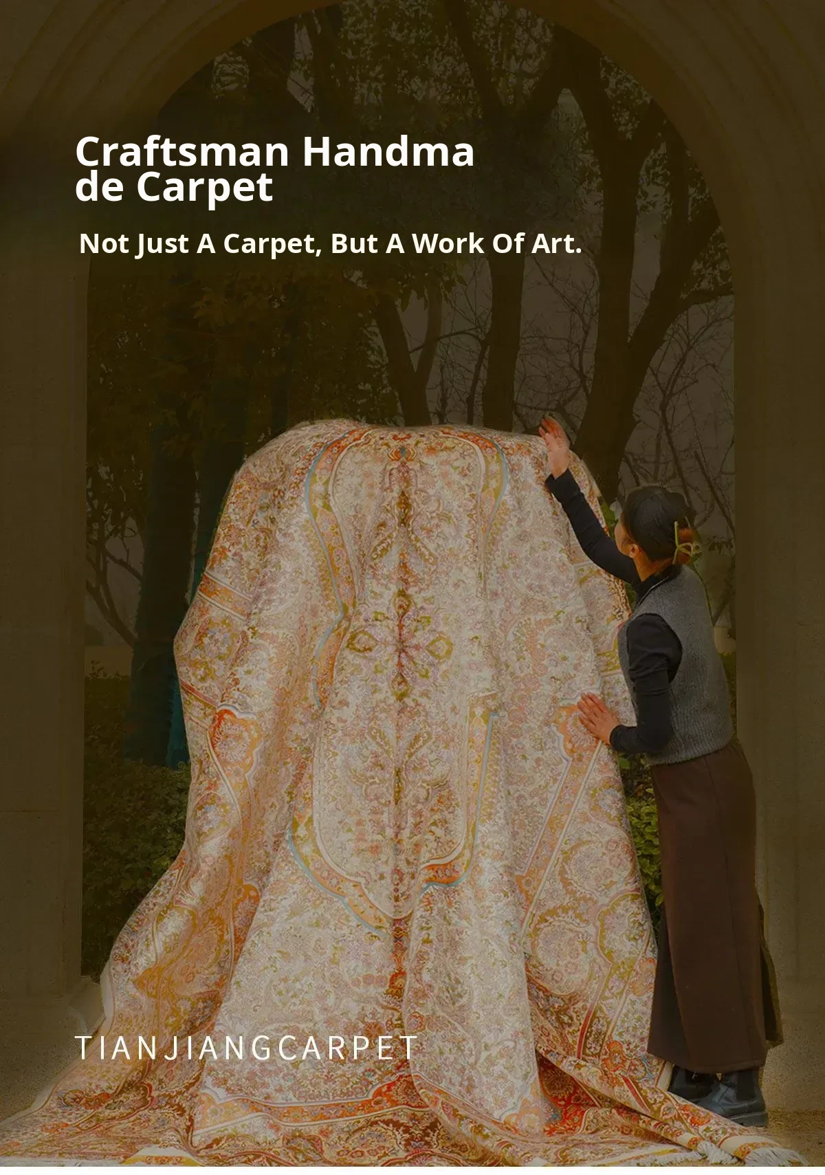 Handcrafted Silk Carpet by Tianjiang - Elegant European Style Area Rug for Living Room and Tea Table, Easy to Maintain, 270x370cm