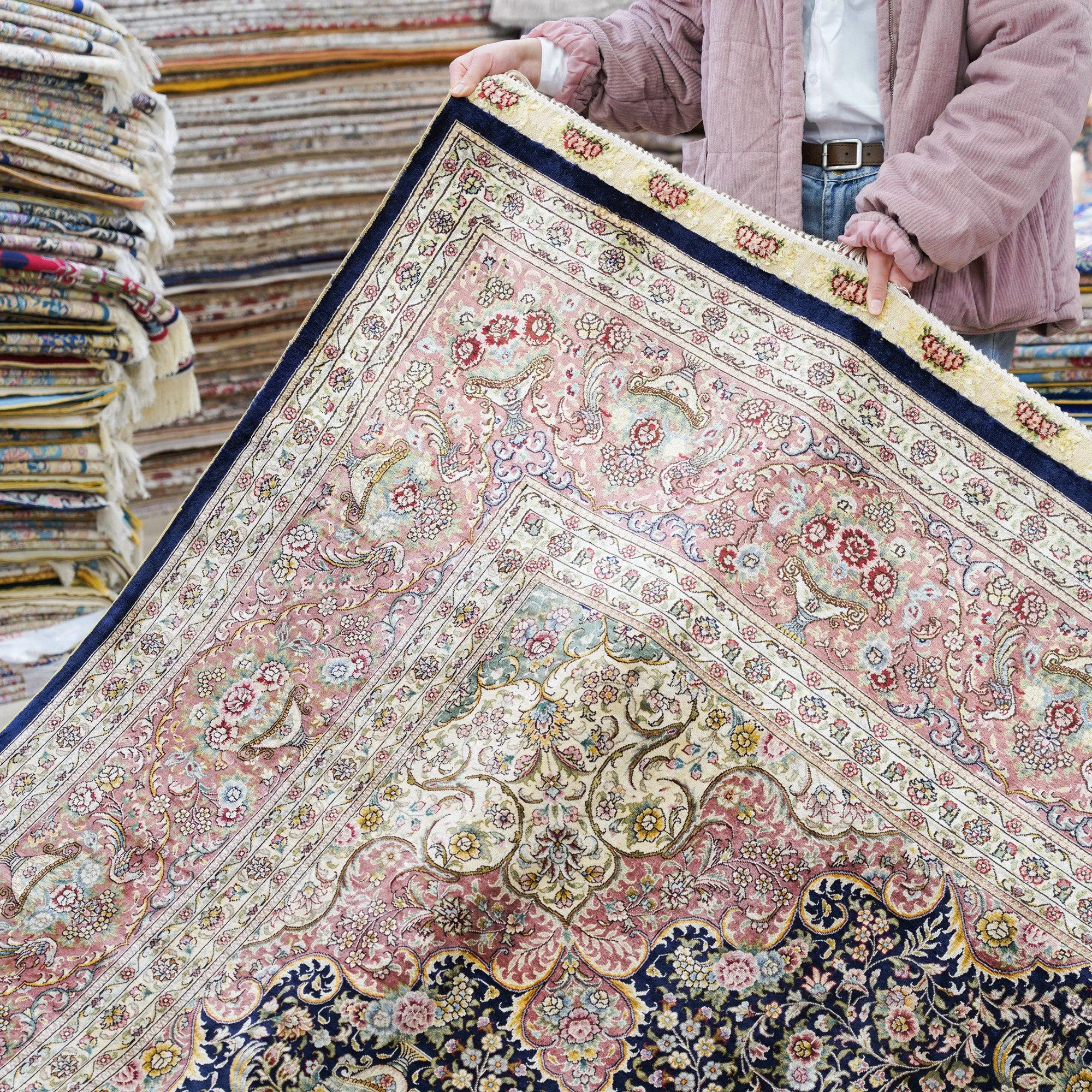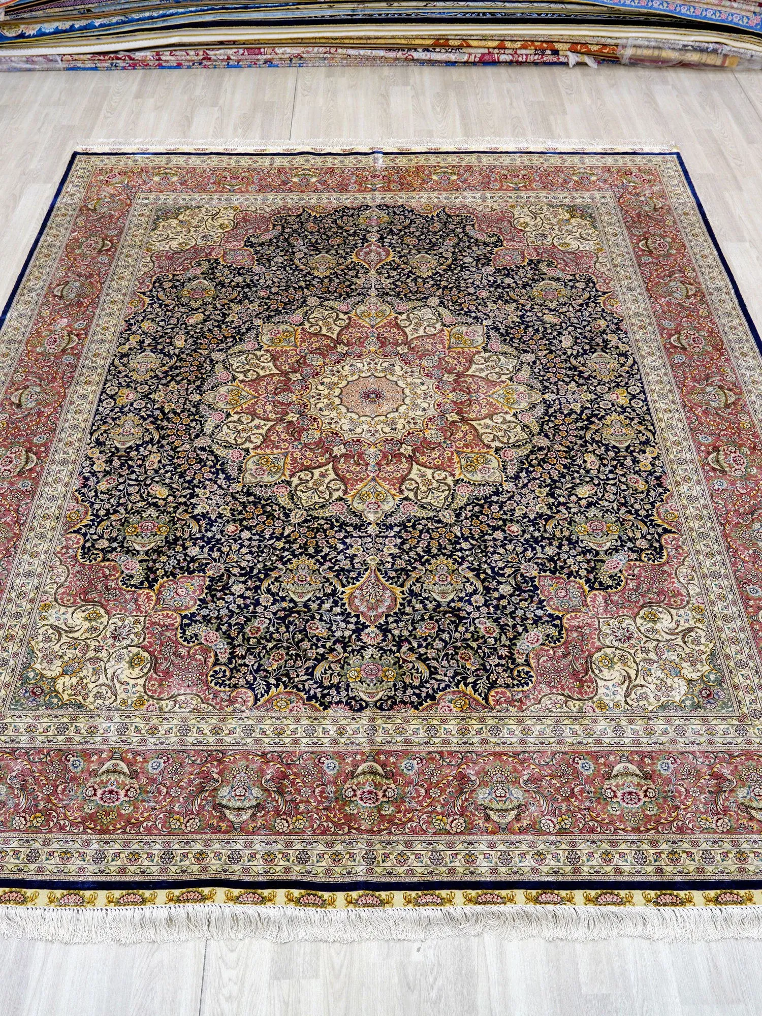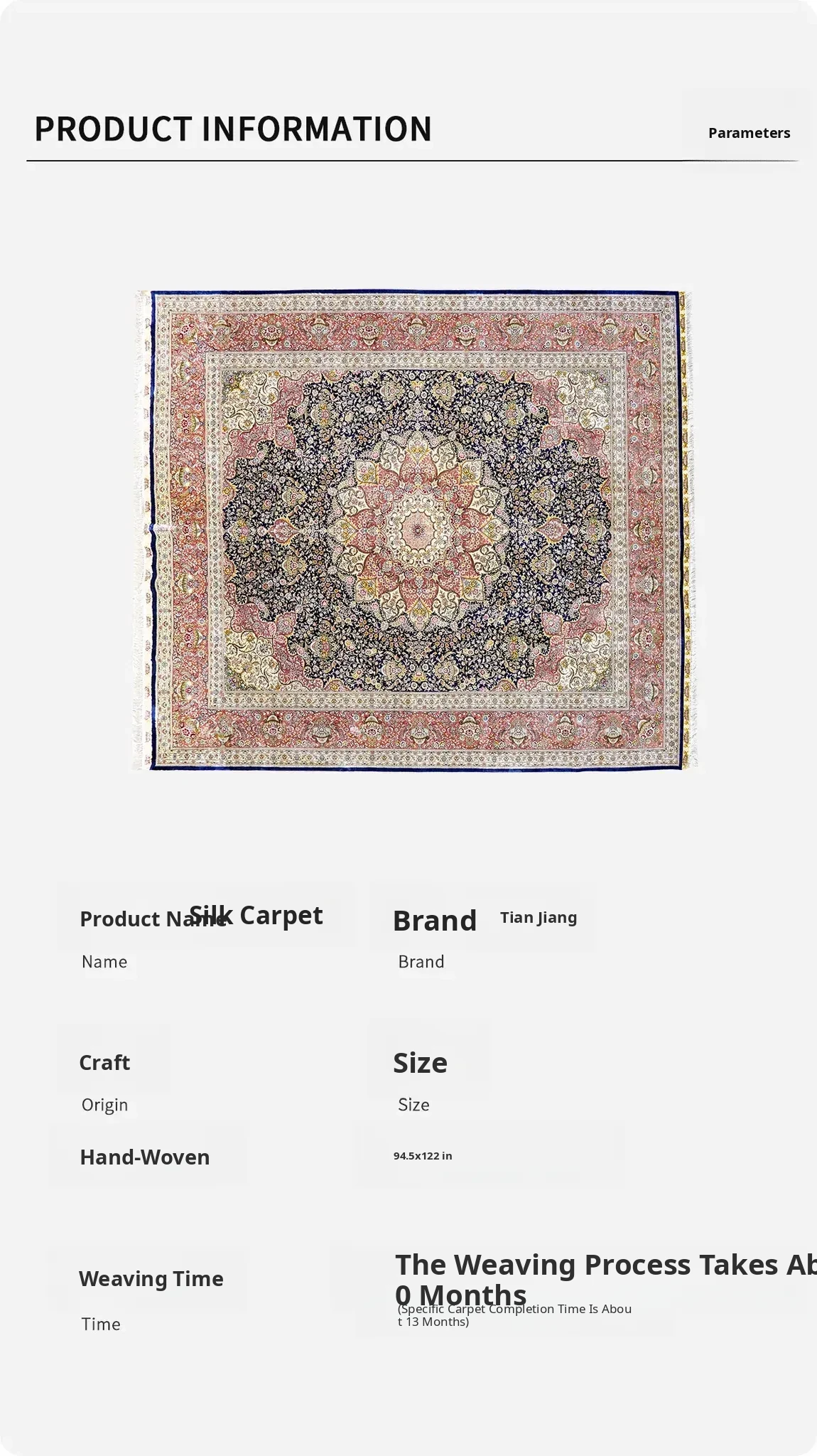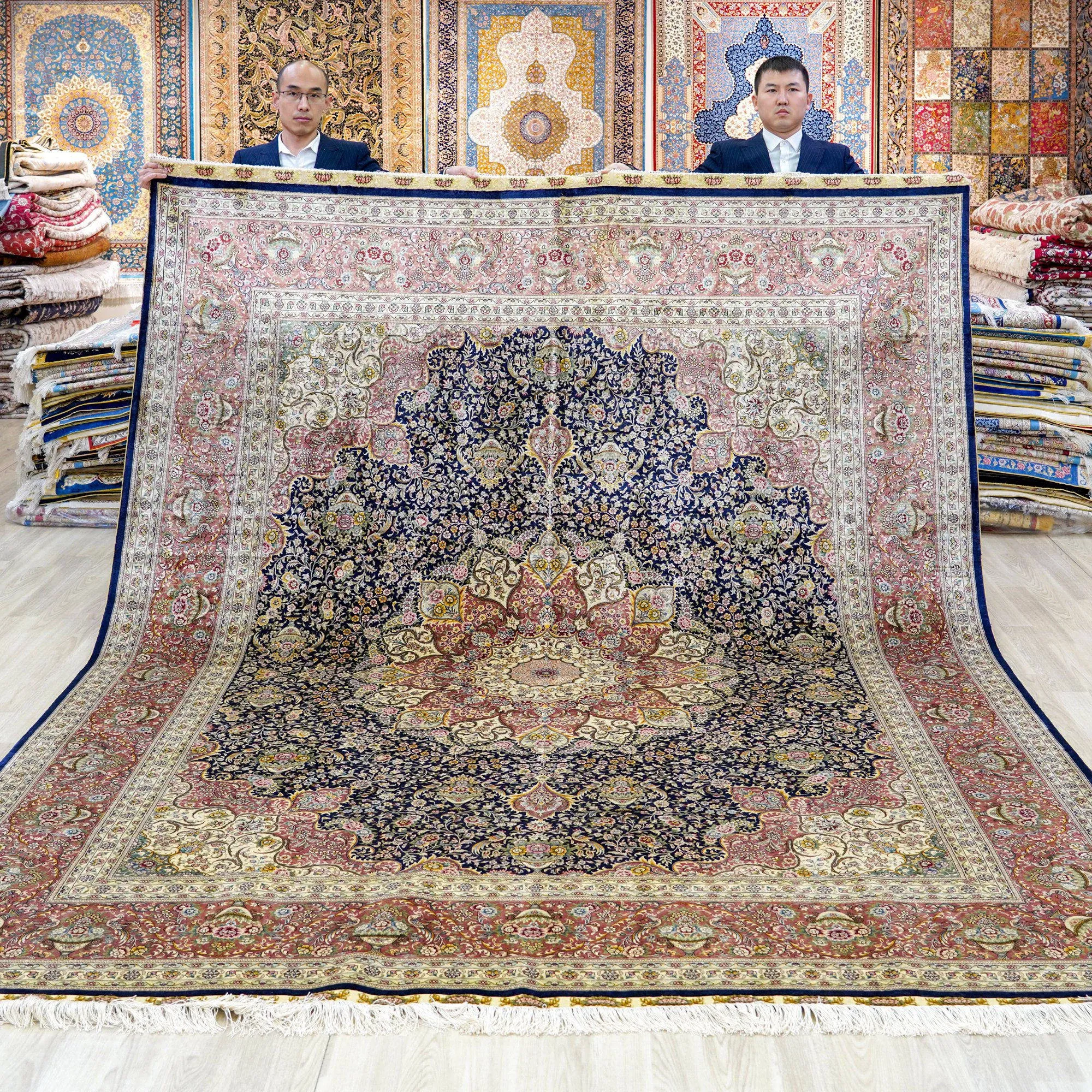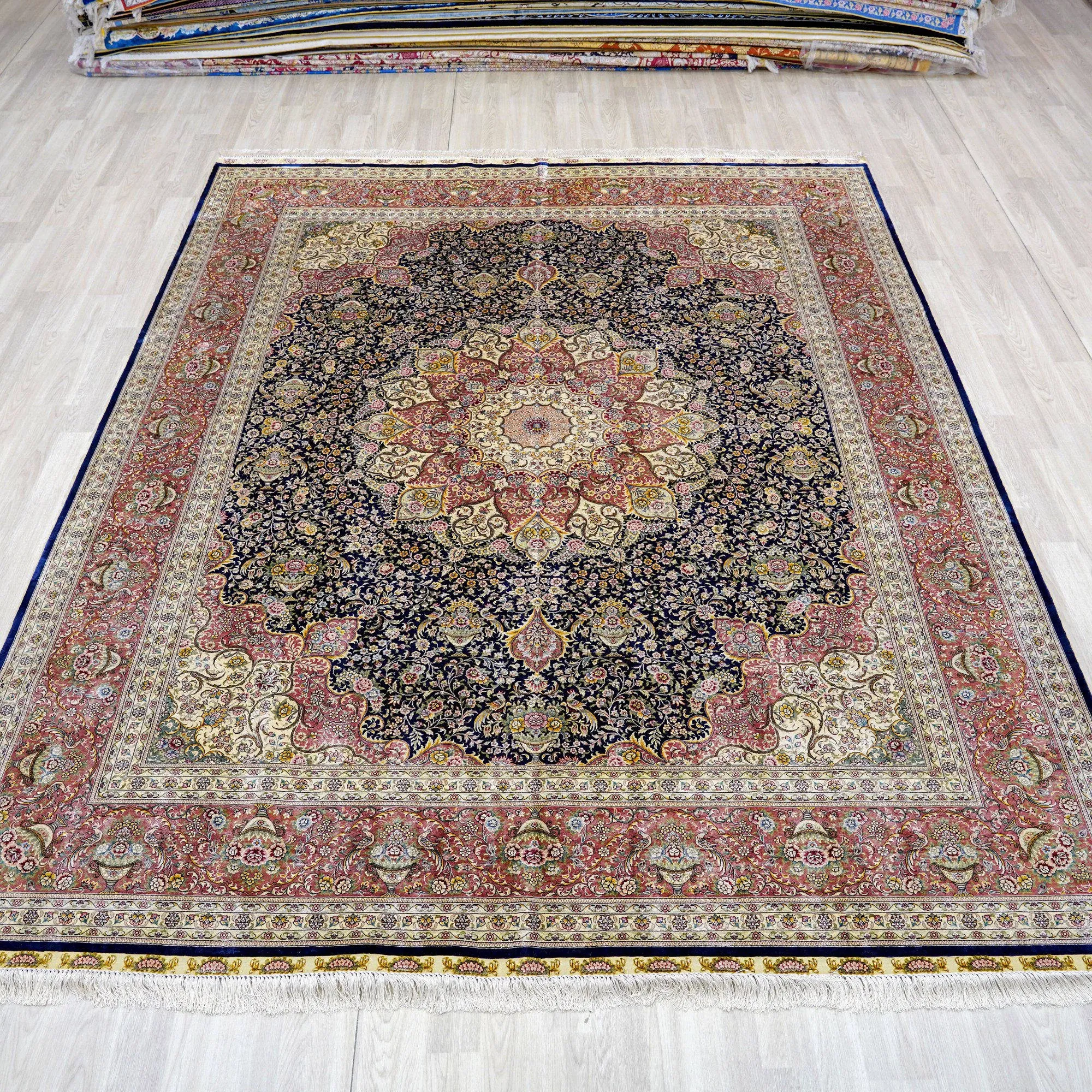 Handcrafted Silk Carpet - Elegant European & American Style Area Rug for Villas, Living Rooms, Easy to Maintain, Versatile Design, 244x305cm