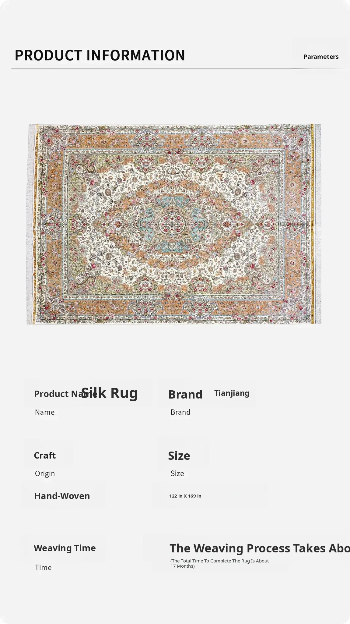 Handcrafted Silk Carpet - Imported from Dubai, Luxurious and Elegant Area Rug for Villa Living Room and Bedroom, Size: 310x430cm