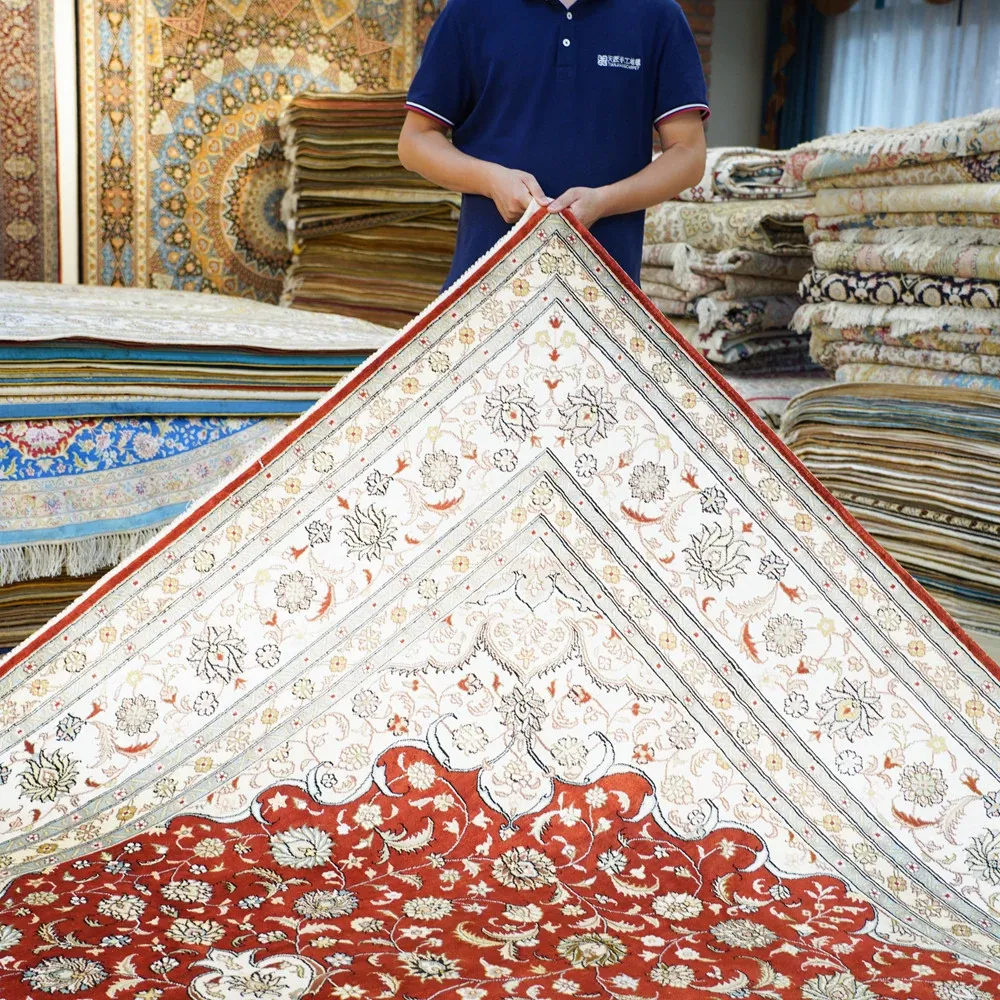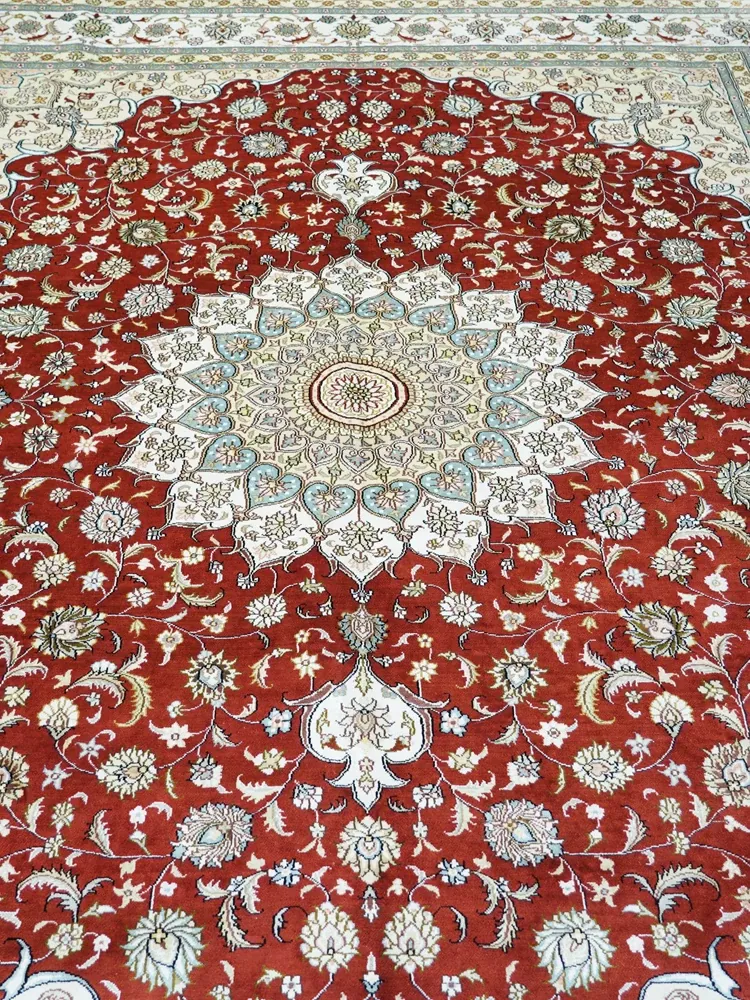 Handcrafted Silk Carpet in Red - Traditional Persian Design for Villas and Living Rooms, Perfect for Bedrooms, Size: 240x310cm