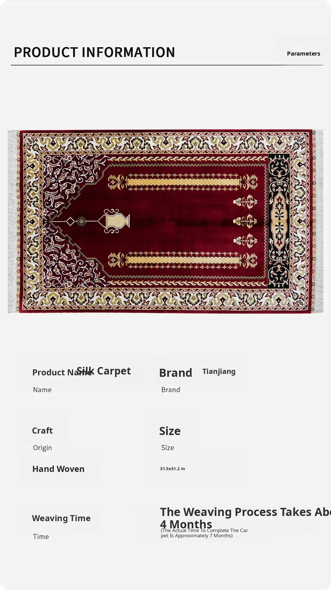 Handcrafted Silk Carpet - Persian & Turkish Design for Villa Bedroom - Luxurious 80x130cm Area Rug