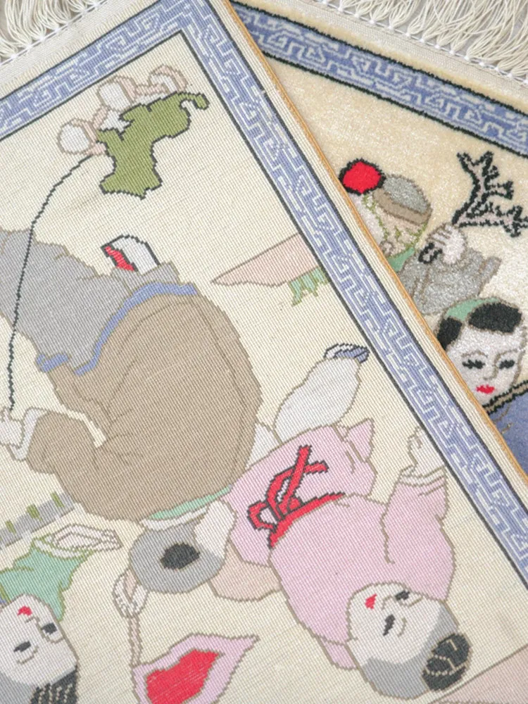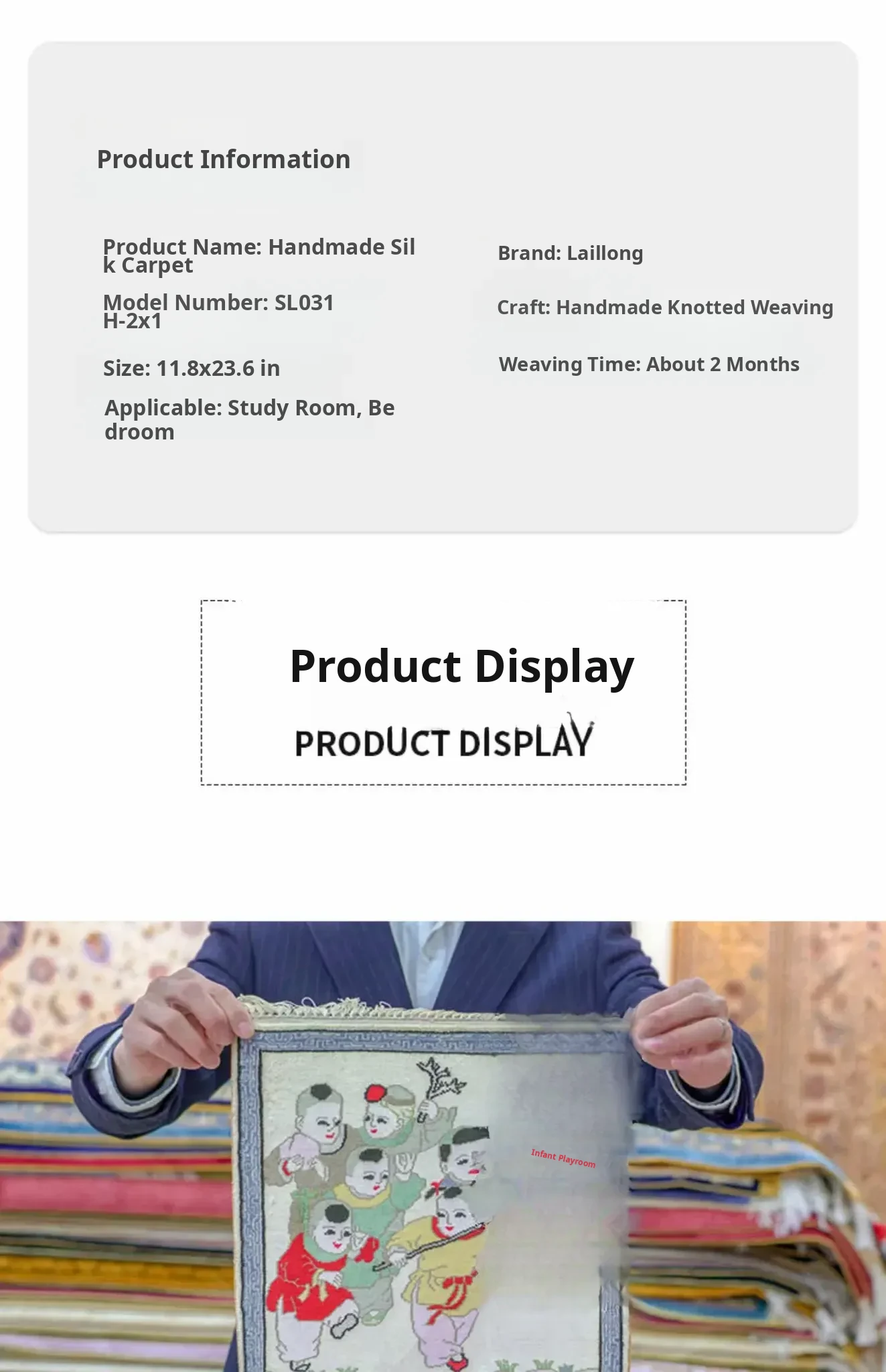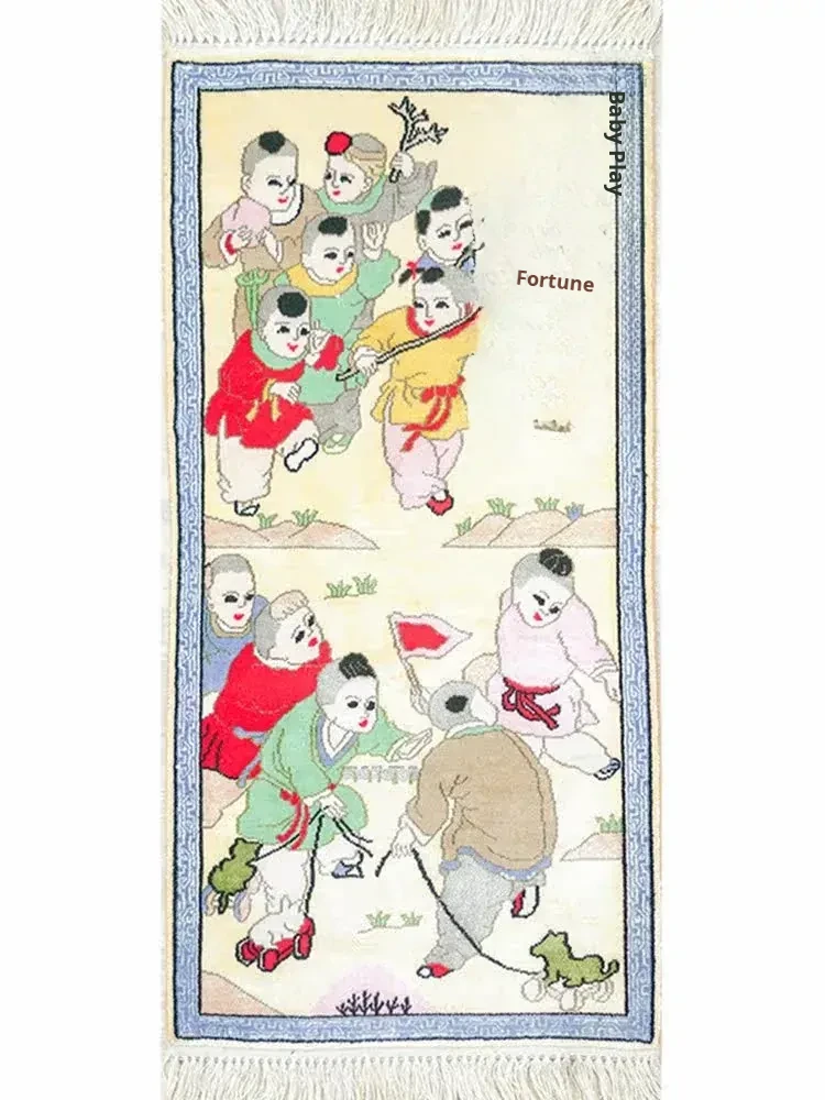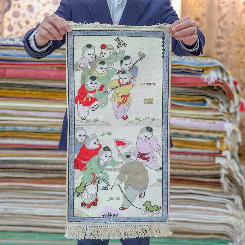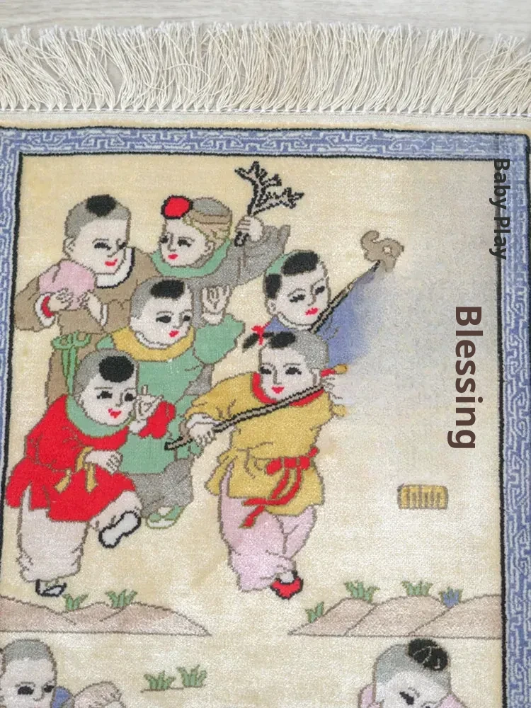 Handcrafted Silk Nursery Rug 30x60cm - Adorable Playtime Wall Tapestry for Bedroom Headboard Decor