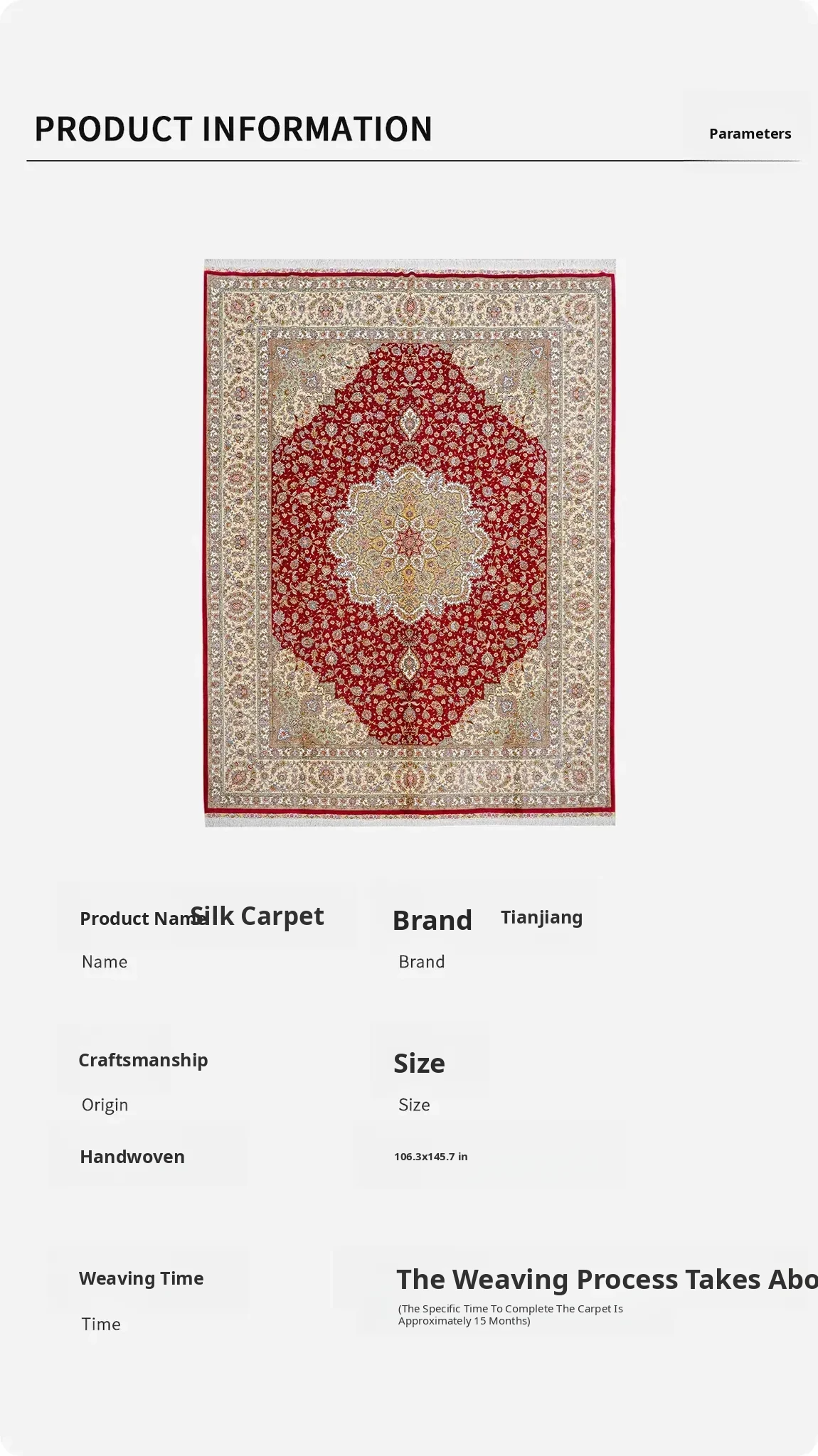 Handcrafted Silk Persian Carpet - Luxurious American Design for Living Room, Bedroom, and Study - Size: 270x370cm - Elevate Your Space with Timeless Elegance
