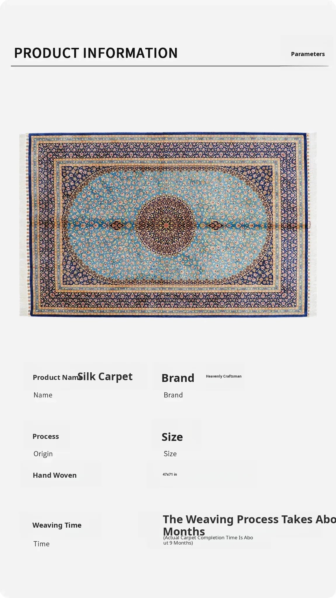 Handcrafted Silk Persian Rug - European & American Style Area Carpet for Home, Ideal for Bedroom & Bedside - 120x180cm