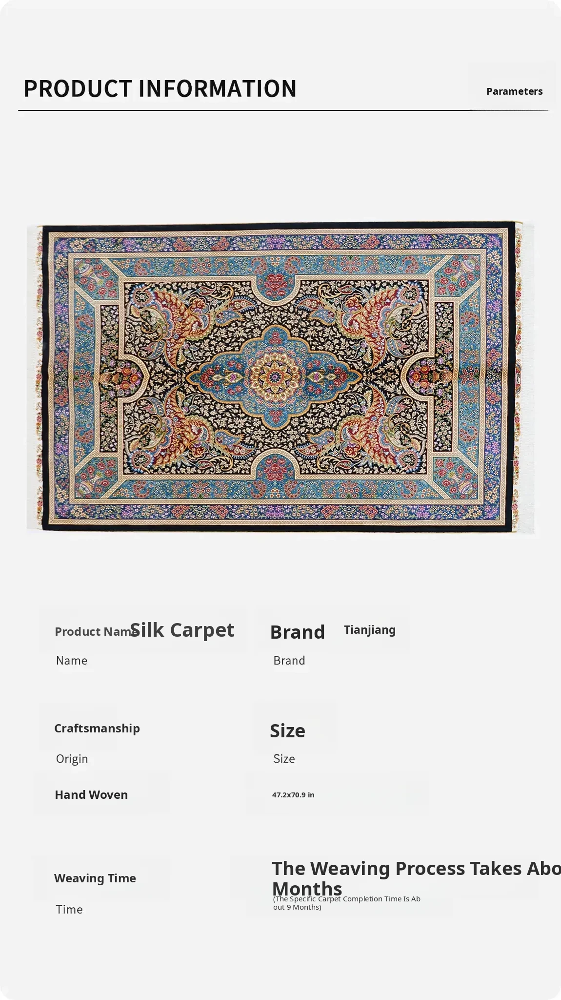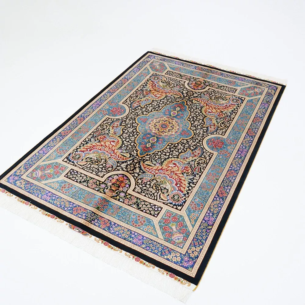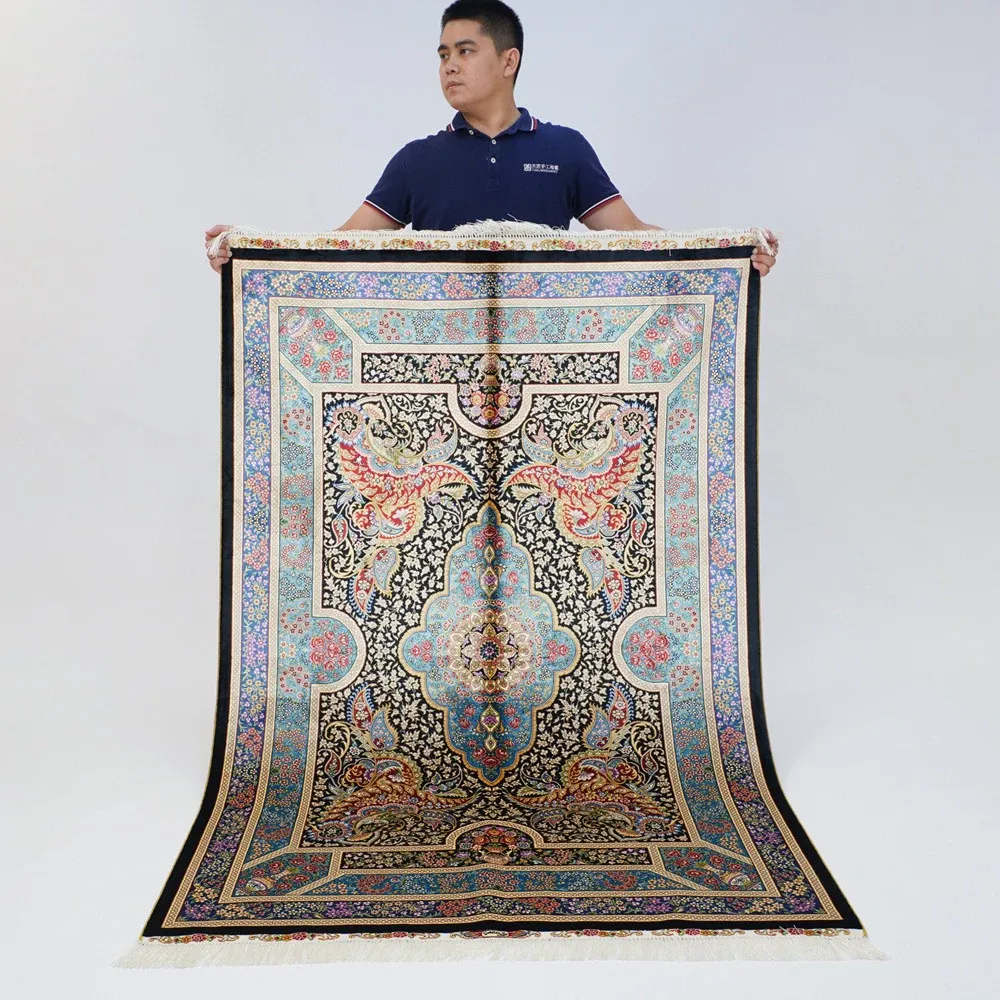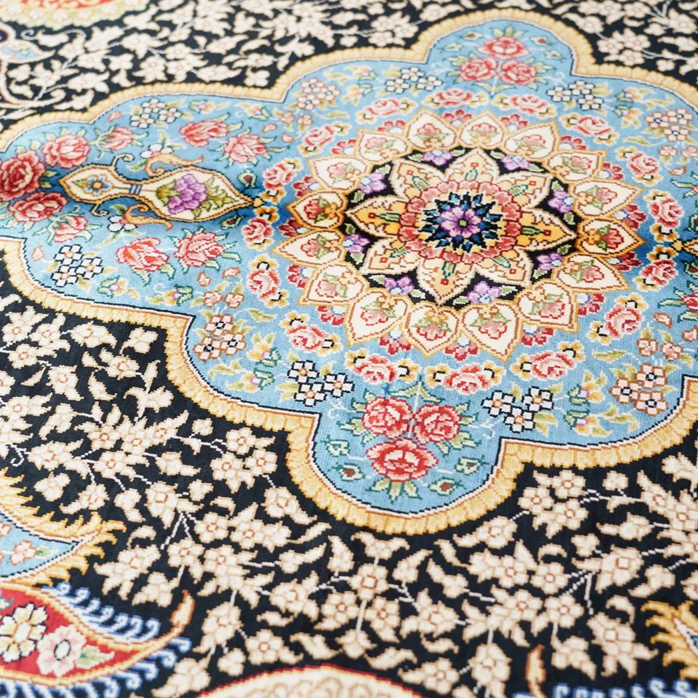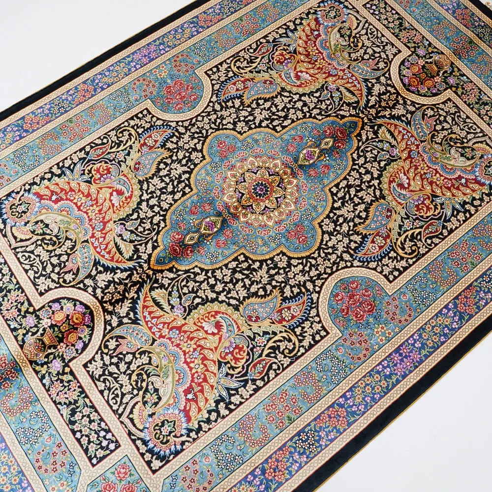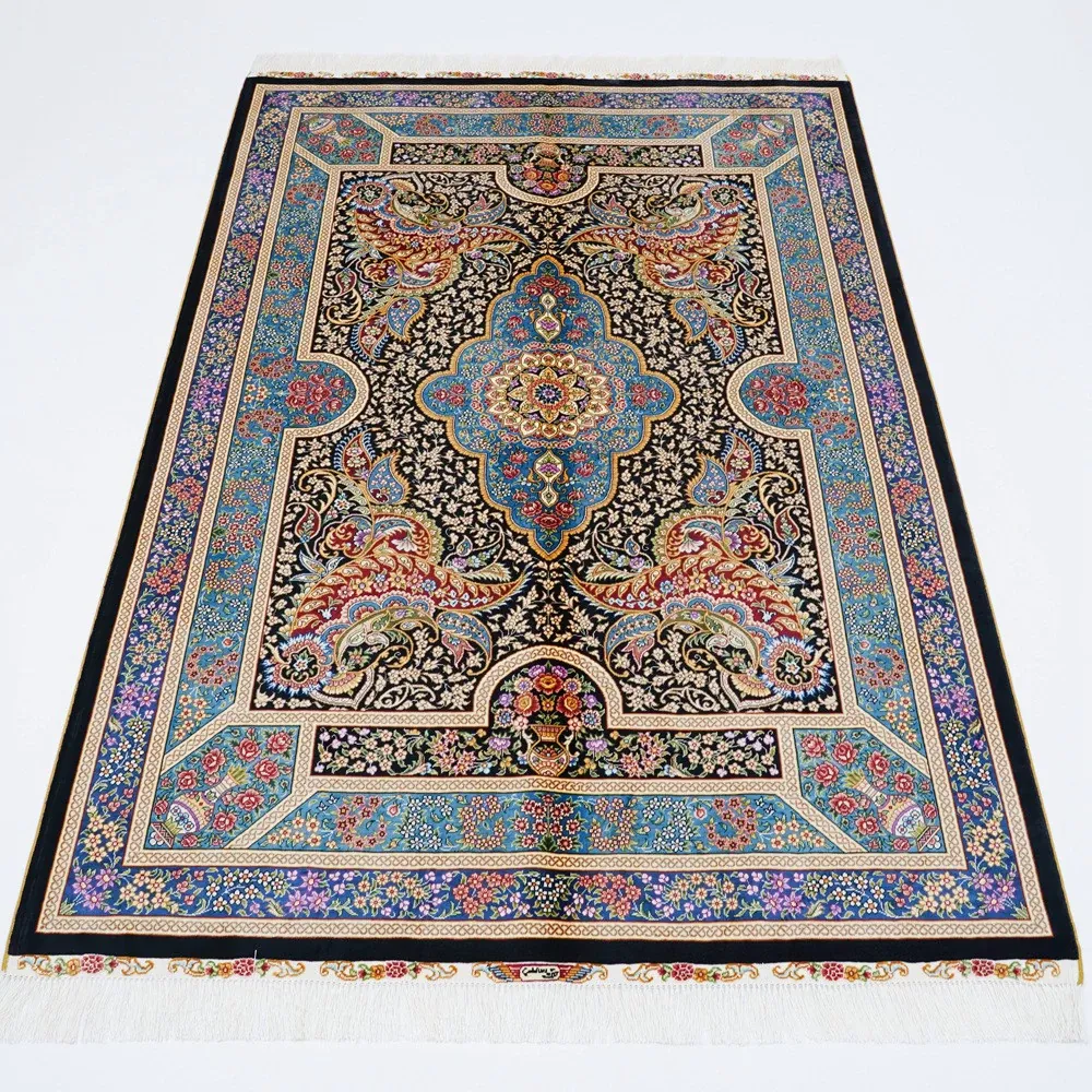 Handcrafted Turkish Silk Carpet - Blue Persian Area Rug for Bedroom and Home, 120x180cm - Elevate Your Space with Luxurious Elegance