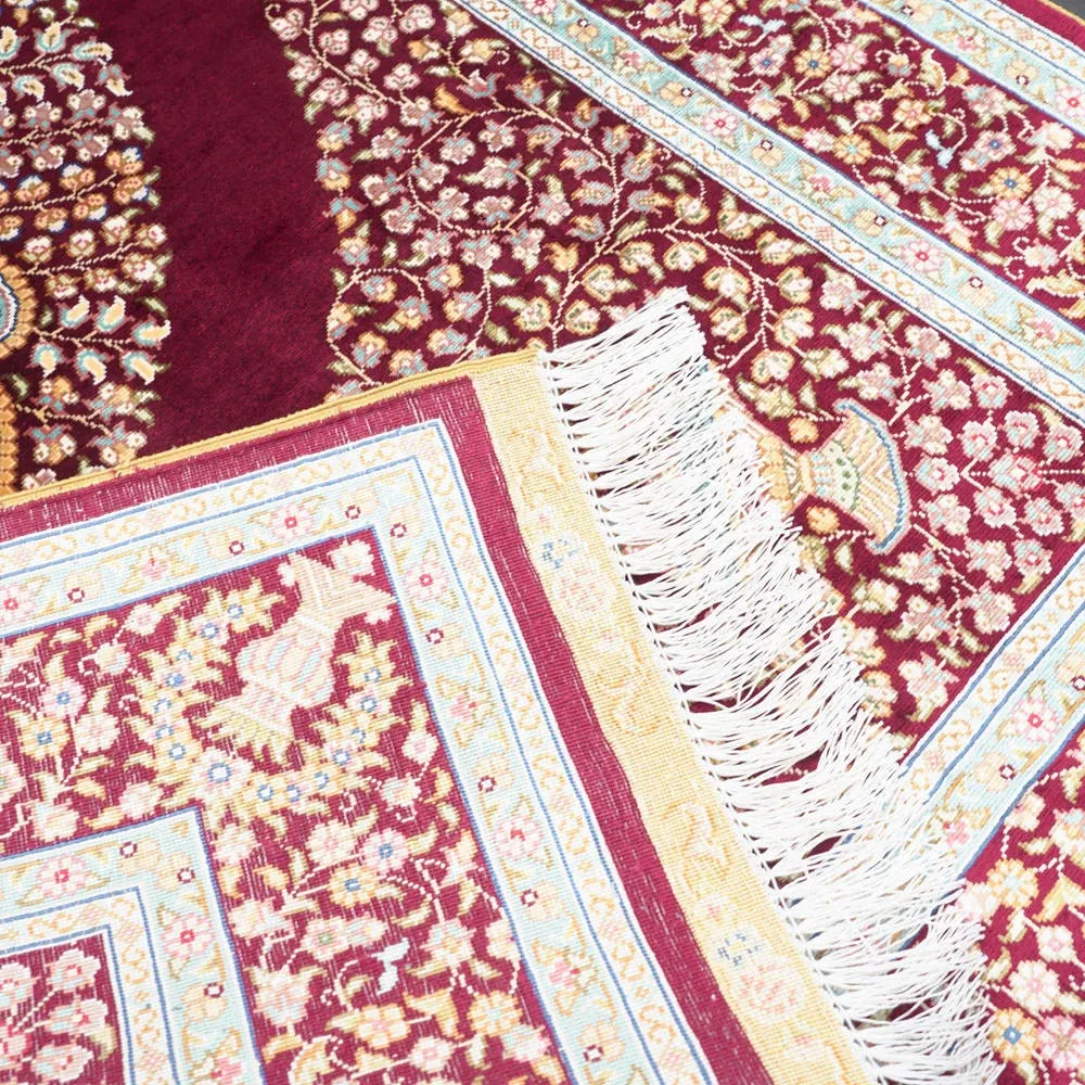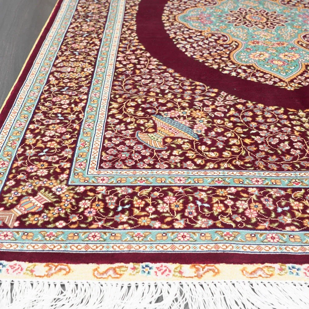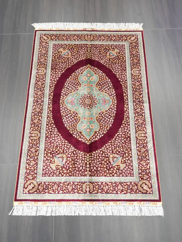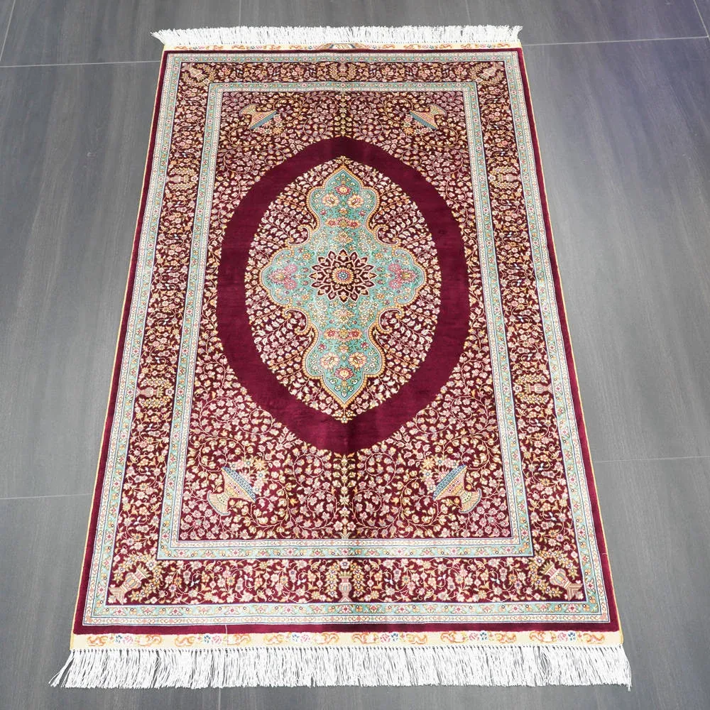 Handcrafted Turkish Silk Carpet for Bedroom & Living Room - Luxurious Red Design, 90x150cm, Perfect for Elegant Home Décor
